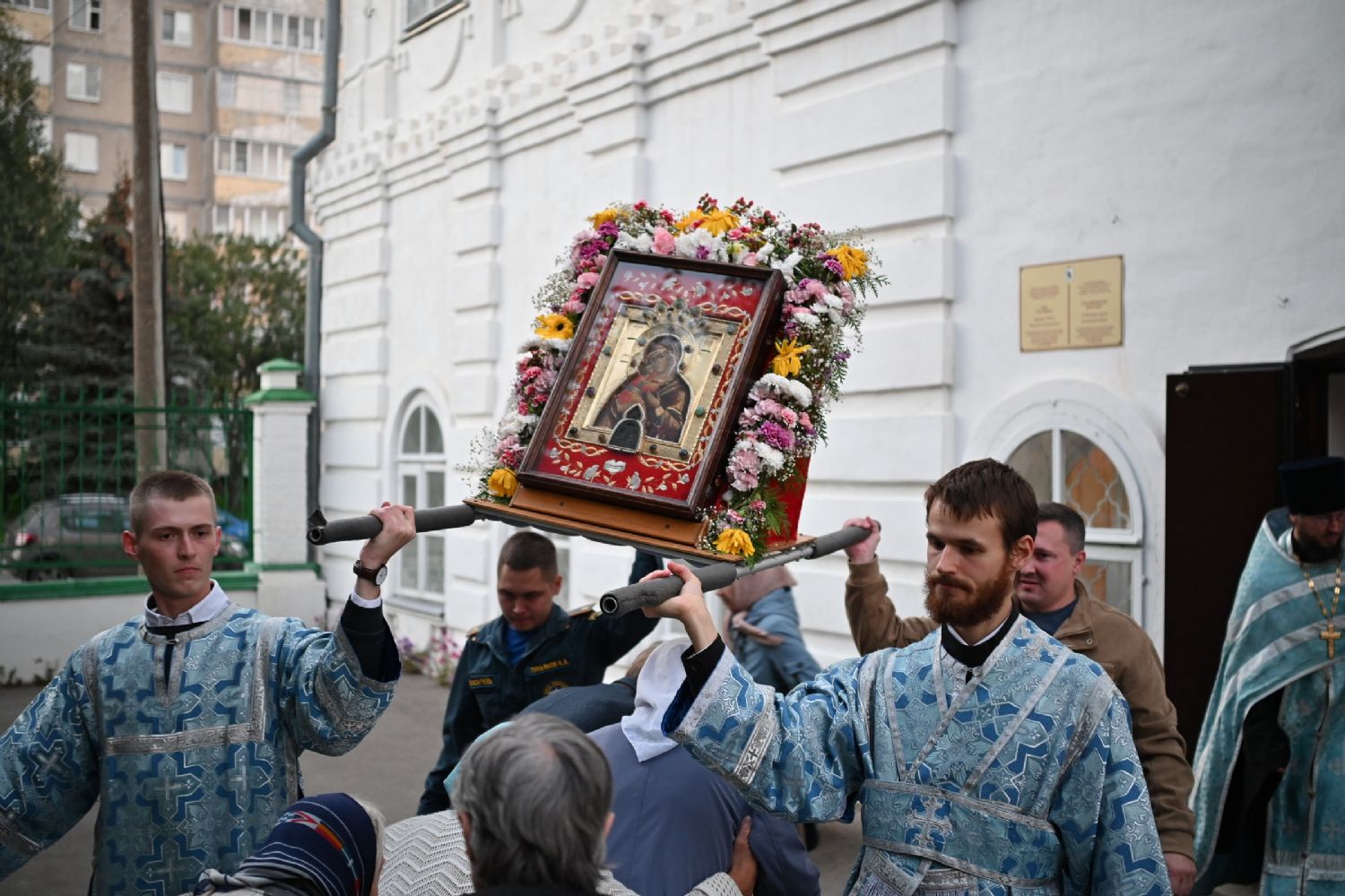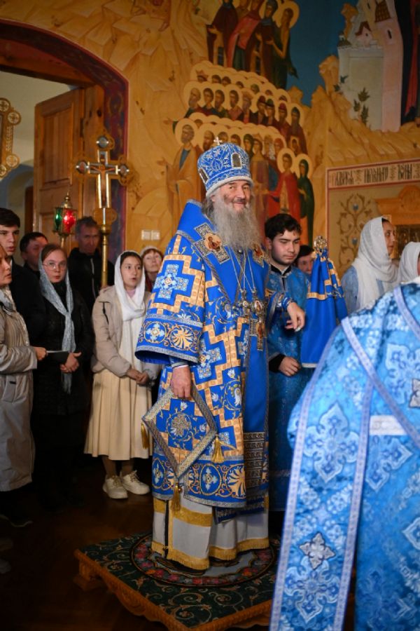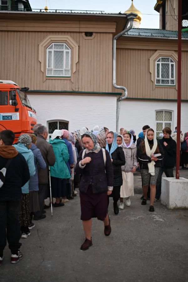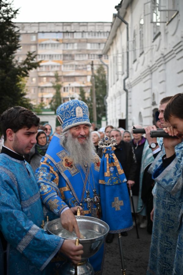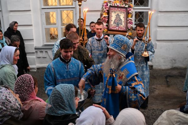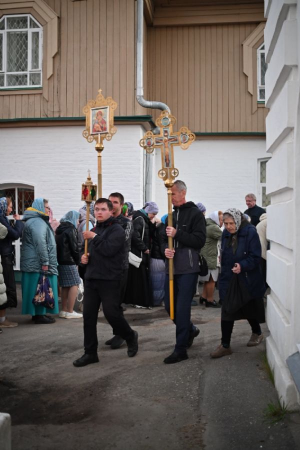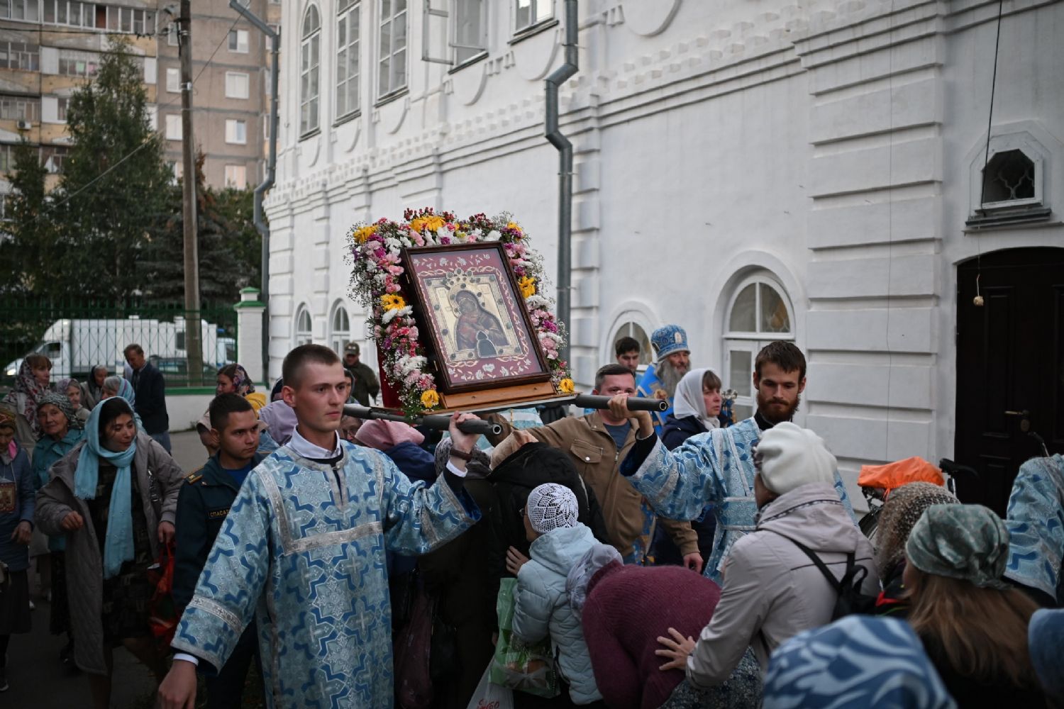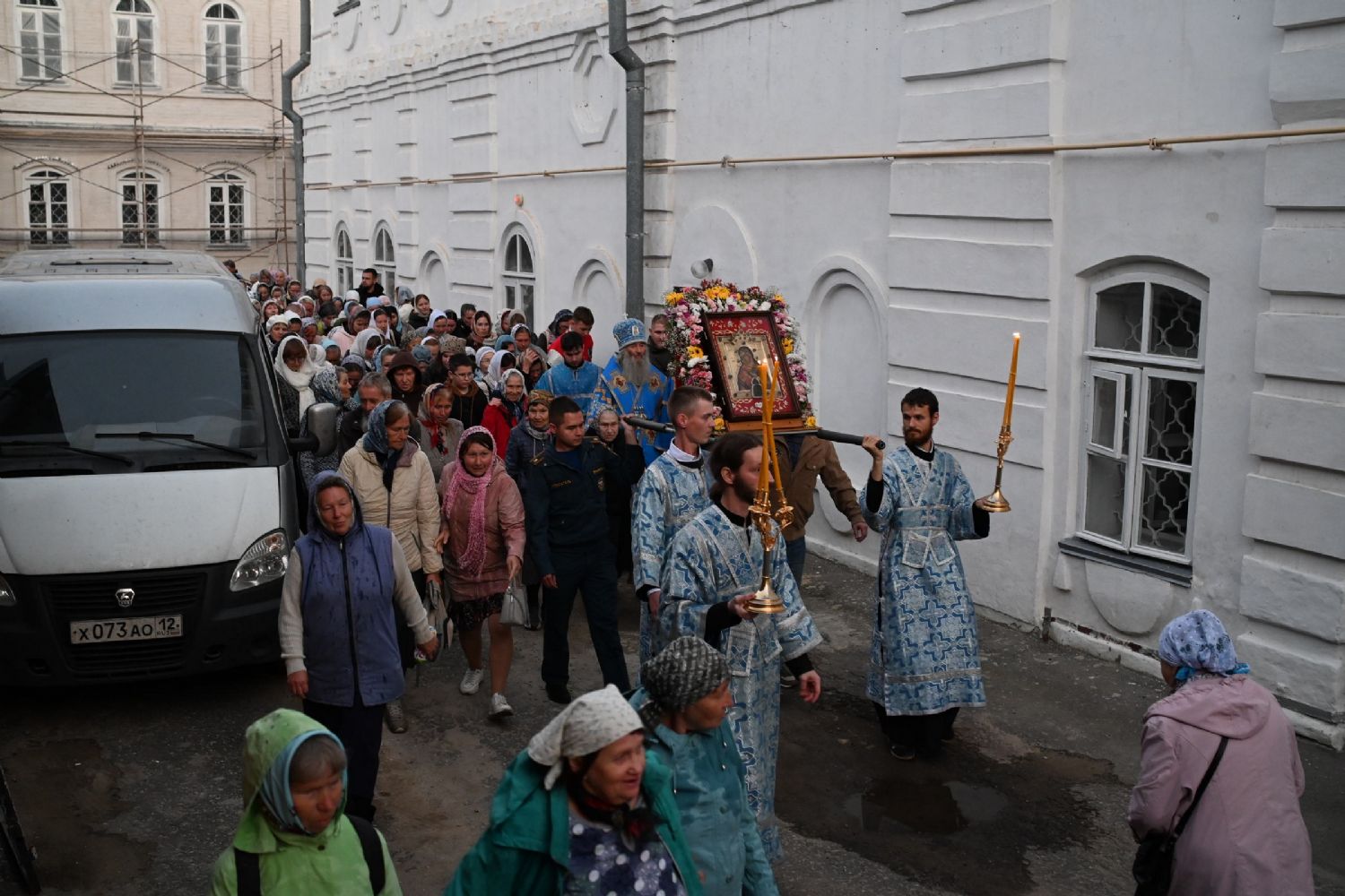 12 сентября вечером митрополит Йошкар-Олинский и Марийский Иоанн возглавил всенощное бдение в домовом храме епархиального управления, после чего возглавил крестный ход с Мироносицкой иконой Пресвятой Богородицы в Вознесенский собор.