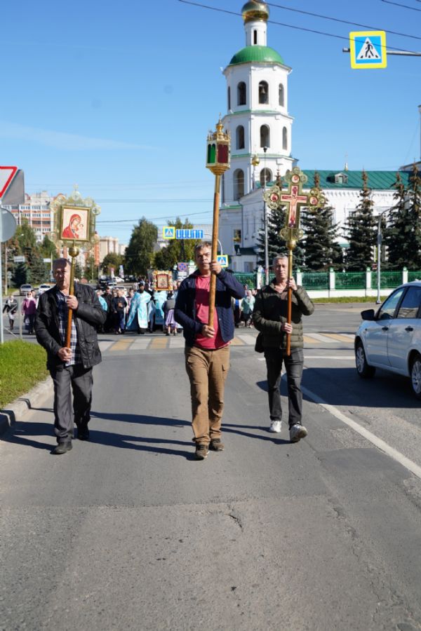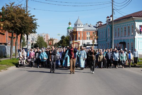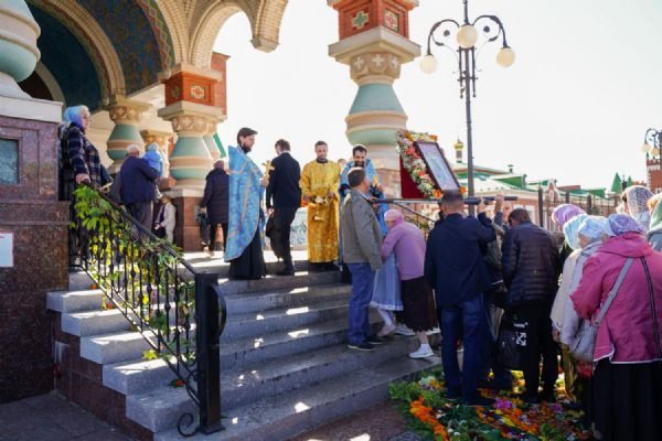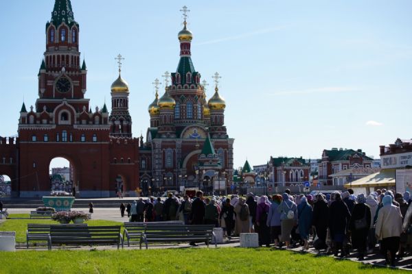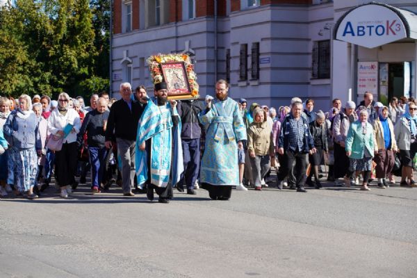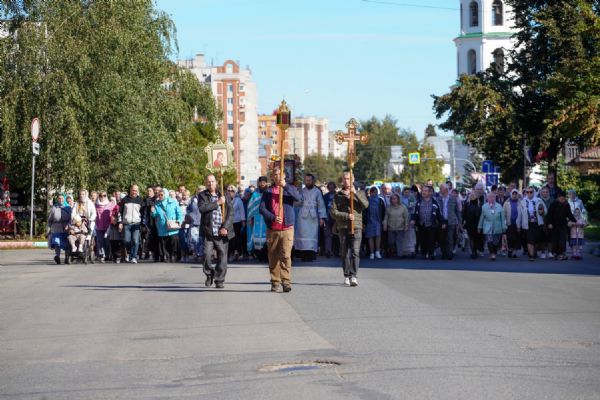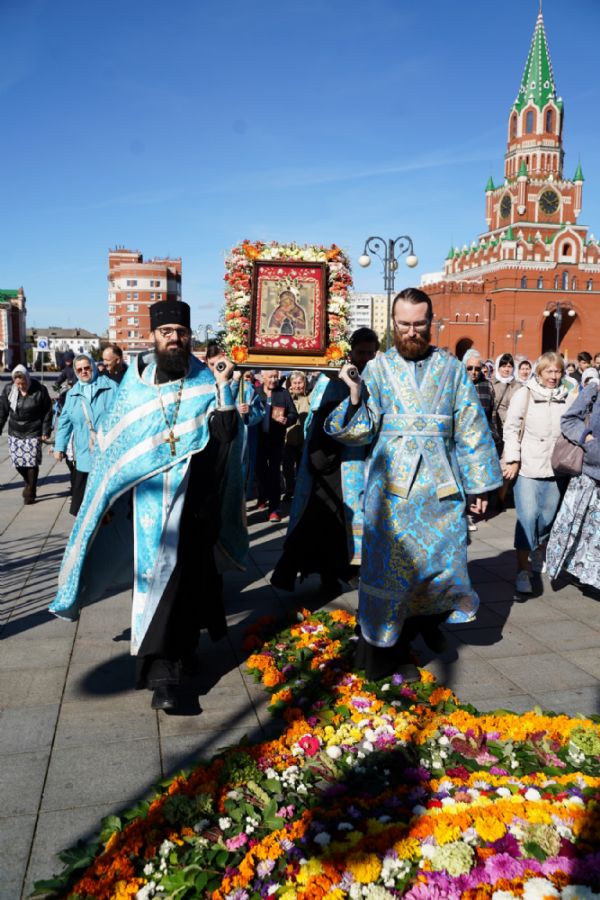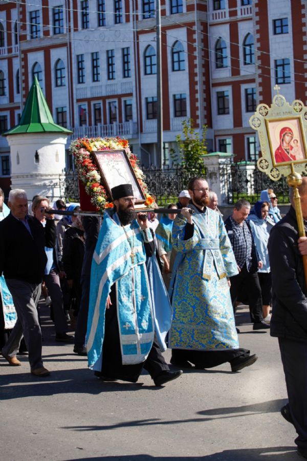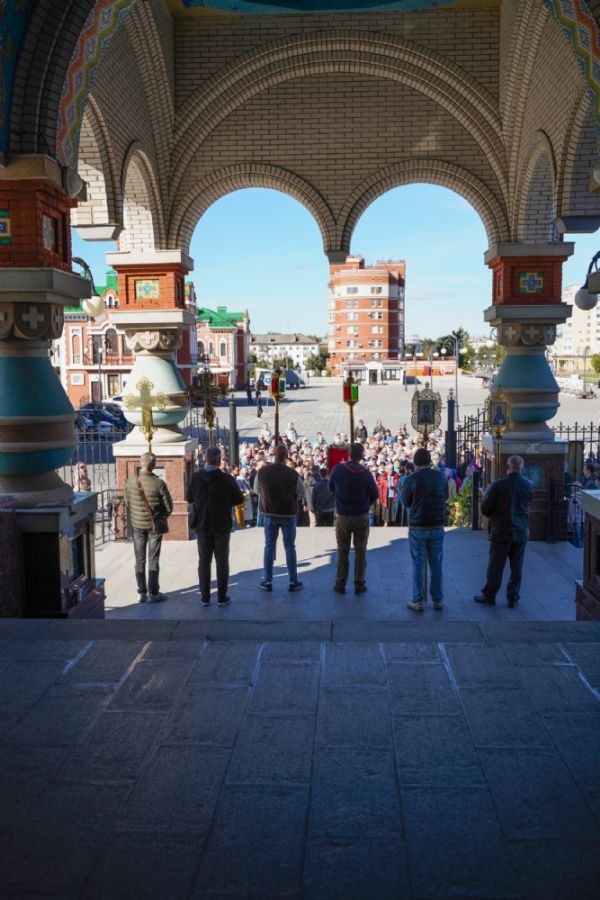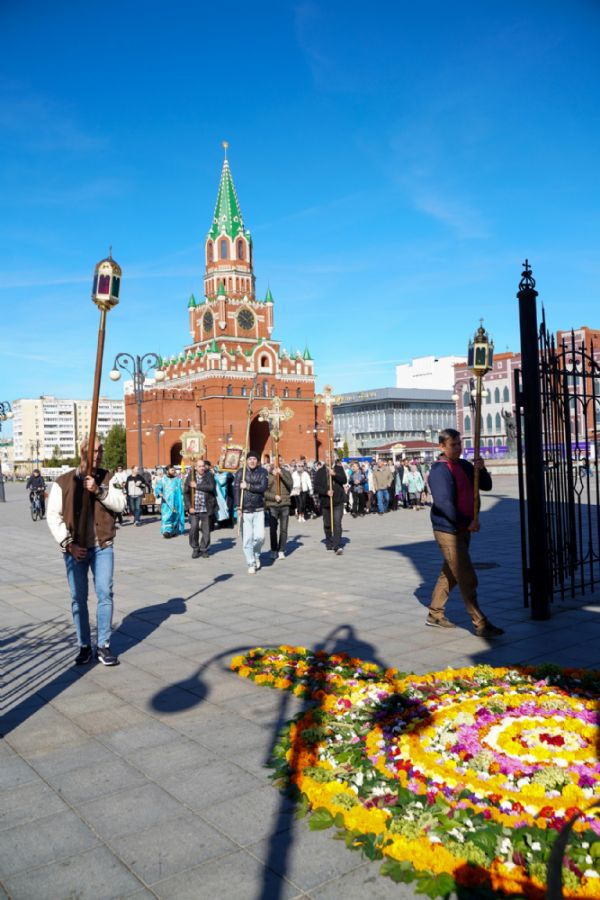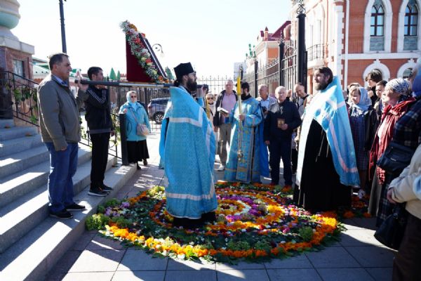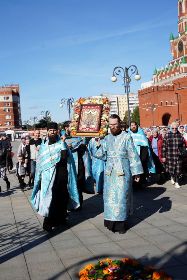 13 сентября после Божественной литургии в Вознесенском соборе г. Йошкар-Олы крестный ход с Мироносицкой иконой Божией Матери продолжил шествие по храмам города.