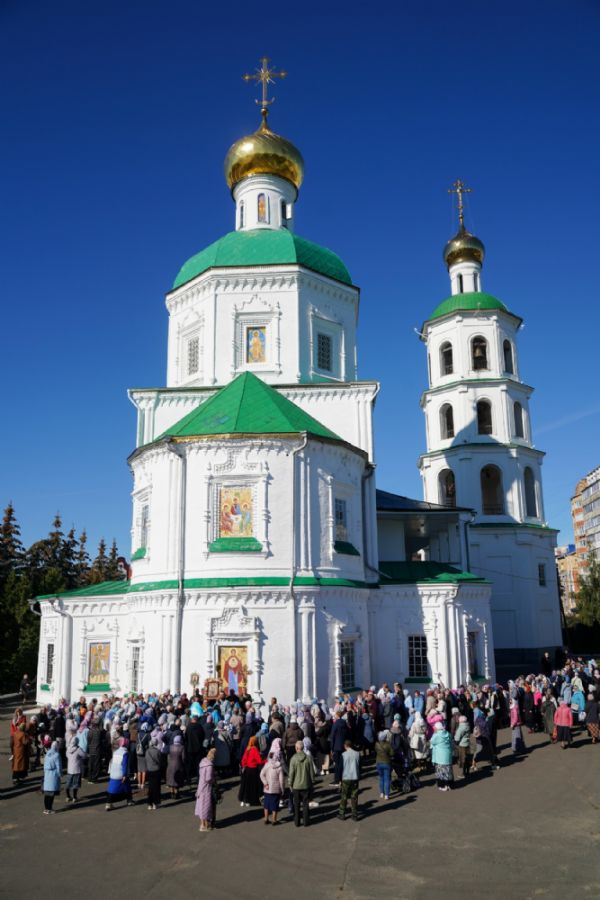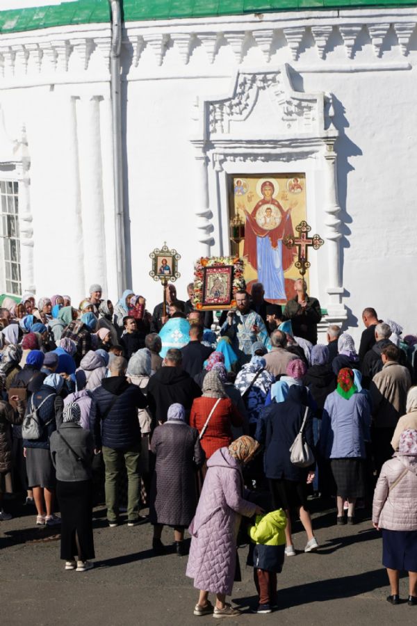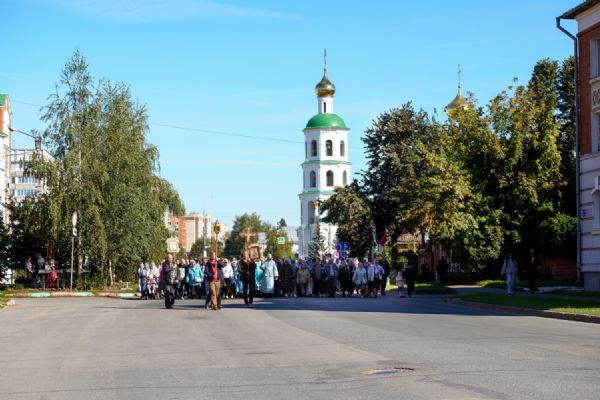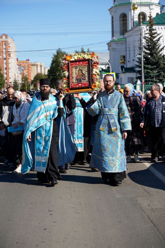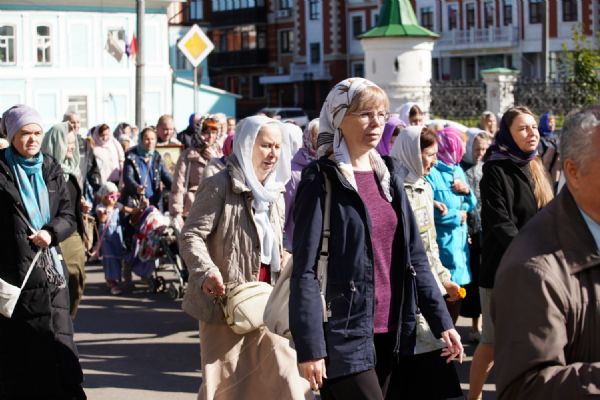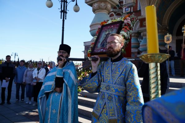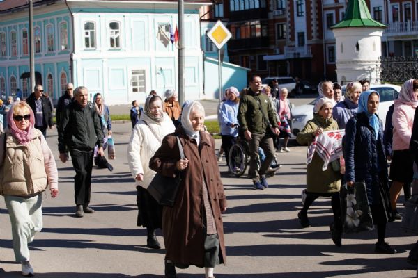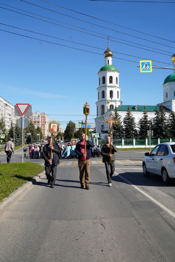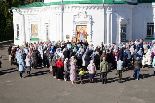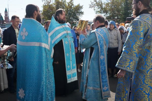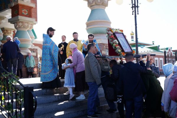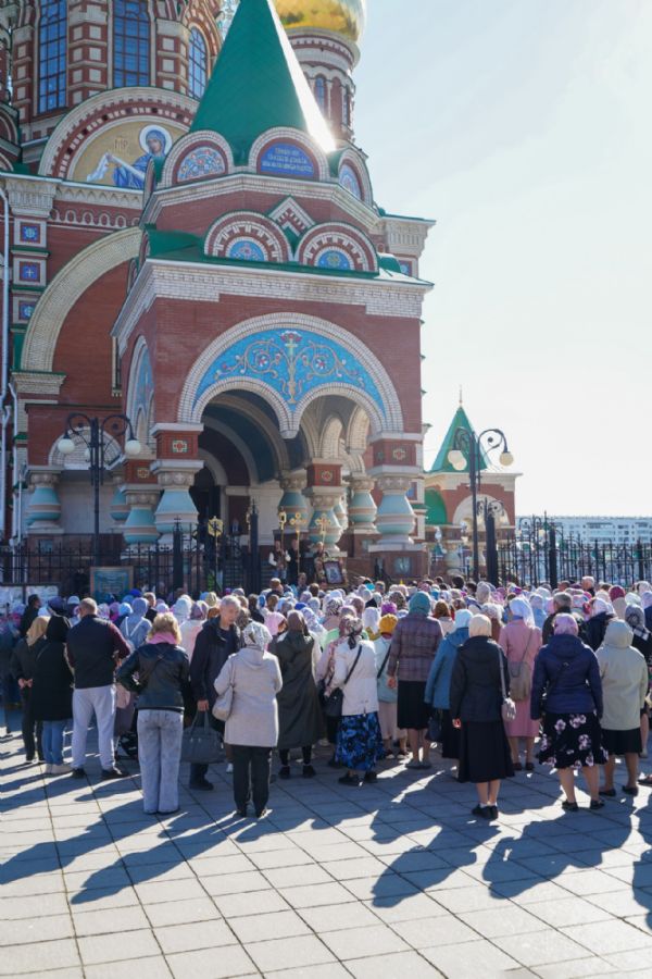 13 сентября после Божественной литургии в Вознесенском соборе г. Йошкар-Олы крестный ход с Мироносицкой иконой Божией Матери продолжил шествие по храмам города.