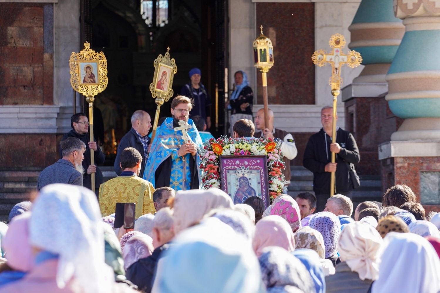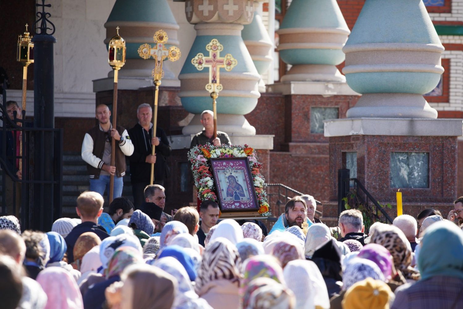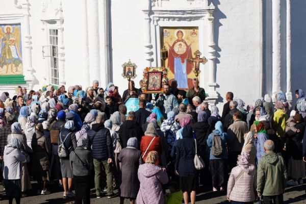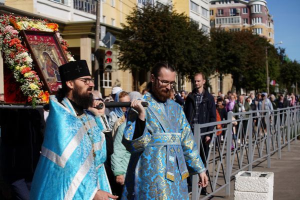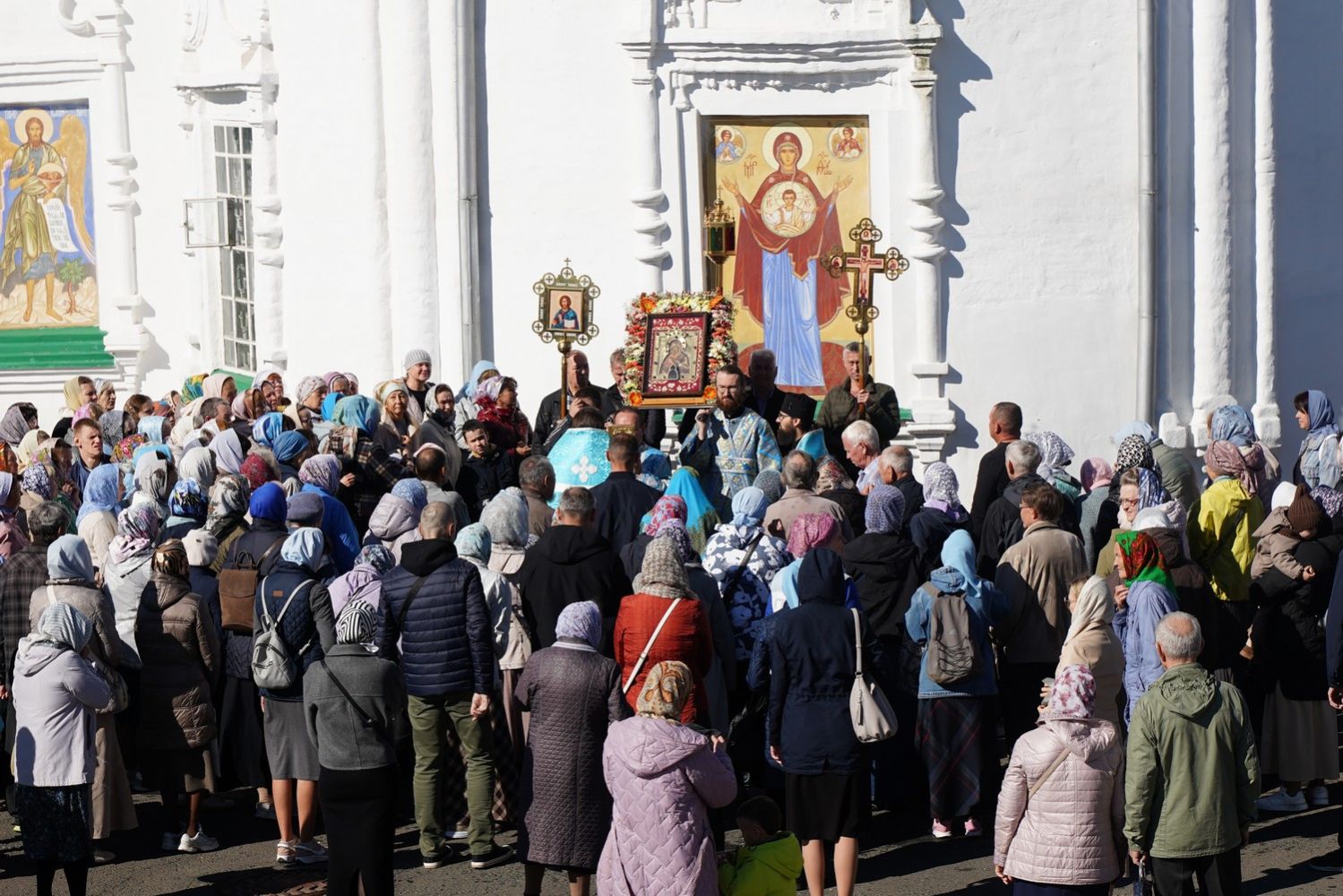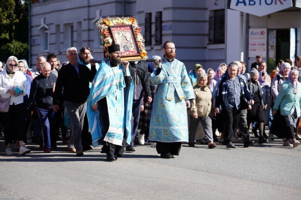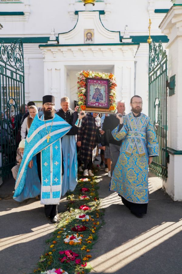 13 сентября после Божественной литургии в Вознесенском соборе г. Йошкар-Олы крестный ход с Мироносицкой иконой Божией Матери продолжил шествие по храмам города.
