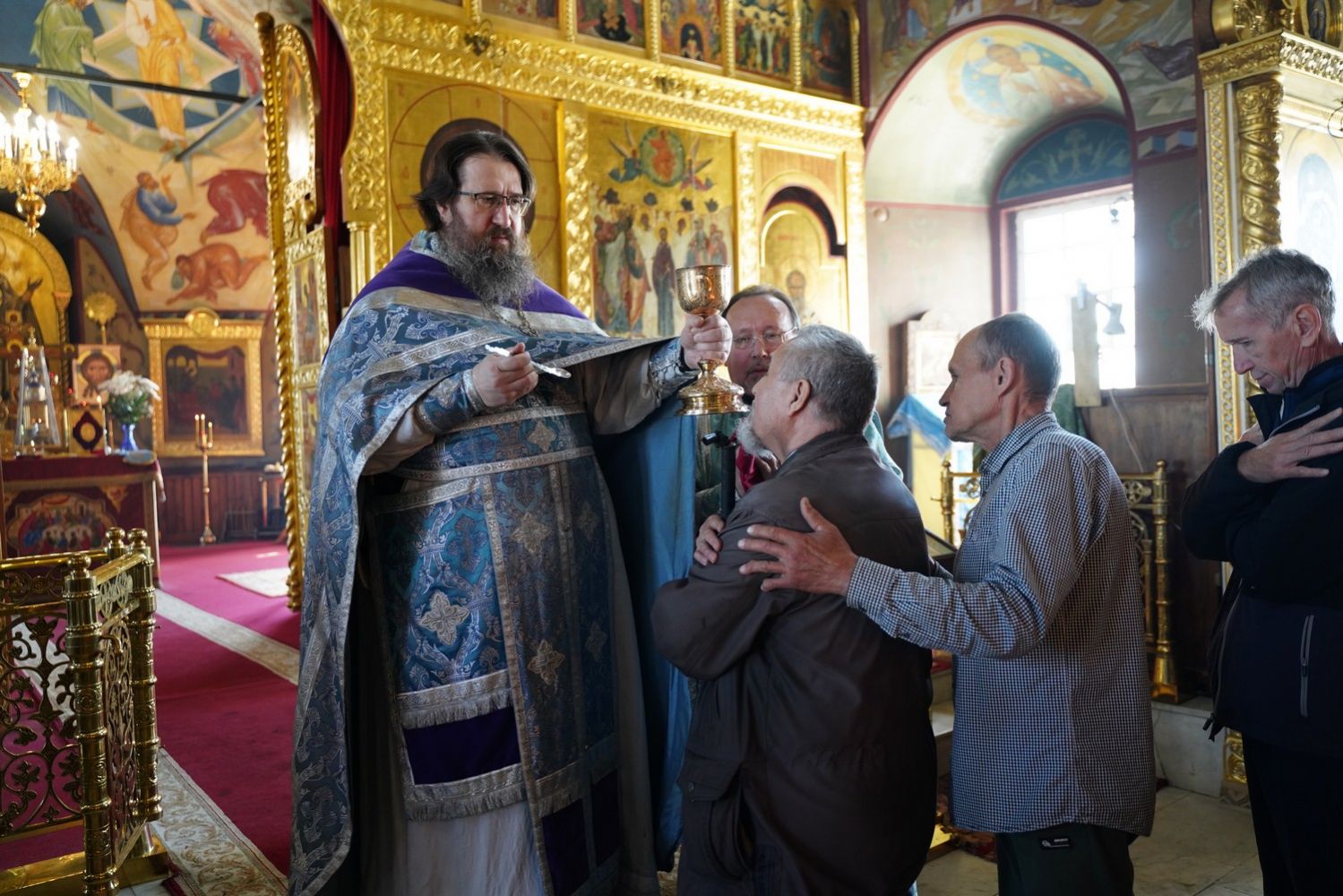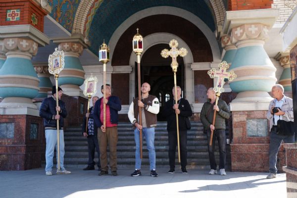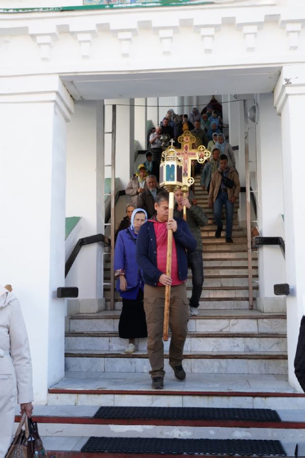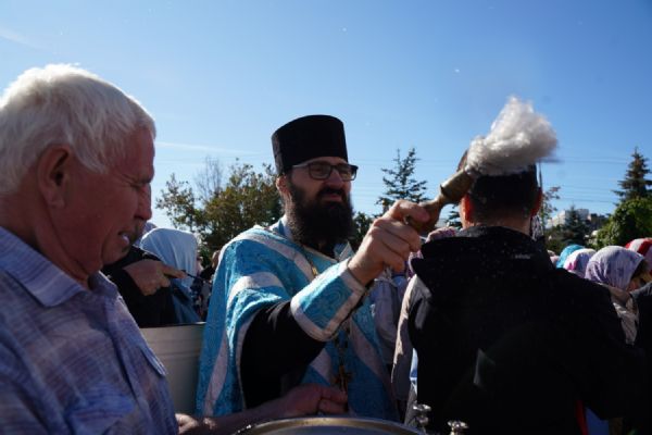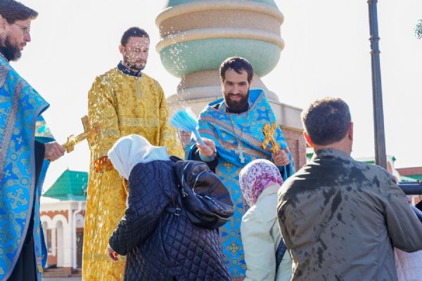 Вначале верующие во главе со священством Вознесенского собора обошли крестным ходом вокруг храма со чтением Евангелия и кроплением святой водой.