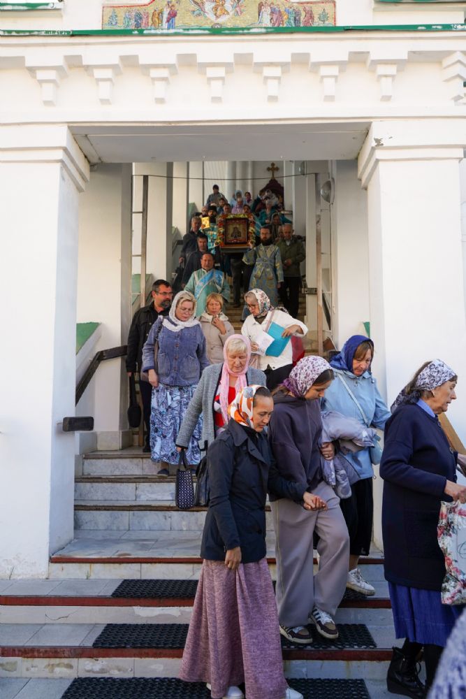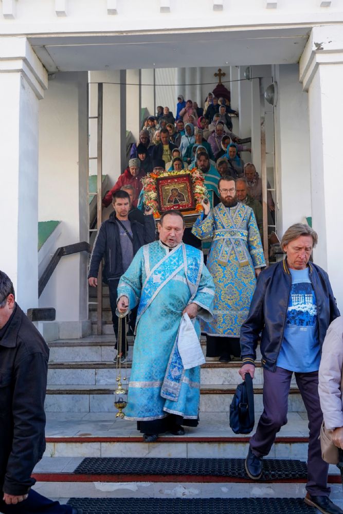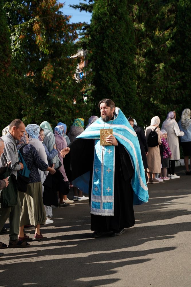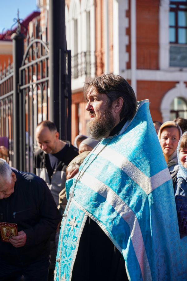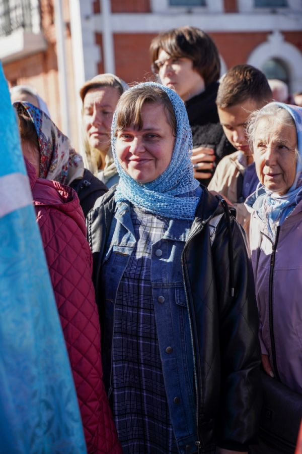 Далее крестоходцы двинулись по улицам города к Благовещенскому кафедральному собору, где их встретили клирики собора и многочисленные прихожане. Все вместе вознесли молитву ко Пресвятой Богородице, верующие благоговейно приложились к святыне.