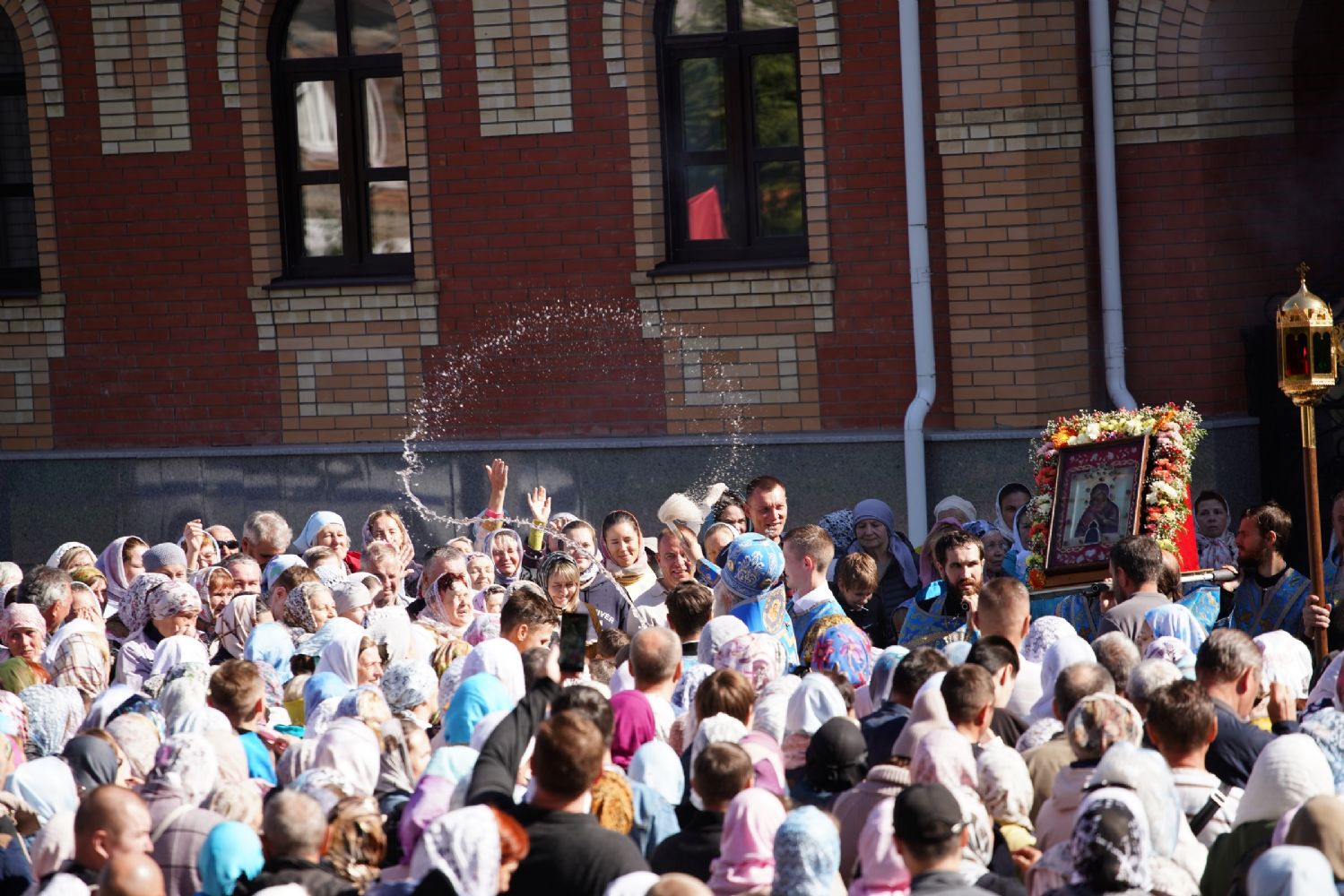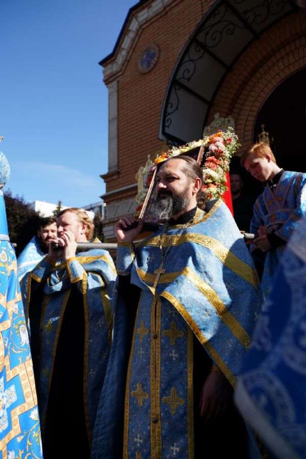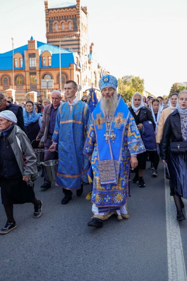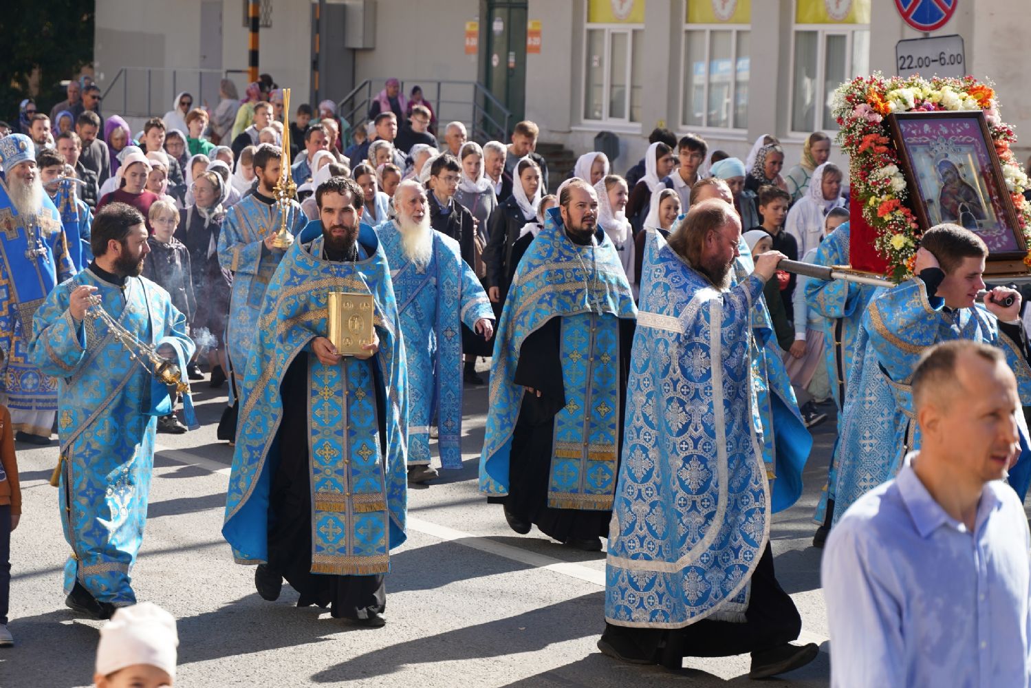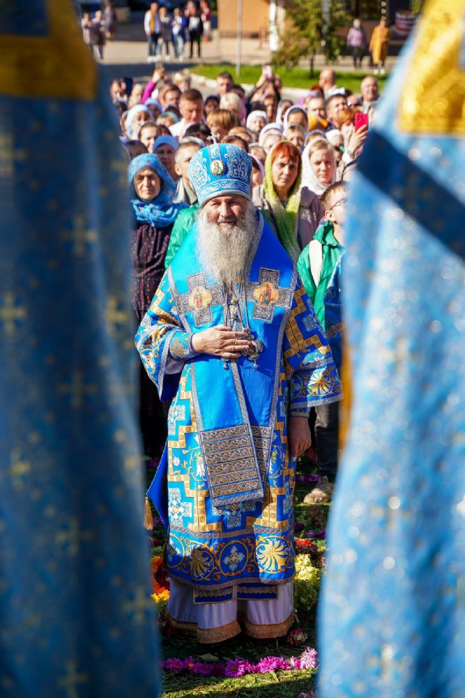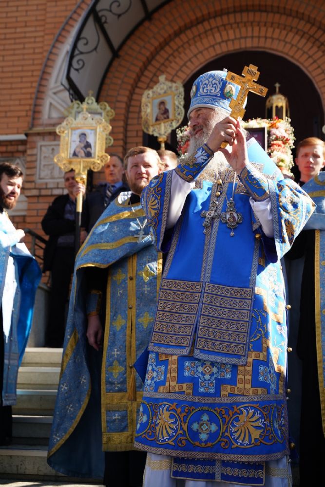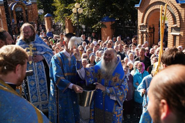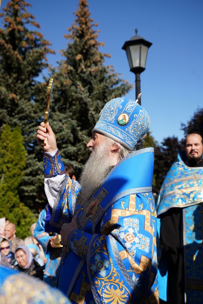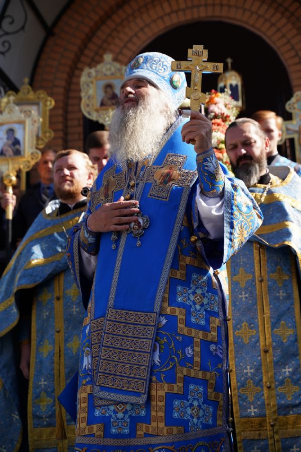 «Сама Царица Небесная сегодня вместе с нами шествовала по нашему городу, чтобы всех нас собрать в едином духовном порыве и прославить Творца всяческих Господа, Который сподобляет всех нас вступить в новолетие благости Господней. Из глубины сердец мы просили Господа, чтобы Он даровал нам все потребное для нашей духовной и материальной жизни. А умоляет Господа о милости ко всем нам, прежде всего, Пречистая Богоматерь – Та, Которая любовью Своею покрывает всякого человека, Которая, находясь на Небесах во славе, не прекращает заботиться о каждом человеке, живущем здесь, на земле. Любовь Ее настолько велика, что Она ни на одно мгновение не прекращает Свою молитву, ждет от нас истинного покаяния, ждет от каждого человека, чтобы мы, исполняя Ее святые заветы, никогда в жизни не отступали от Ее материнской защиты и покрова. А если мы по немощи своей впадаем в грехи, Она с любовью нас, грешных, принимает, если мы с покаянием открываем Ей свое сердце.
