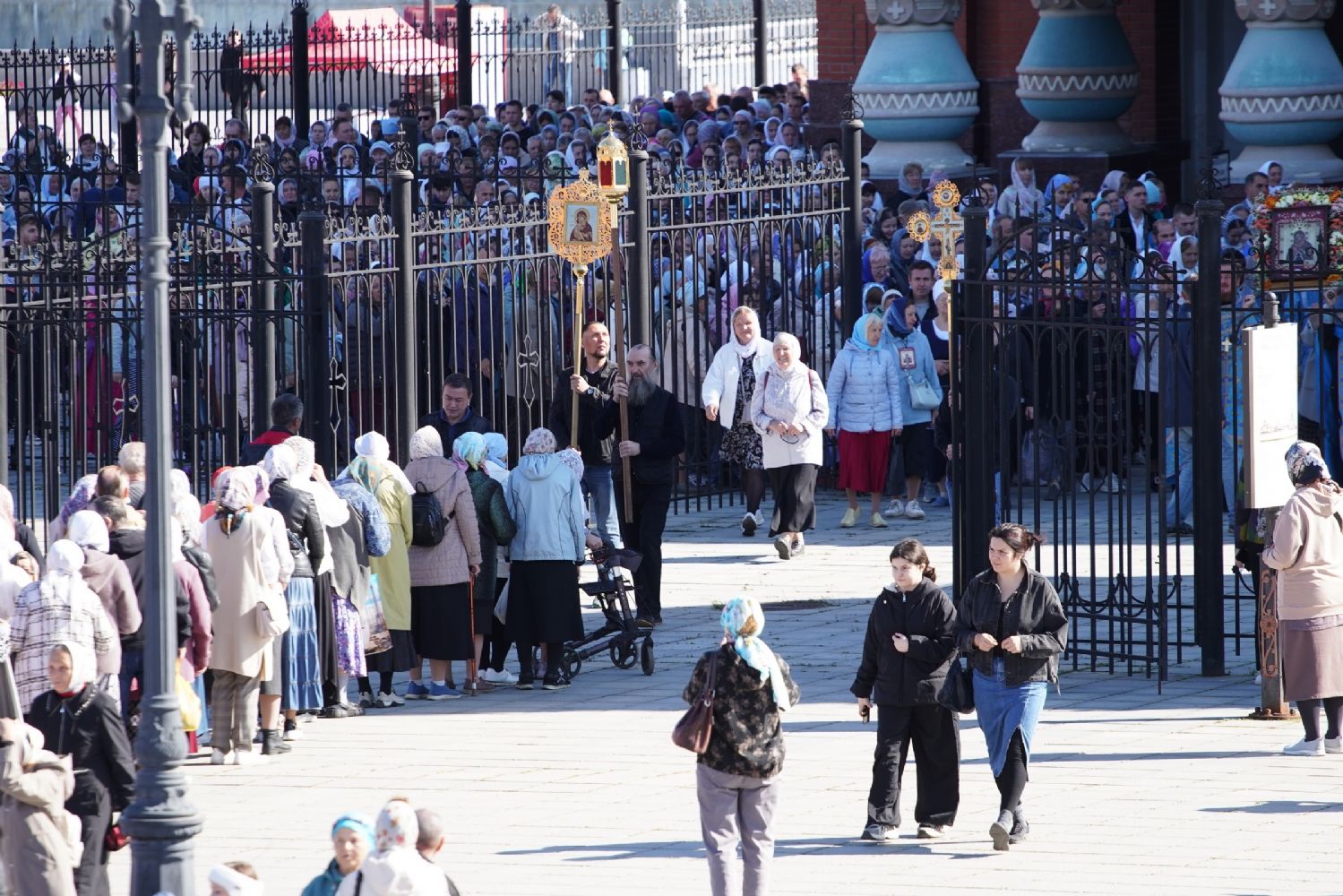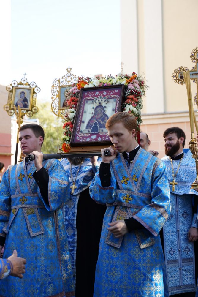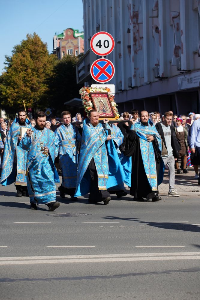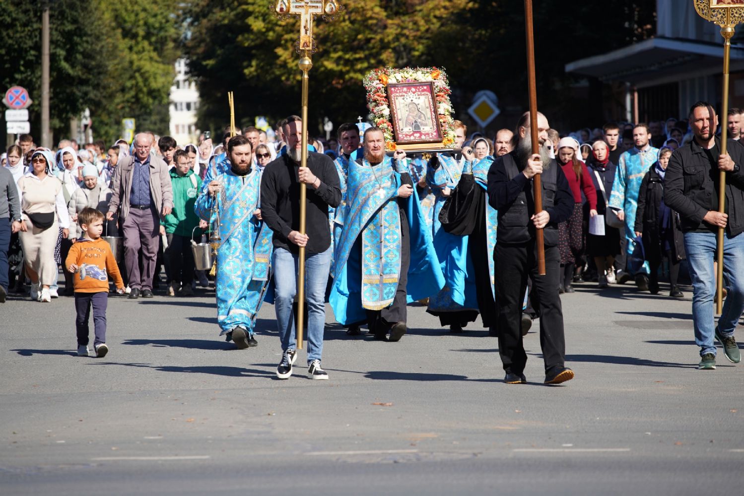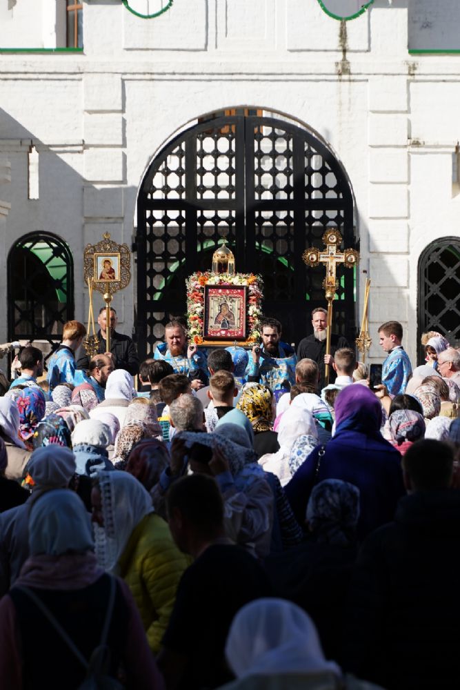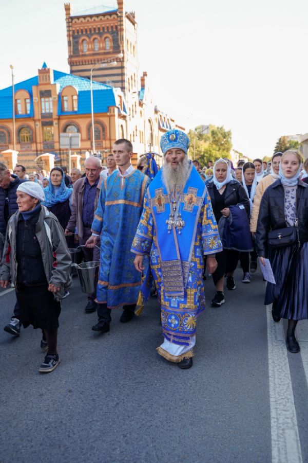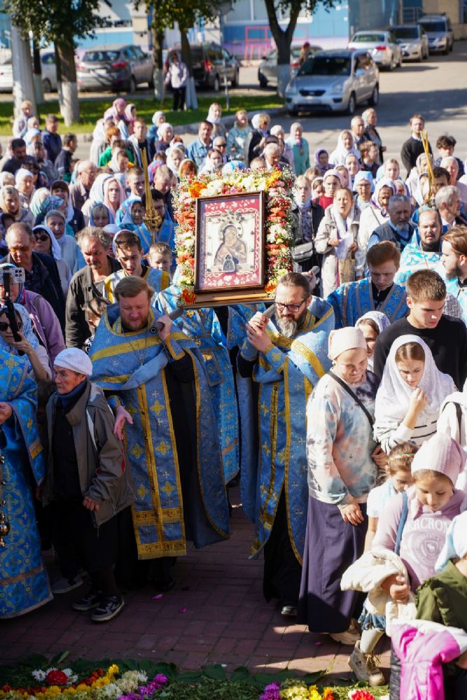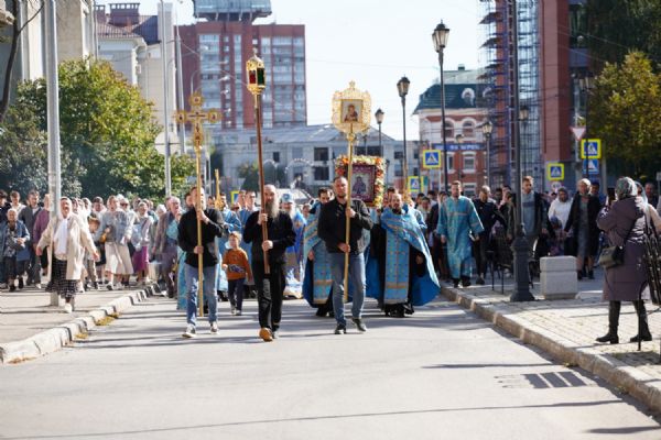 «Сама Царица Небесная сегодня вместе с нами шествовала по нашему городу, чтобы всех нас собрать в едином духовном порыве и прославить Творца всяческих Господа, Который сподобляет всех нас вступить в новолетие благости Господней. Из глубины сердец мы просили Господа, чтобы Он даровал нам все потребное для нашей духовной и материальной жизни. А умоляет Господа о милости ко всем нам, прежде всего, Пречистая Богоматерь – Та, Которая любовью Своею покрывает всякого человека, Которая, находясь на Небесах во славе, не прекращает заботиться о каждом человеке, живущем здесь, на земле. Любовь Ее настолько велика, что Она ни на одно мгновение не прекращает Свою молитву, ждет от нас истинного покаяния, ждет от каждого человека, чтобы мы, исполняя Ее святые заветы, никогда в жизни не отступали от Ее материнской защиты и покрова. А если мы по немощи своей впадаем в грехи, Она с любовью нас, грешных, принимает, если мы с покаянием открываем Ей свое сердце.