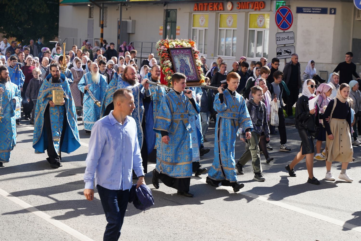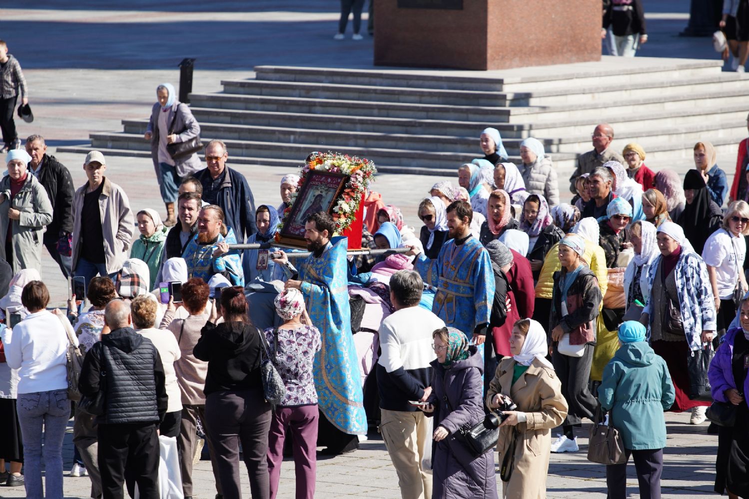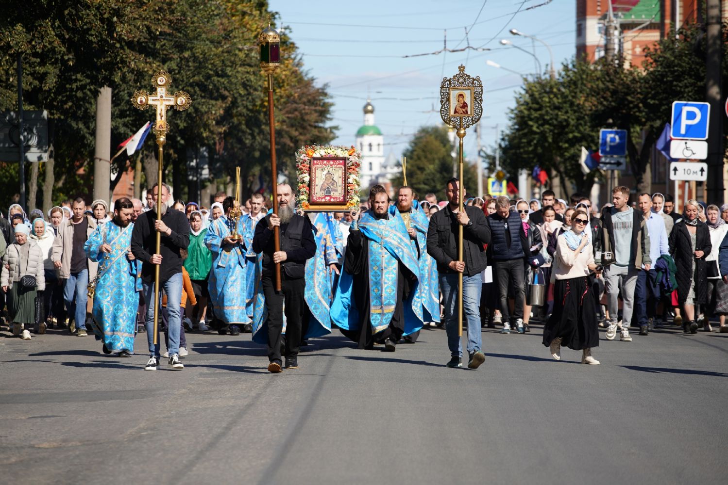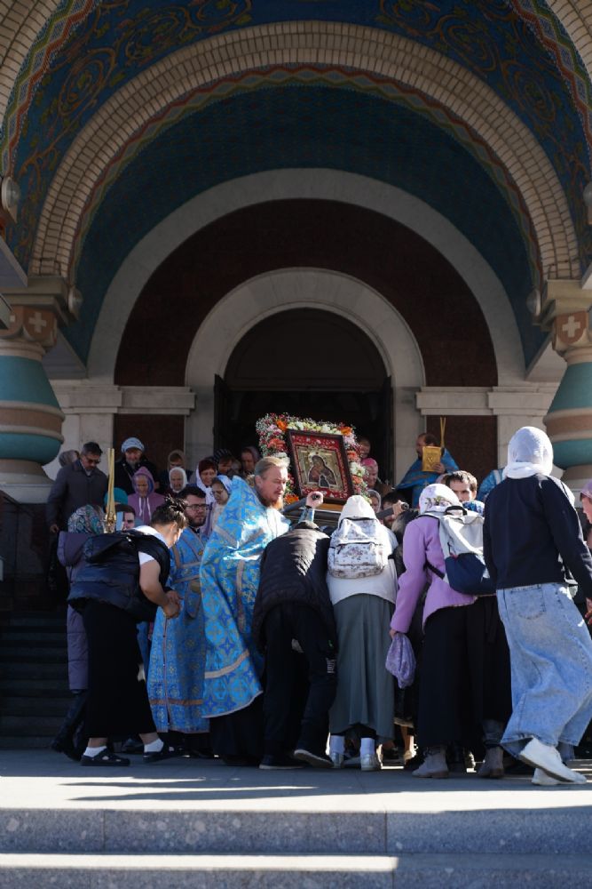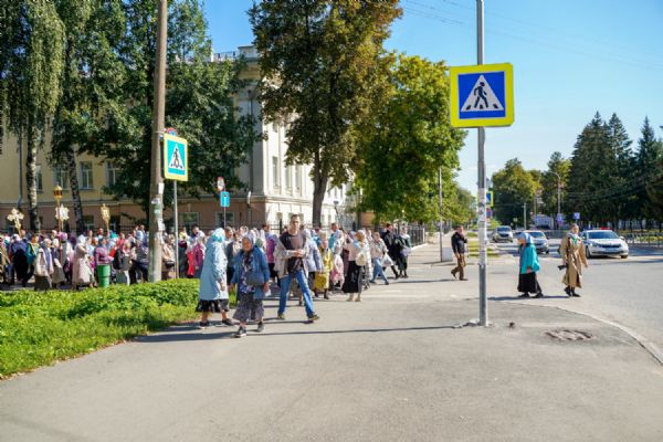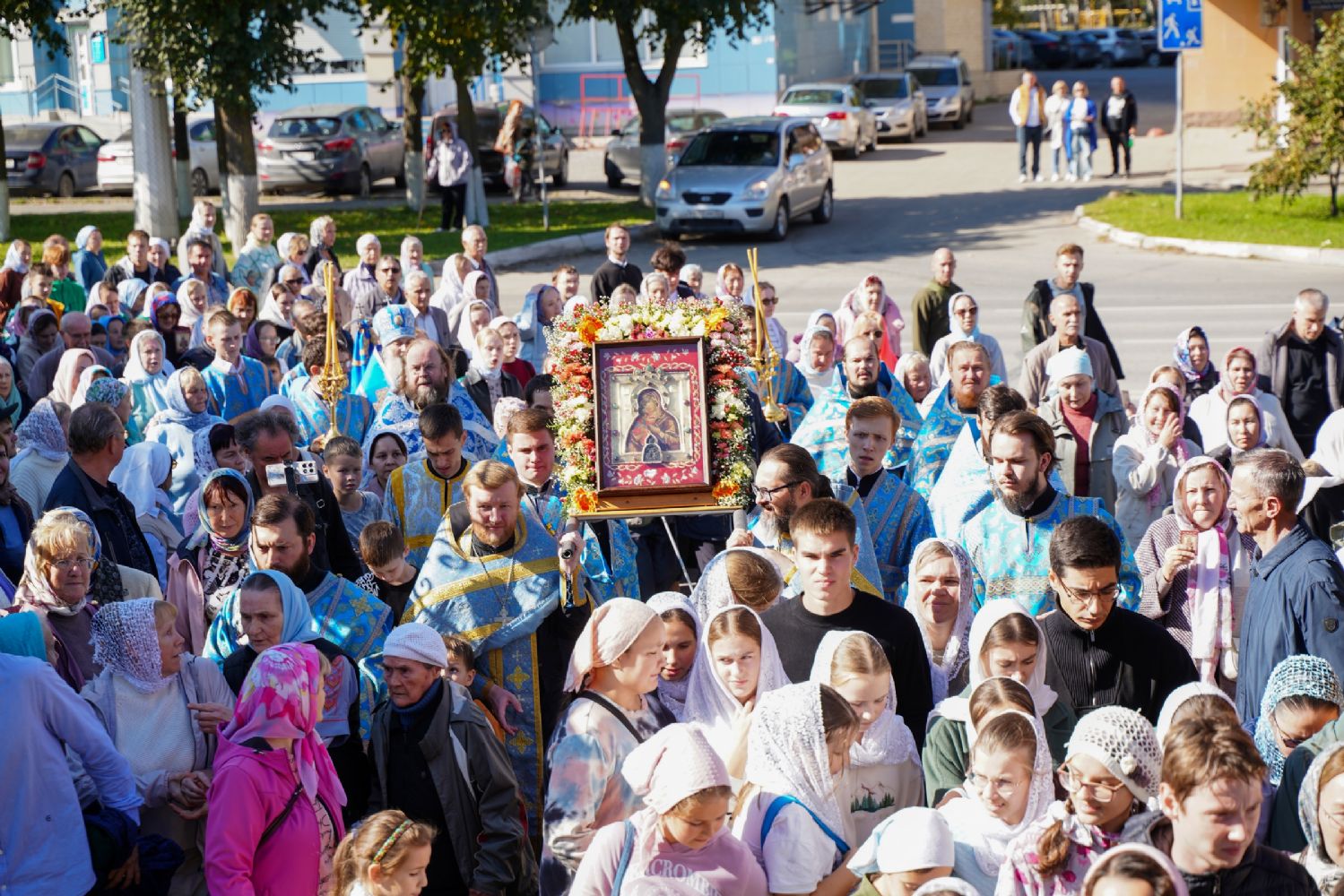 «Сама Царица Небесная сегодня вместе с нами шествовала по нашему городу, чтобы всех нас собрать в едином духовном порыве и прославить Творца всяческих Господа, Который сподобляет всех нас вступить в новолетие благости Господней. Из глубины сердец мы просили Господа, чтобы Он даровал нам все потребное для нашей духовной и материальной жизни. А умоляет Господа о милости ко всем нам, прежде всего, Пречистая Богоматерь – Та, Которая любовью Своею покрывает всякого человека, Которая, находясь на Небесах во славе, не прекращает заботиться о каждом человеке, живущем здесь, на земле. Любовь Ее настолько велика, что Она ни на одно мгновение не прекращает Свою молитву, ждет от нас истинного покаяния, ждет от каждого человека, чтобы мы, исполняя Ее святые заветы, никогда в жизни не отступали от Ее материнской защиты и покрова. А если мы по немощи своей впадаем в грехи, Она с любовью нас, грешных, принимает, если мы с покаянием открываем Ей свое сердце.
