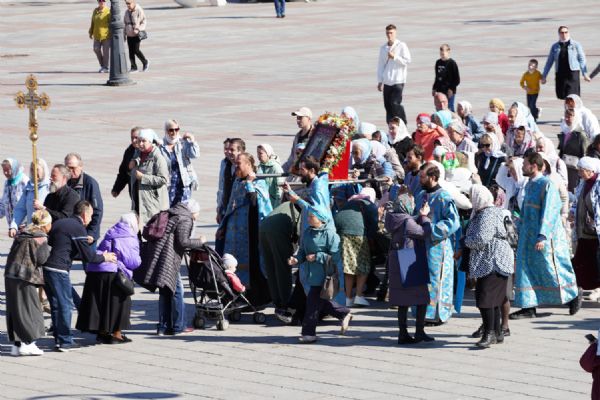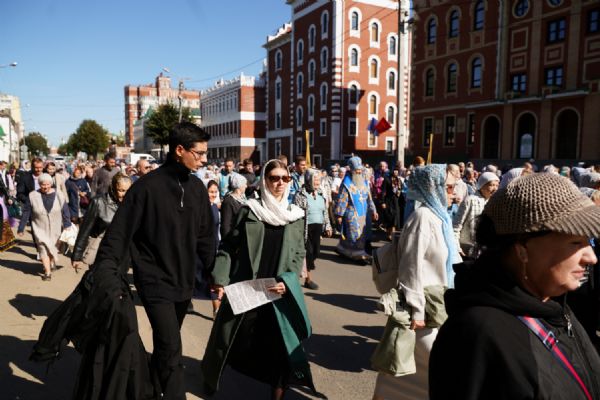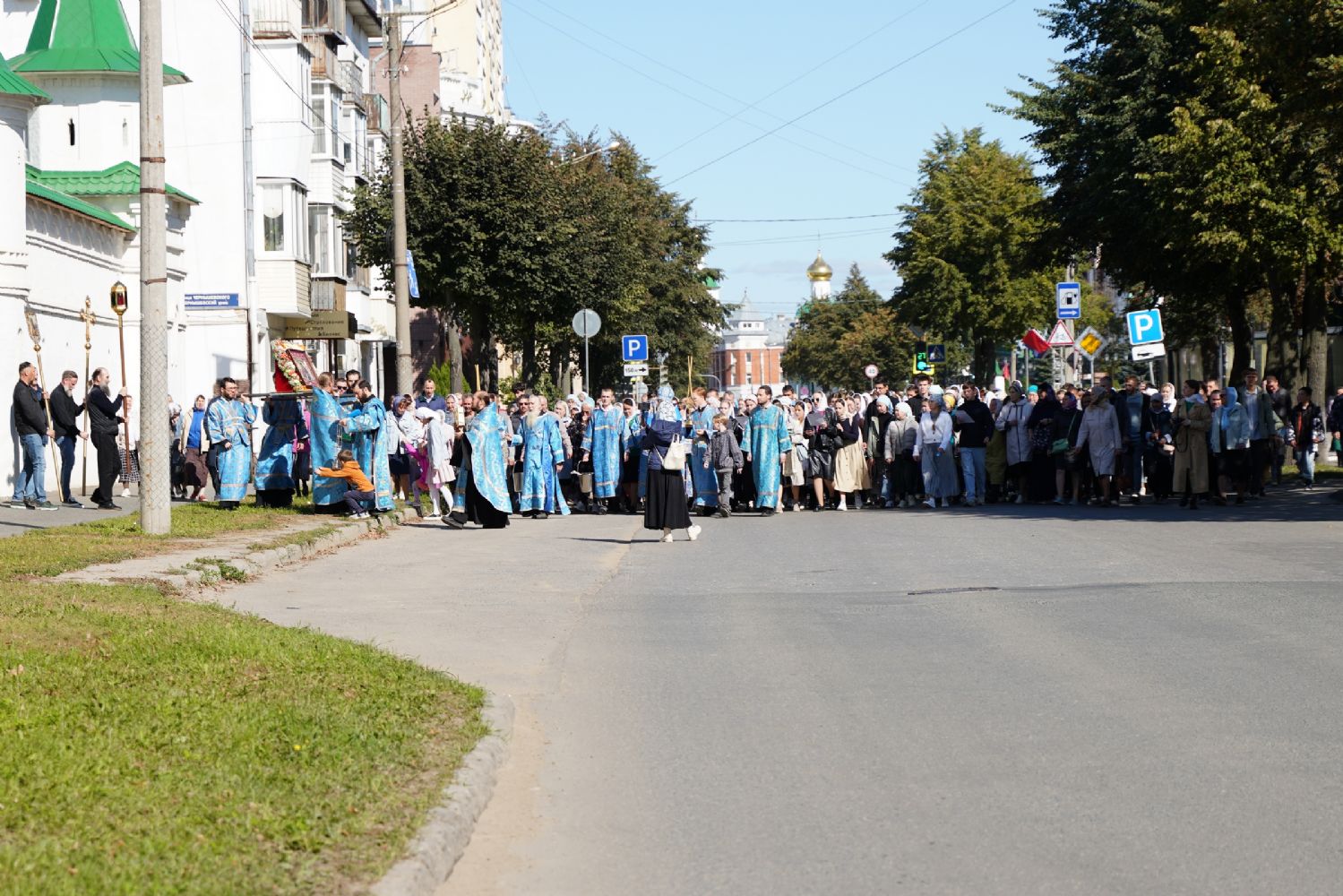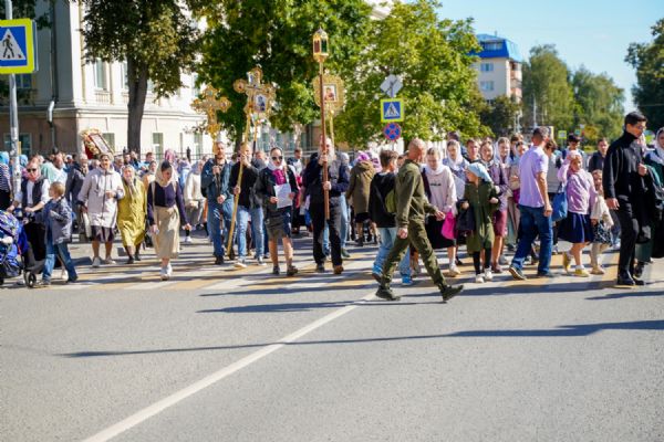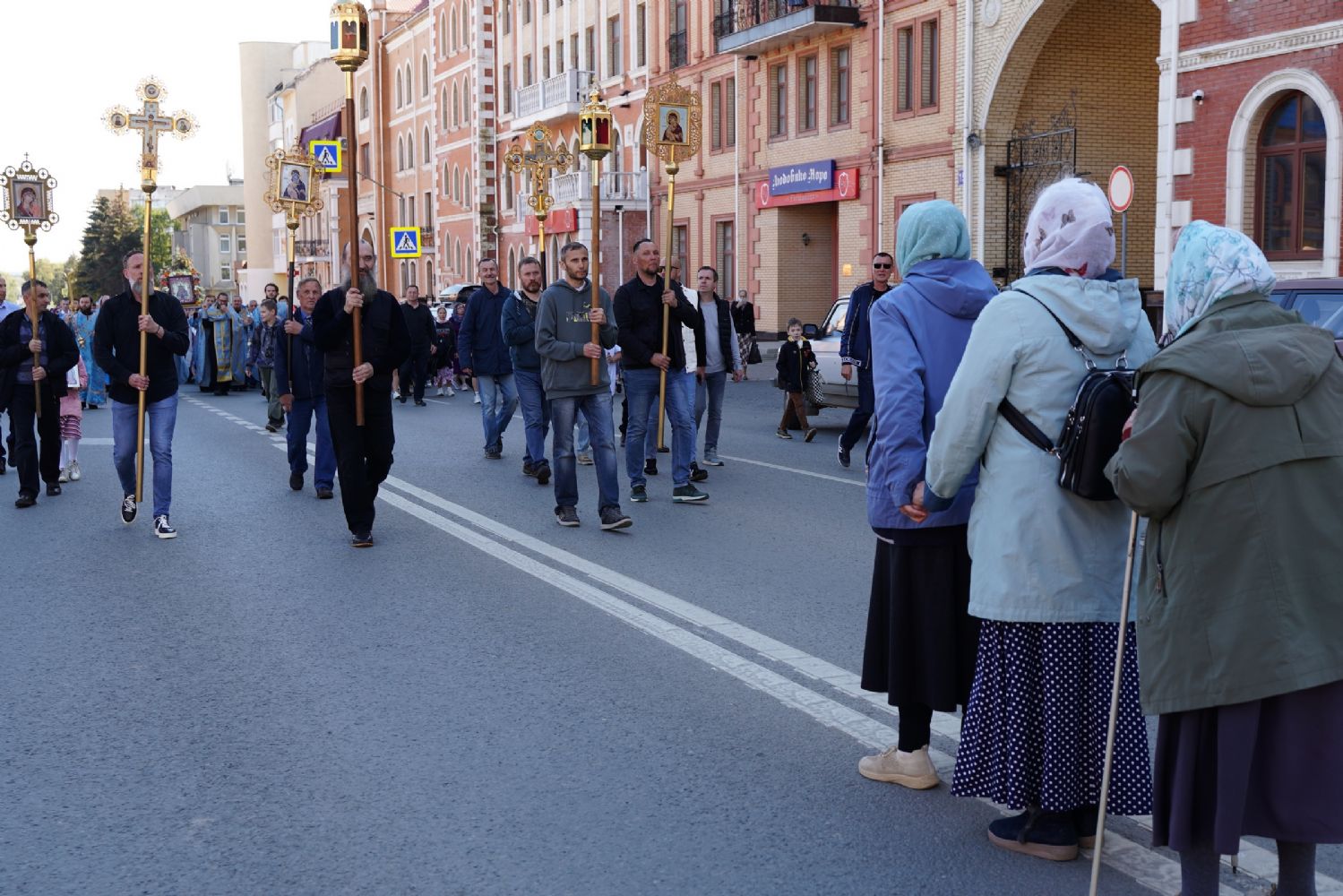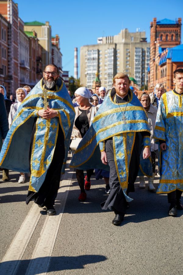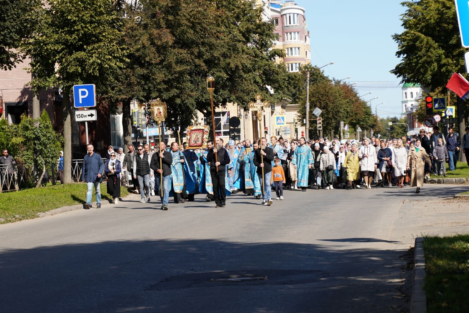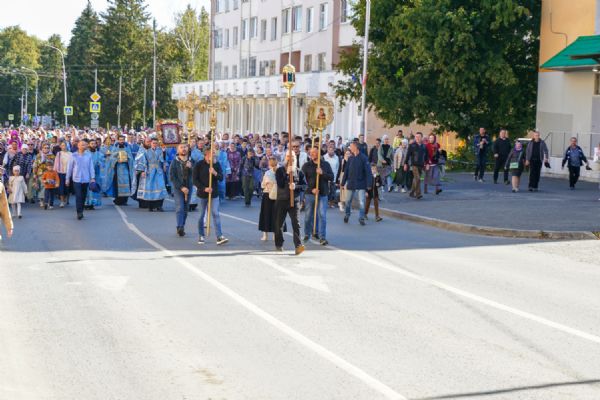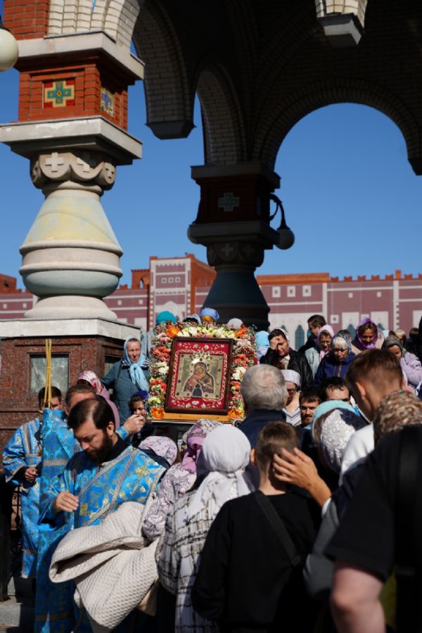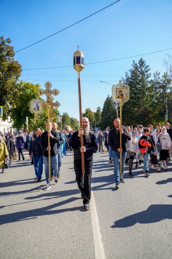 «Сама Царица Небесная сегодня вместе с нами шествовала по нашему городу, чтобы всех нас собрать в едином духовном порыве и прославить Творца всяческих Господа, Который сподобляет всех нас вступить в новолетие благости Господней. Из глубины сердец мы просили Господа, чтобы Он даровал нам все потребное для нашей духовной и материальной жизни. А умоляет Господа о милости ко всем нам, прежде всего, Пречистая Богоматерь – Та, Которая любовью Своею покрывает всякого человека, Которая, находясь на Небесах во славе, не прекращает заботиться о каждом человеке, живущем здесь, на земле. Любовь Ее настолько велика, что Она ни на одно мгновение не прекращает Свою молитву, ждет от нас истинного покаяния, ждет от каждого человека, чтобы мы, исполняя Ее святые заветы, никогда в жизни не отступали от Ее материнской защиты и покрова. А если мы по немощи своей впадаем в грехи, Она с любовью нас, грешных, принимает, если мы с покаянием открываем Ей свое сердце.