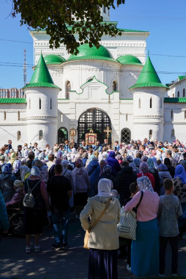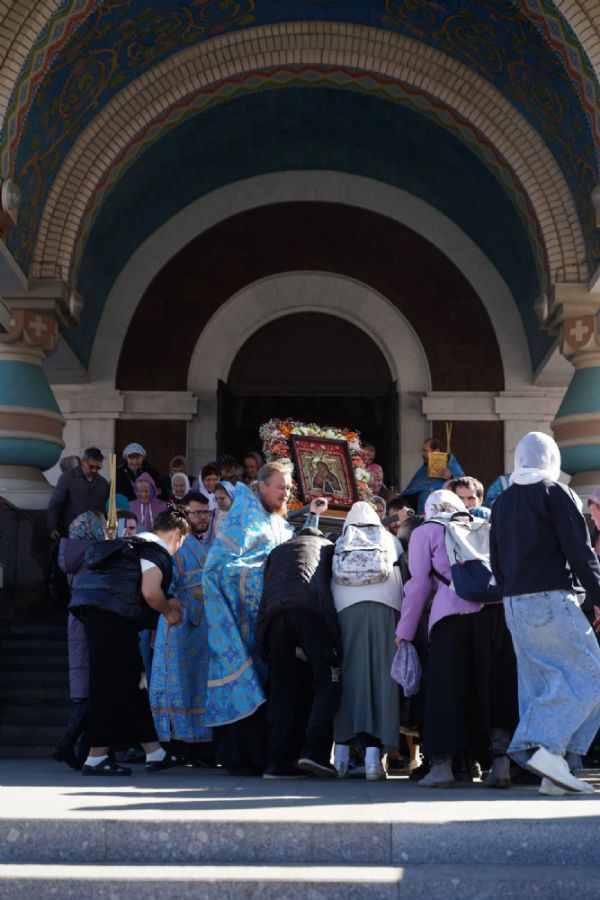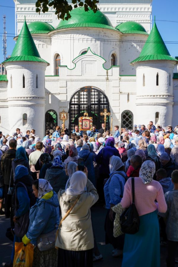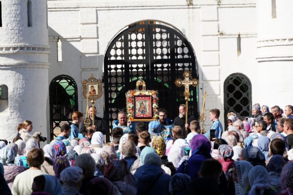 В Успенском храме Пресвятую Богородицу радостно встретили священнослужители и прихожане. Был совершен молебен на новолетие и вознесена молитва Пресвятой Богородице, затем митрополит Иоанн обратился к собравшимся с архипастырским словом, поздравив всех с церковным новолетием благости Господней.