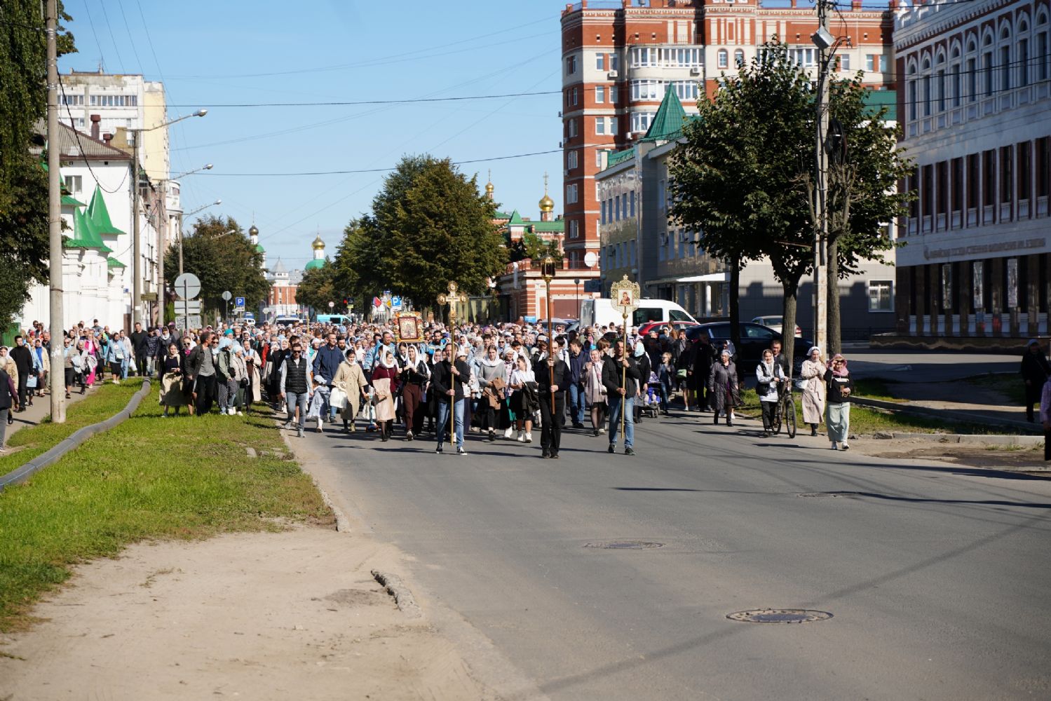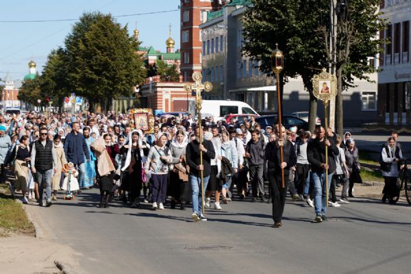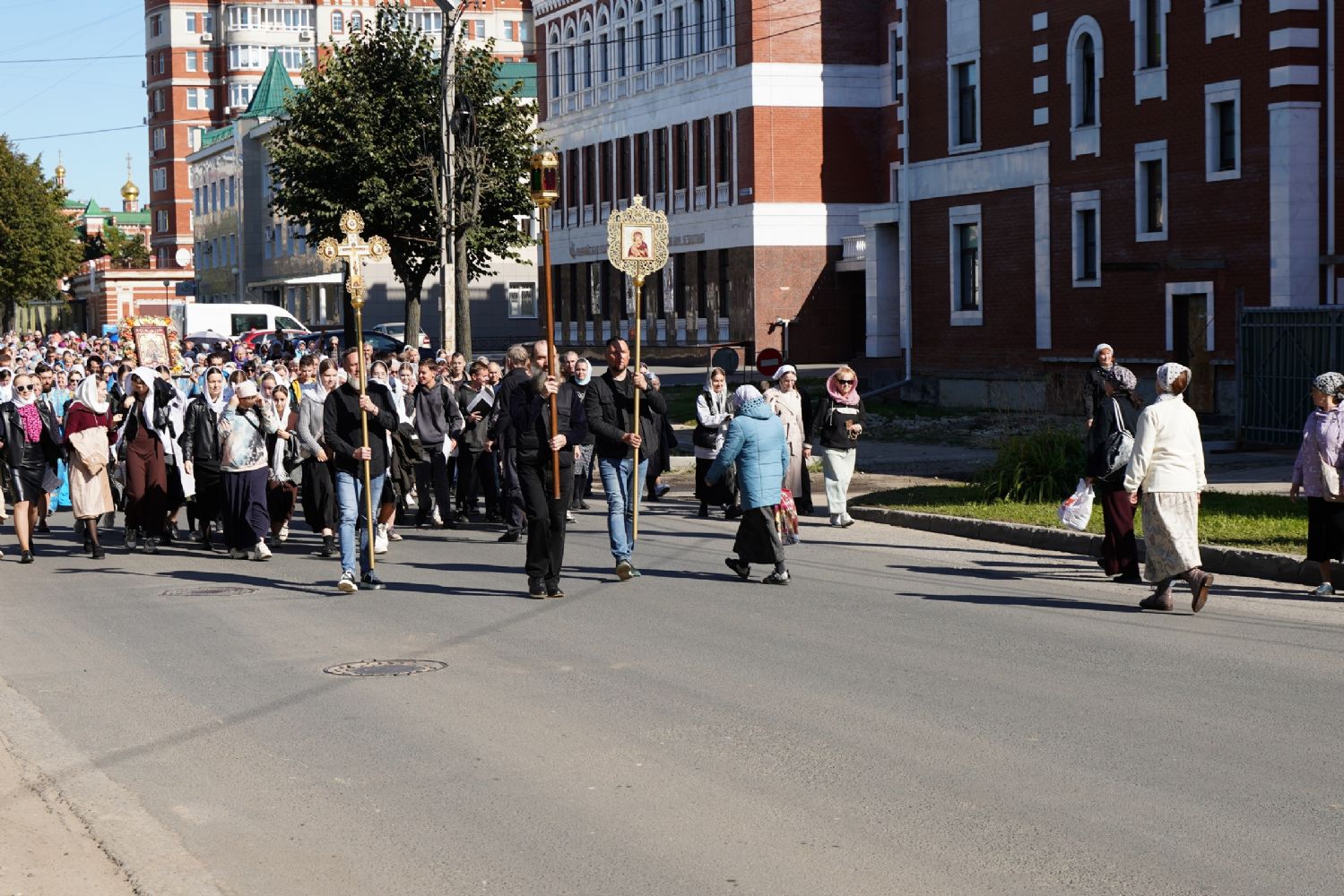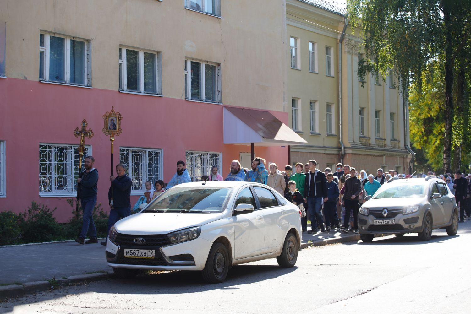 14 сентября, после Литургии в Благовещенском кафедральном соборе, совершил которую митрополит Йошкар-Олинский и Марийский Иоанн, верующие с Мироносицкой иконой Божией Матери обошли крестным ходом вокруг собора, затем владыка Иоанн возглавил молитвенное шествие в Успенский храм г. Йошкар-Олы.