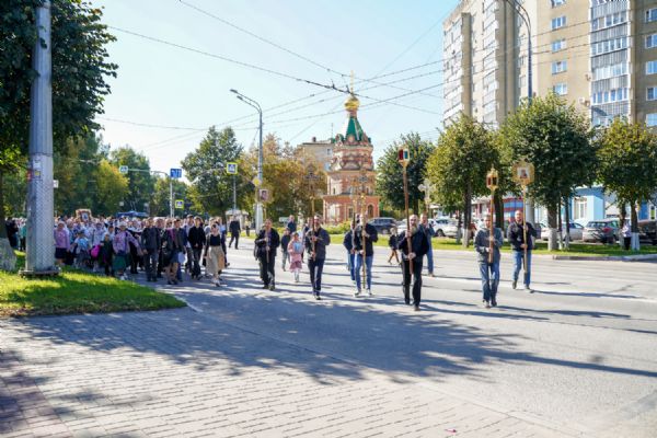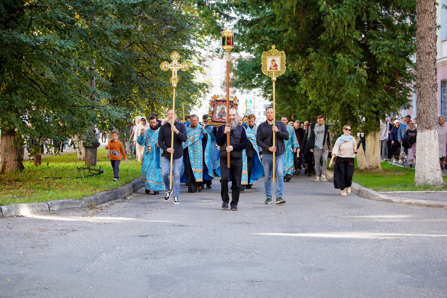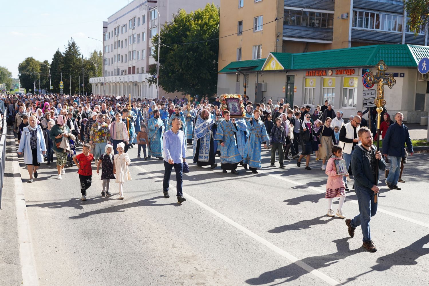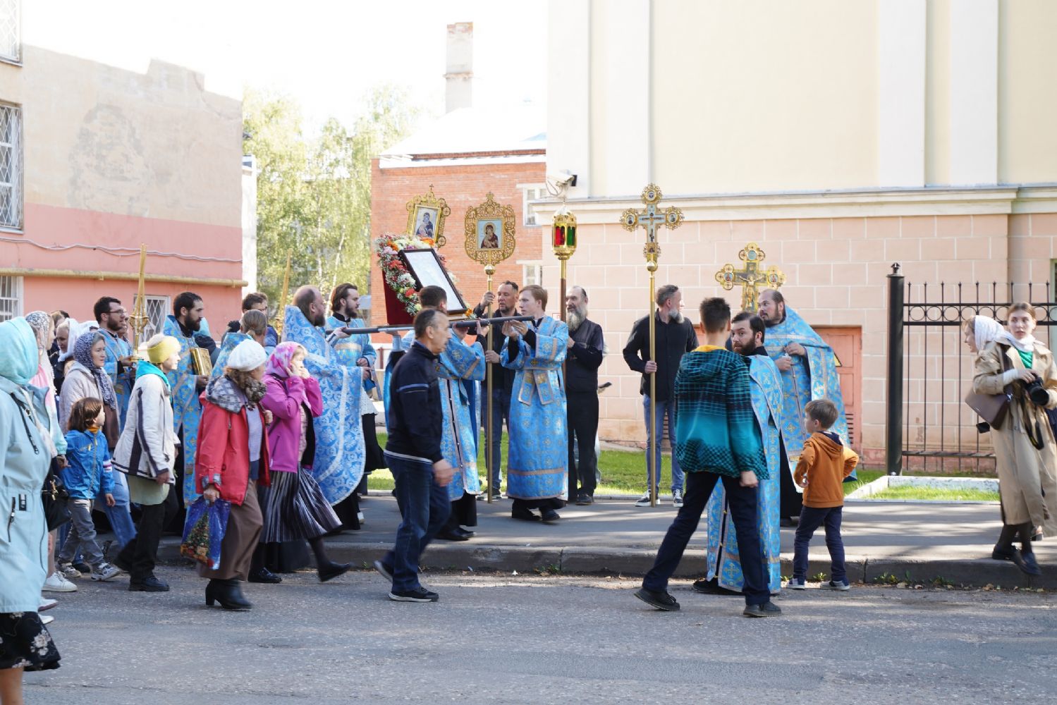 14 сентября, после Литургии в Благовещенском кафедральном соборе, совершил которую митрополит Йошкар-Олинский и Марийский Иоанн, верующие с Мироносицкой иконой Божией Матери обошли крестным ходом вокруг собора, затем владыка Иоанн возглавил молитвенное шествие в Успенский храм г. Йошкар-Олы.