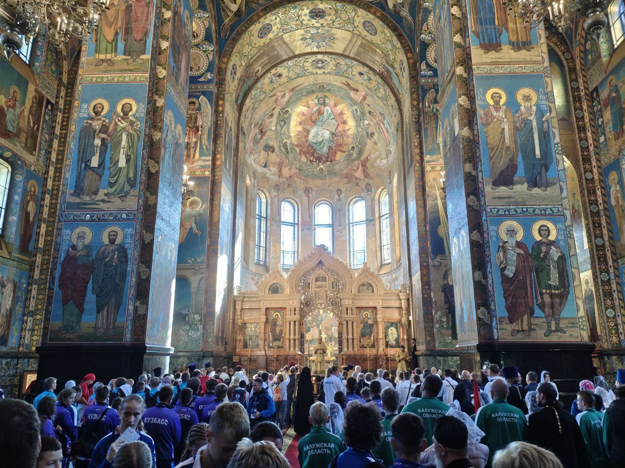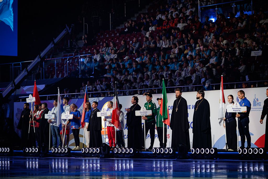 Церемония открытия Игр началась с исполнения сводным хором духовенства Санкт-Петербургской епархии праздничного тропаря святому князя Александру Невскому. Участники соборно помолились за литургией в храме Спаса на крови. А после богослужения прошли в общегородском крестном ходе от Казанского собора до стен Александра Невской лавры.