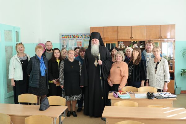 В беседе с преподавателями школы владыка Феофан затронул многие духовные темы. Также была представлена информация о Международном конкурсе детского творчества «Красота Божьего мира». Конкурс направлен на приобщение детей и юношества к православной культуре. Встреча прошла в доброй и радостной атмосфере.