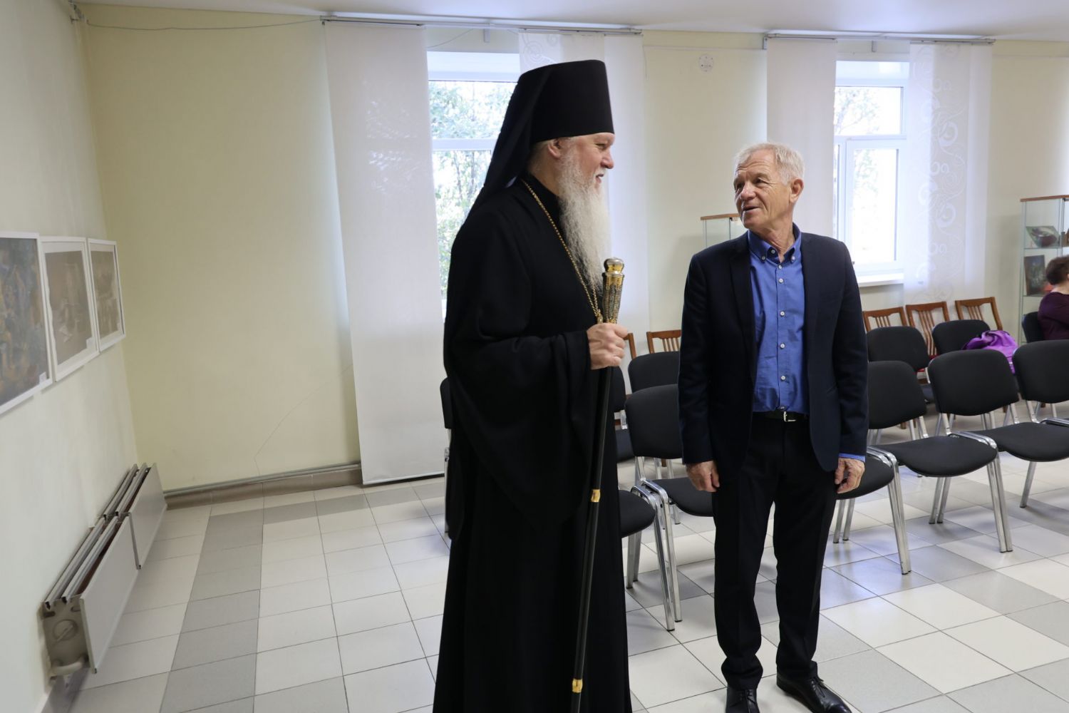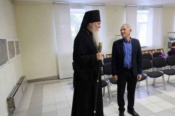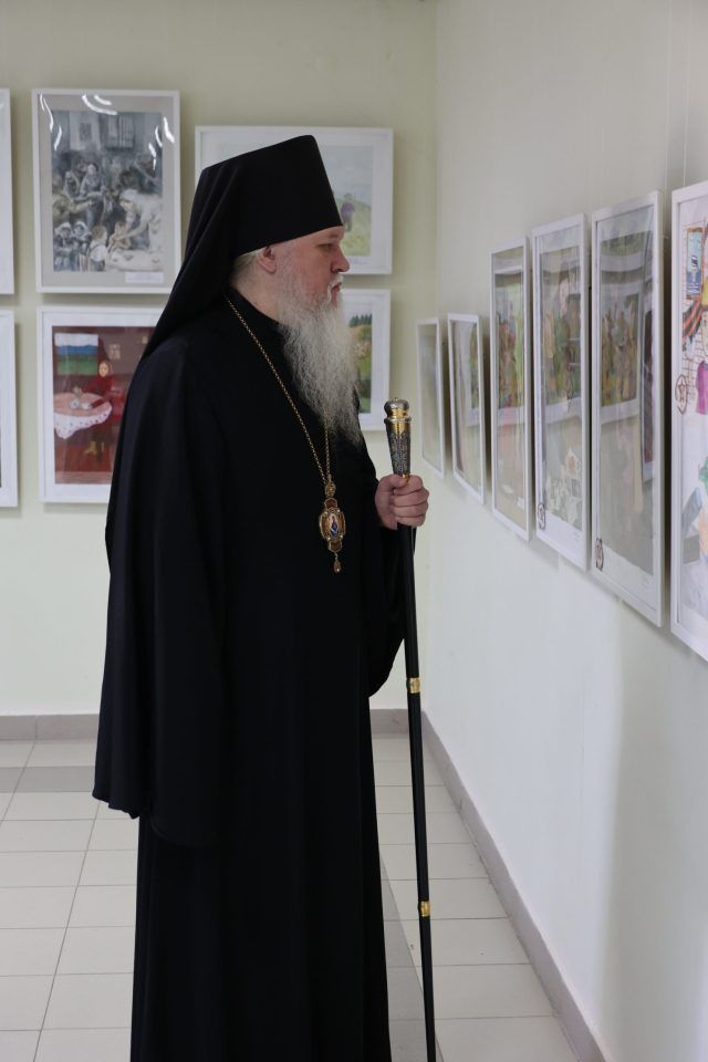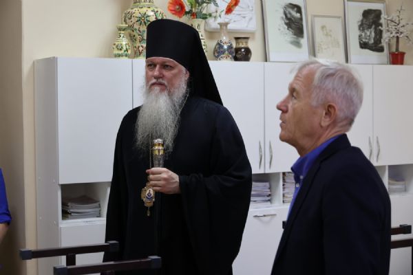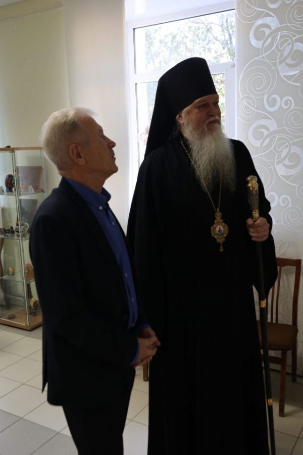 На следующий день, 23 сентября епископ Феофан посетил Детскую художественную школу г. Волжска. Архипастырь ознакомился с пленэрными работами учащихся художественных школ и школ искусств, представленными на выставке, а также осмотрел выставку работ, посвященных 80-летию Победы в Великой Отечественной войне.