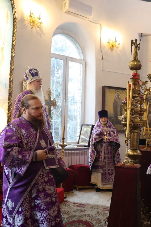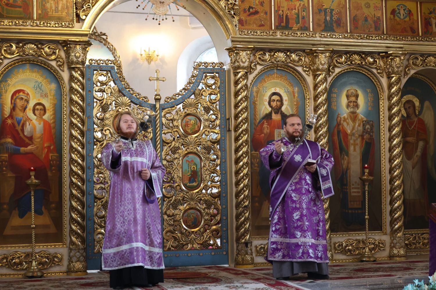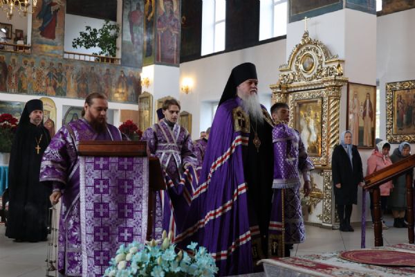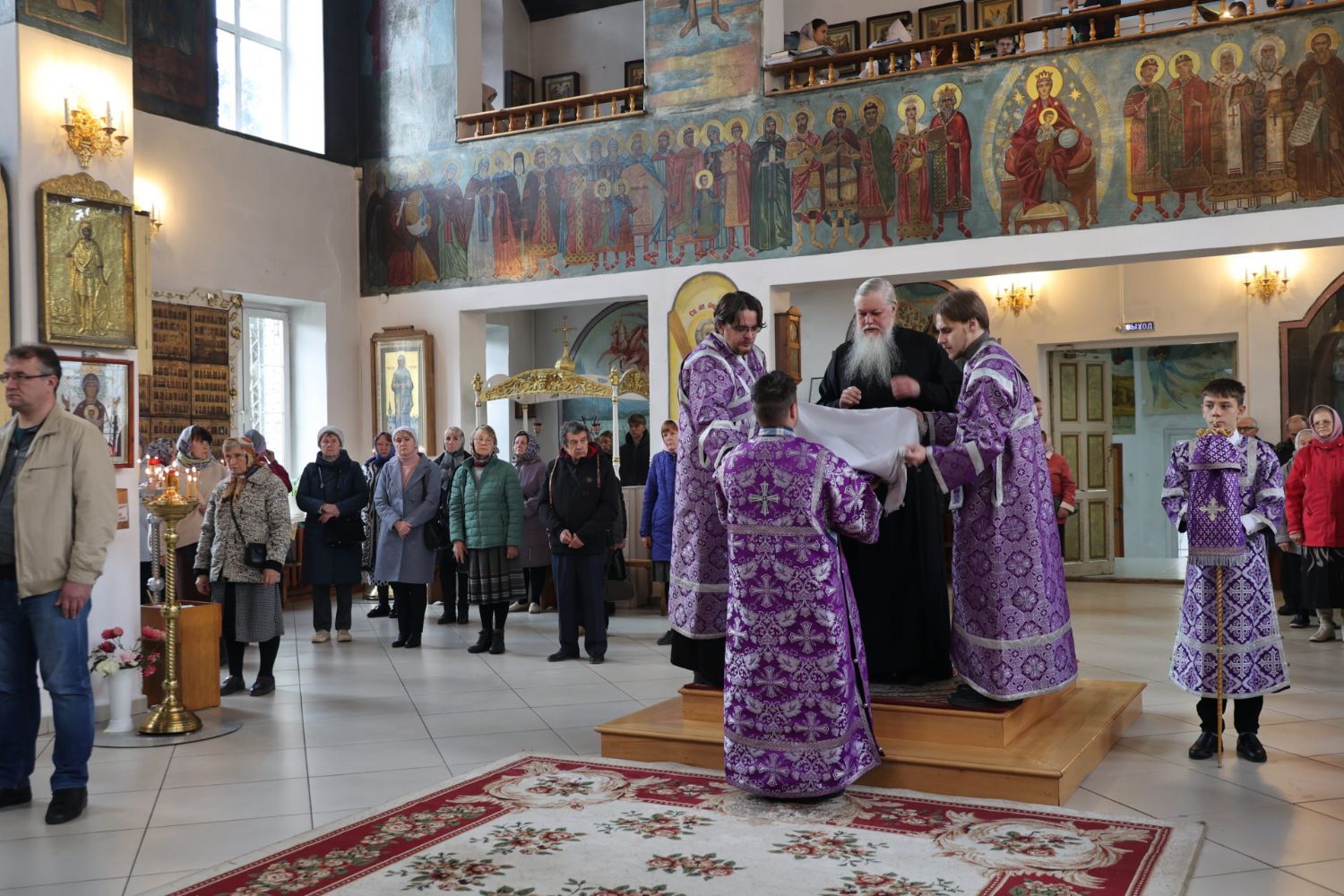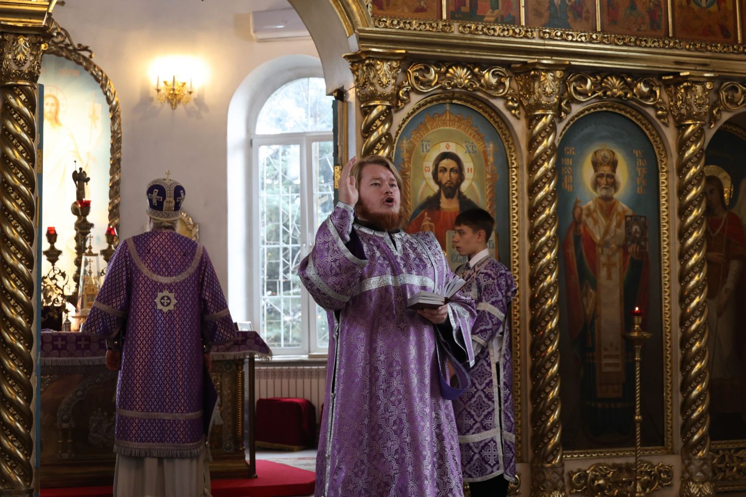 Архипастырю сослужили ключарь собора иерей Иоанн Лапшинский, клирики собора иеромонах Авель (Крашенинников), иерей Сергий Першаков, диакон Иоанн Захаров и диакон Александр Викторов. Песнопения исполнял народный хор под управлением Евгения Чигарова.