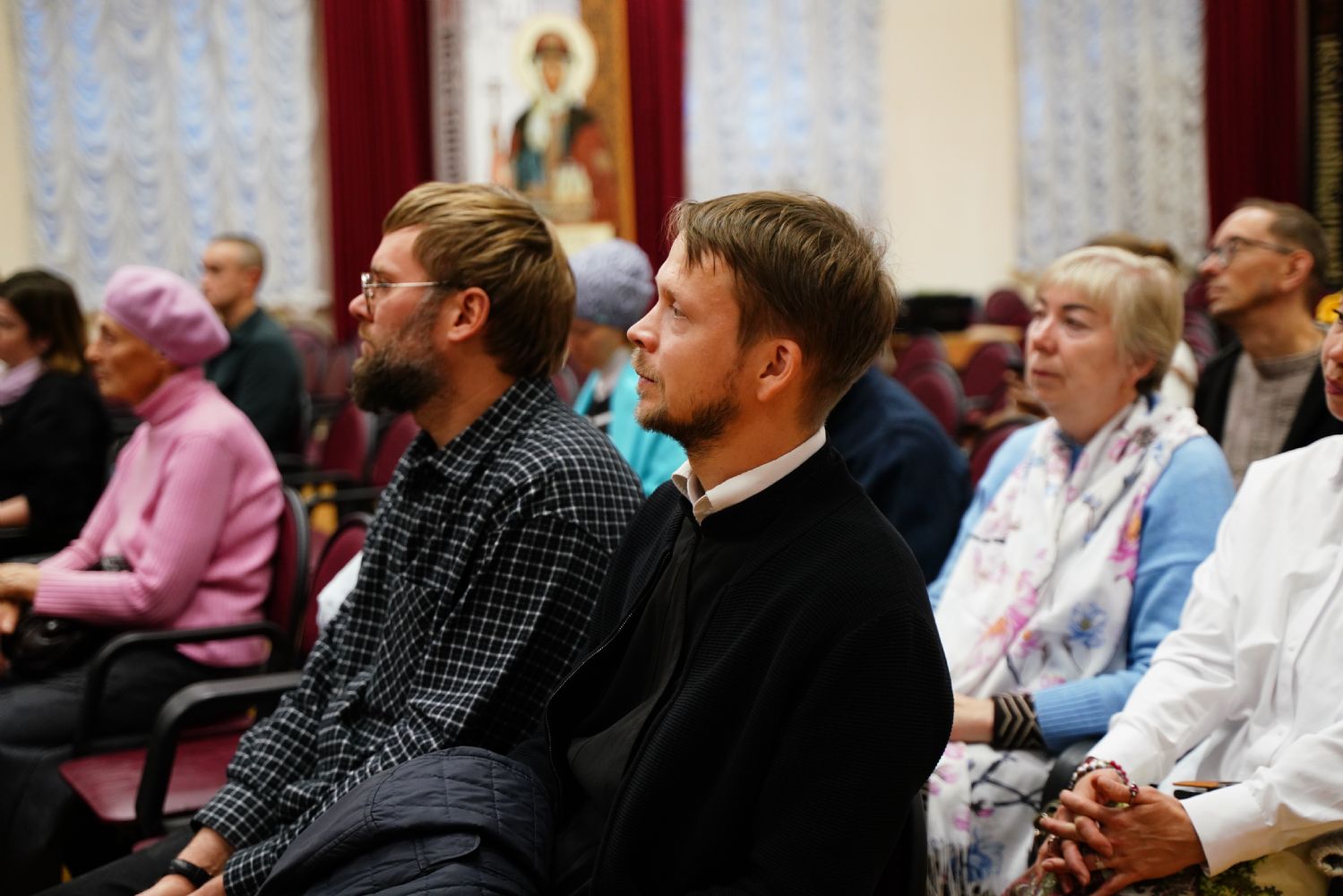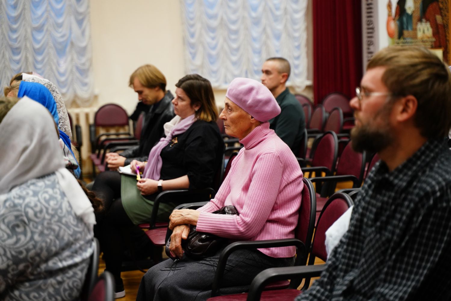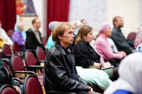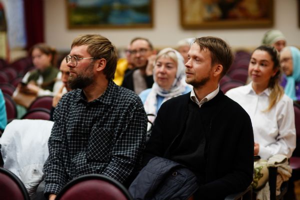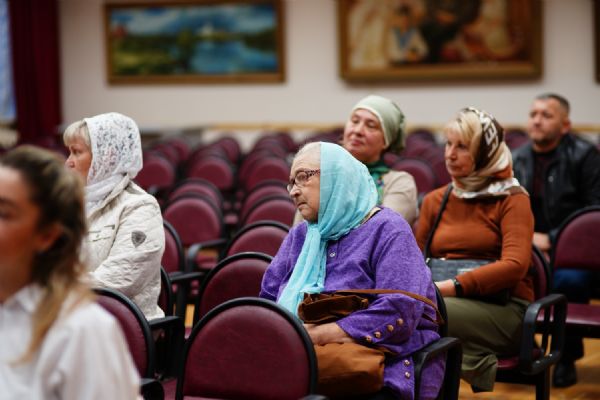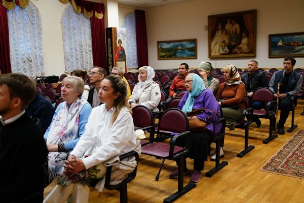 Затем в актовом зале Православного центра состоялось организационное собрание с обучающимися – завуч курсов Виктория Яковлевна Сарынина представила преподавателей богословских предметов, ознакомила курсантов с учебным расписанием, рассказала о традициях, которые сложились на курсах за прошедшие годы.