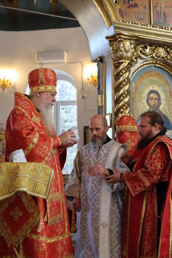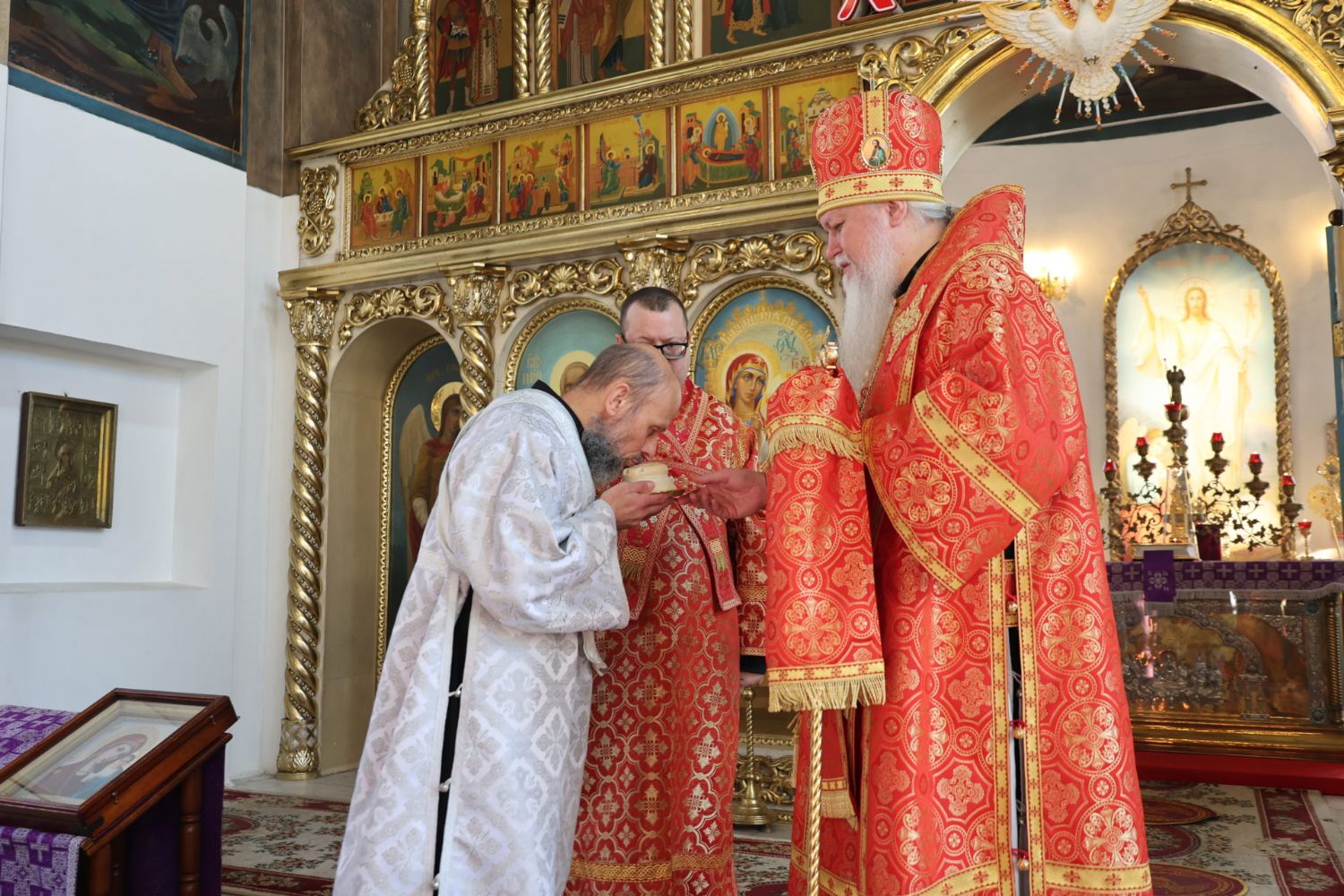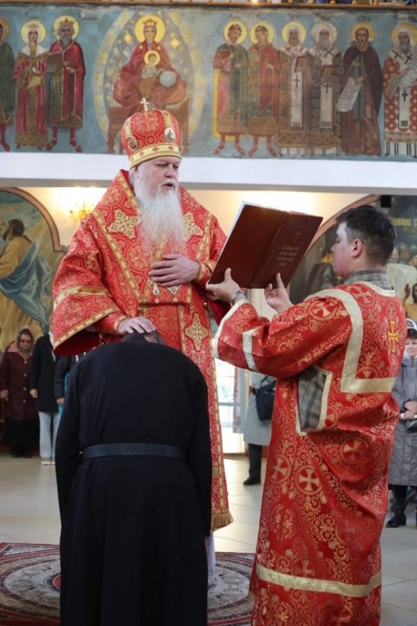 В начале богослужения епископ Феофан совершил хиротесию во чтеца и иподиакона монаха Питирима (Мосякина). После Евхаристического канона архипастырь рукоположил иподиакона монаха Питирима (Мосякина) во иеродиакона.