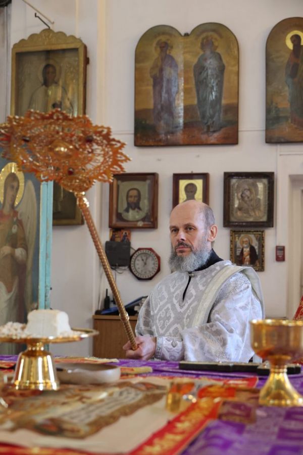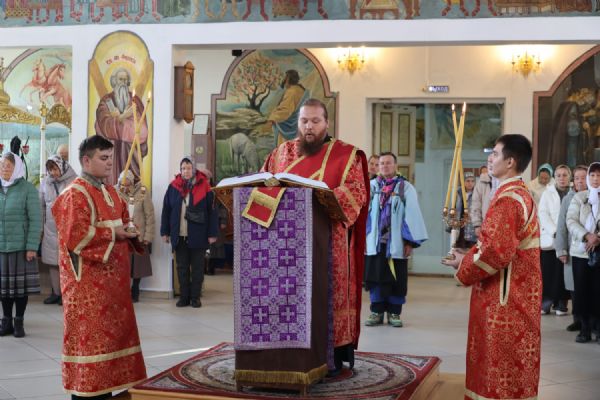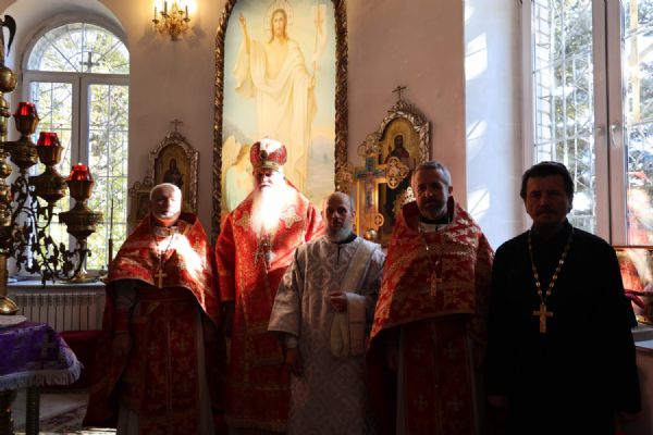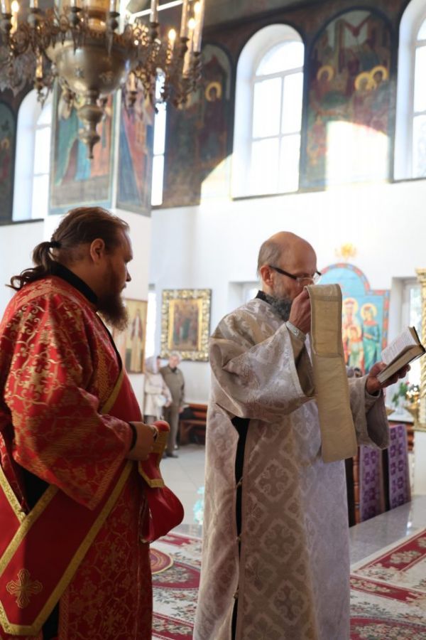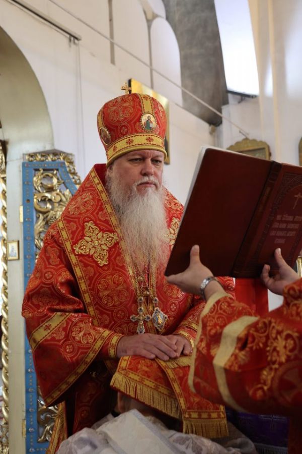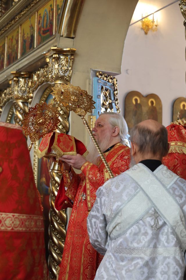 Его Преосвященству сослужили ключарь собора иерей Иоанн Лапшинский, клирики собора иеромонах Авель (Крашенинников) и диакон Иоанн Захаров. Песнопения исполнял народный хор под управлением Евгения Чигарова.