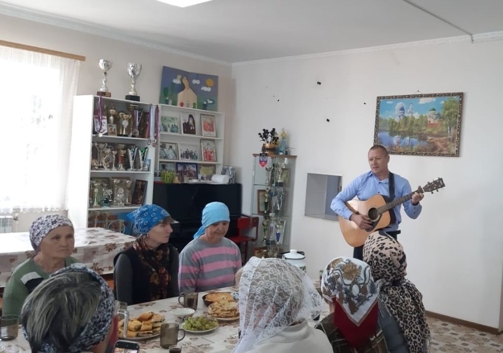 С музыкальным поздравлением выступил глава Эмековского поселения Г.В. Элембаев, наполнив трапезную звуками, которые дарили радость и вдохновение.