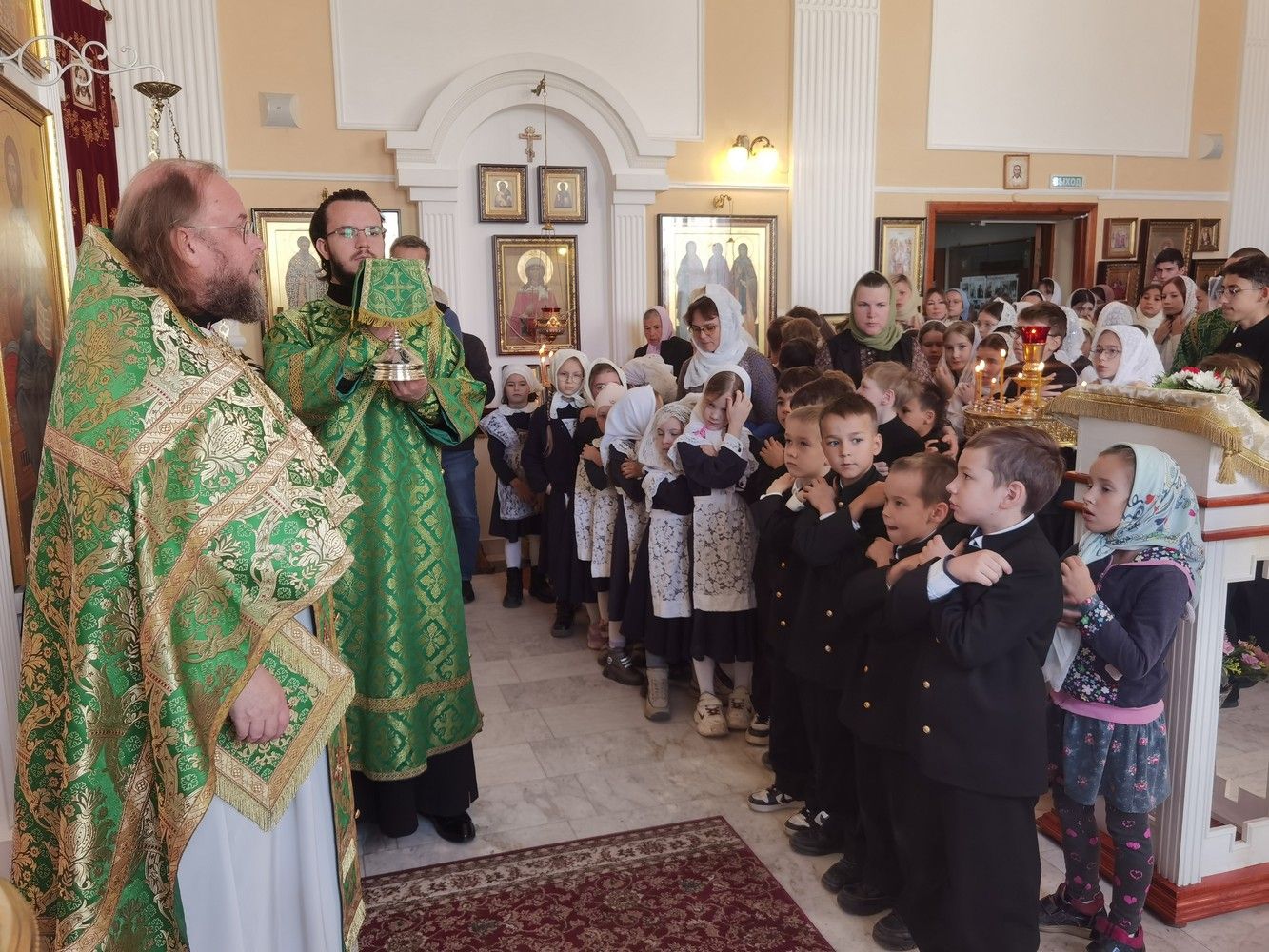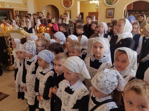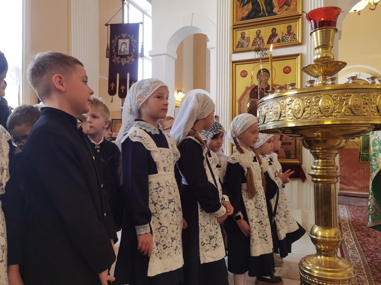 Первоклассники с волнением ждали этот день, готовились к нему. Нарядные и радостные стояли они на праздничной службе, усердно молились Господу и преподобному Сергию о помощи в учении. Практически все ребята исповедовались и причастились Святых Христовых Таин.