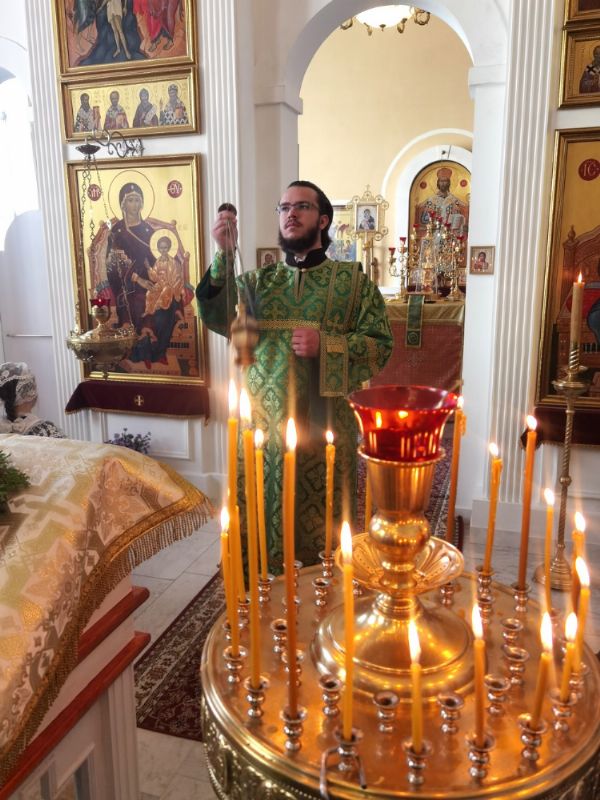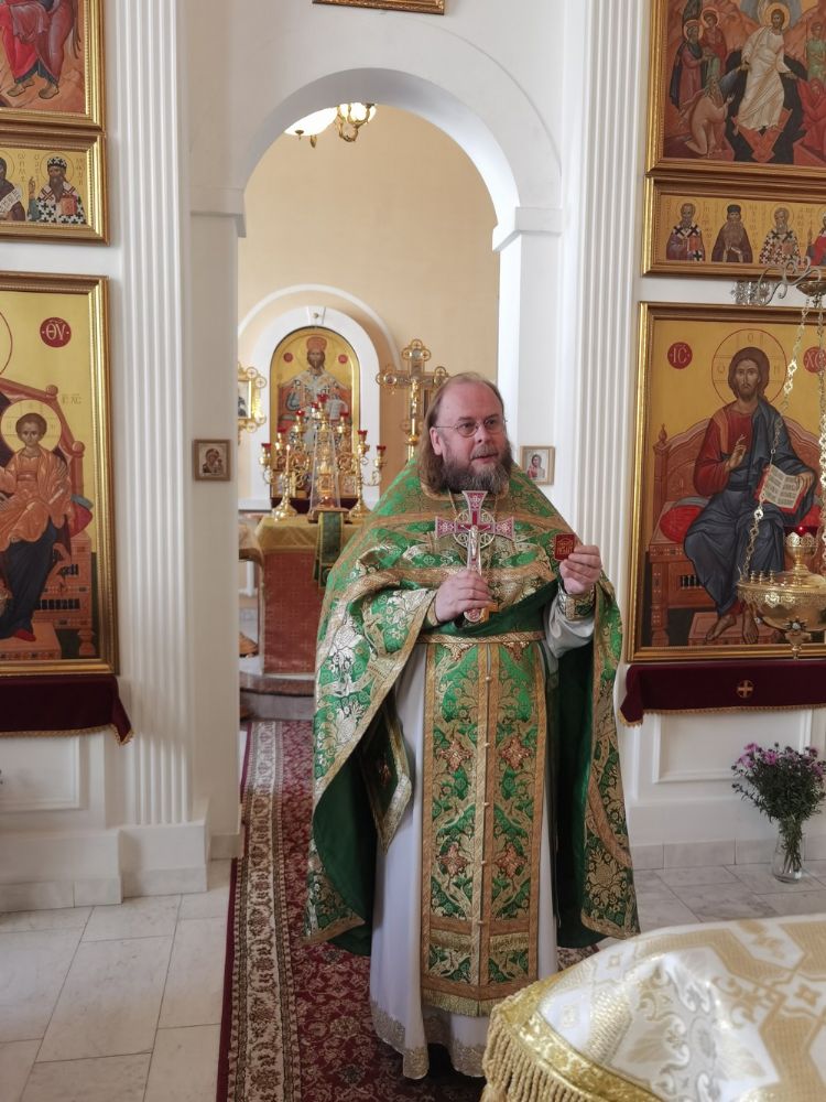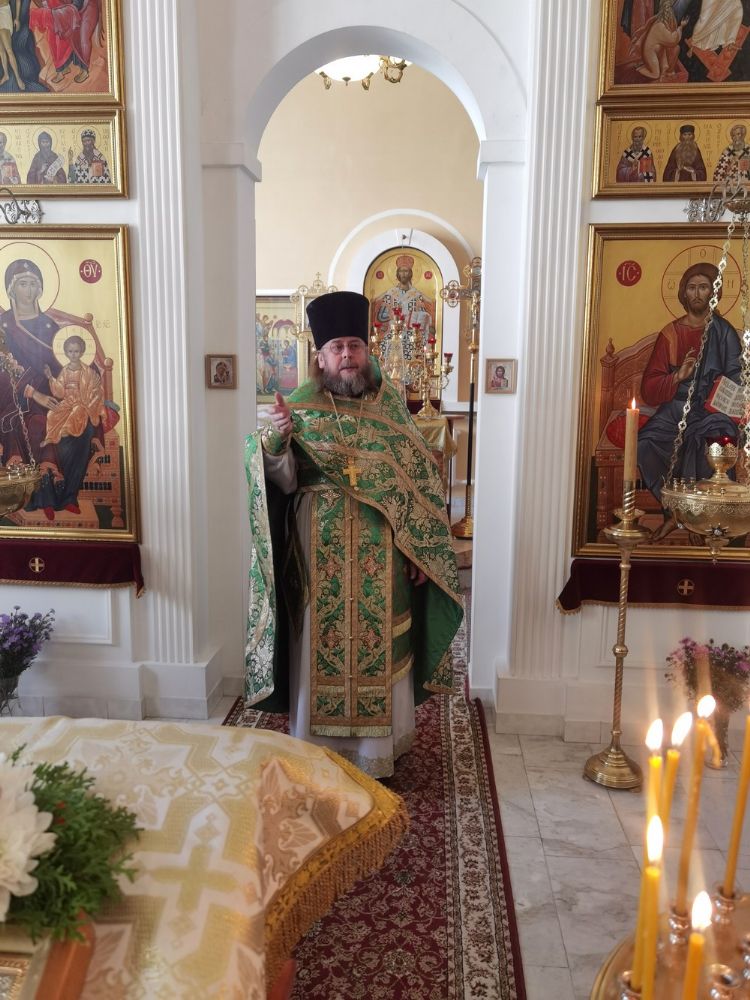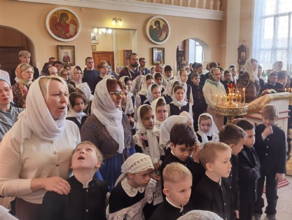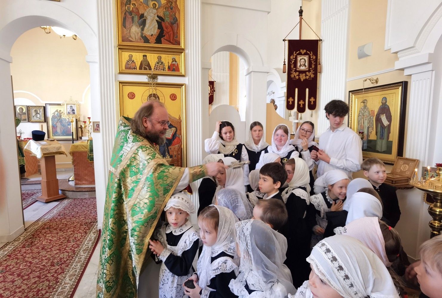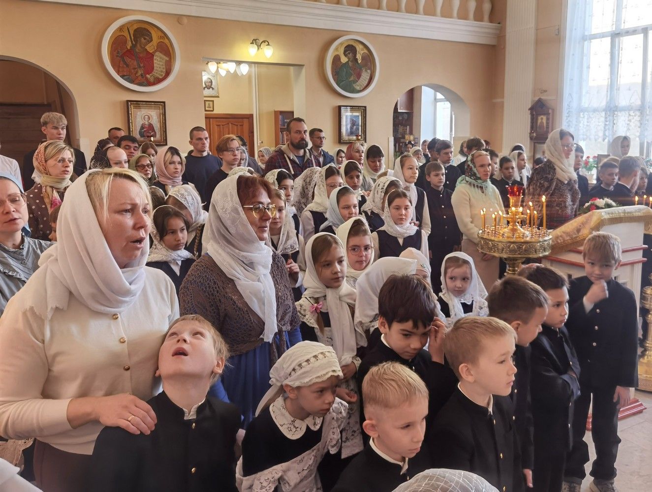 Праздничную Божественную литургию совершил настоятель храма, директор гимназии протоиерей Евгений Сурков в сослужении диакона Никиты Суркова – бывшего выпускника, а ныне преподавателя гимназии. Песнопения исполнял хор храма под управлением регента Аллы Симаковой. Исповедь принимали иерей Евгений Симаков и иерей Димитрий Копылов.
