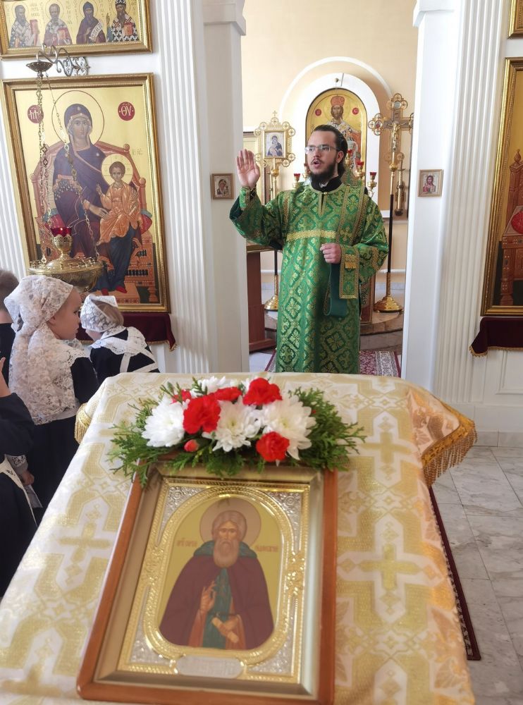 Обращаясь с пастырским словом к собравшимся, отец Евгений рассказал о житии и трудах преподобного Сергия Радонежского, о его заступничестве за Святую Русь. Батюшка пожелал ребятам быть достойными имени преподобного и не забывать почаще обращаться к нему в молитвах – и он обязательно поможет успешно постигать даже самые сложные науки.