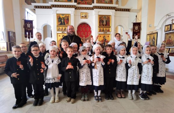 А после службы состоялась традиционная церемония посвящения первоклассников в гимназисты. Дружную гимназическую семью в нынешнем году пополнили 60 мальчиков и девочек – это юбилейный набор в гимназию, которая в нынешнем году отмечает свое 25-летие!