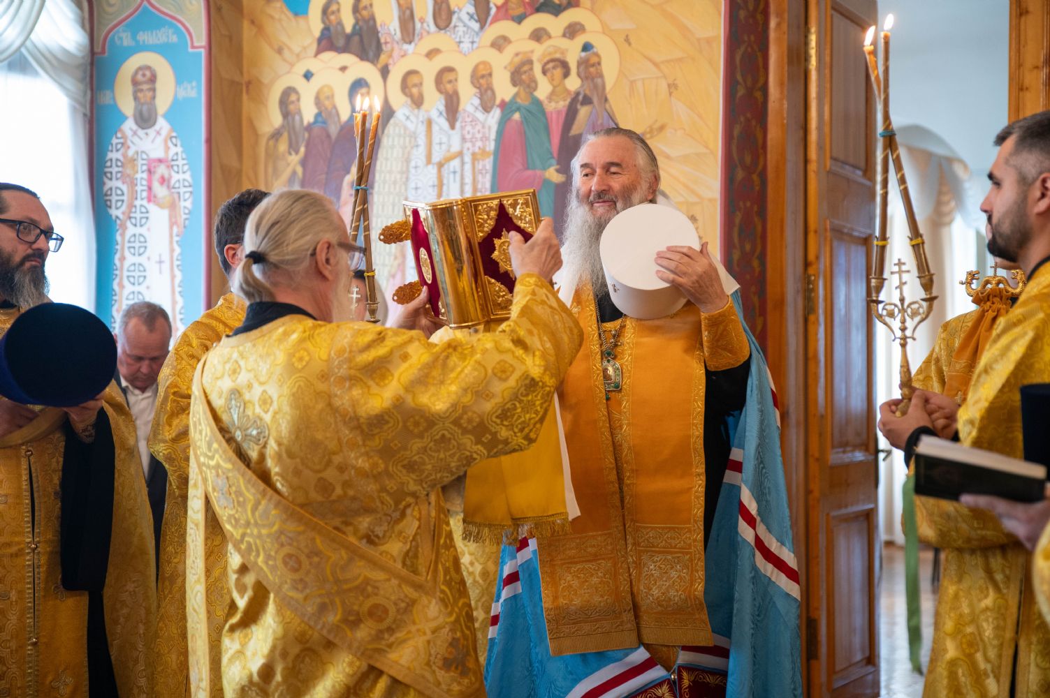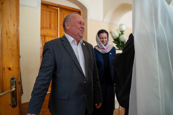 Предварилась эта торжественная церемония молебном на начало всякого доброго дела – его в домовом храме епархиального управления в честь иконы Божией Матери «Троеручица» возглавил митрополит Иоанн. Архипастырю сослужили секретарь Йошкар-Олинского епархиального управления иерей Димитрий Дьяков, руководитель епархиального отдела социального служения и церковной благотворительности иерей Алексий Михеев и протодиакон Михаил Козловский. За богослужением молились руководитель и сотрудники Отделения СФР по РМЭ.