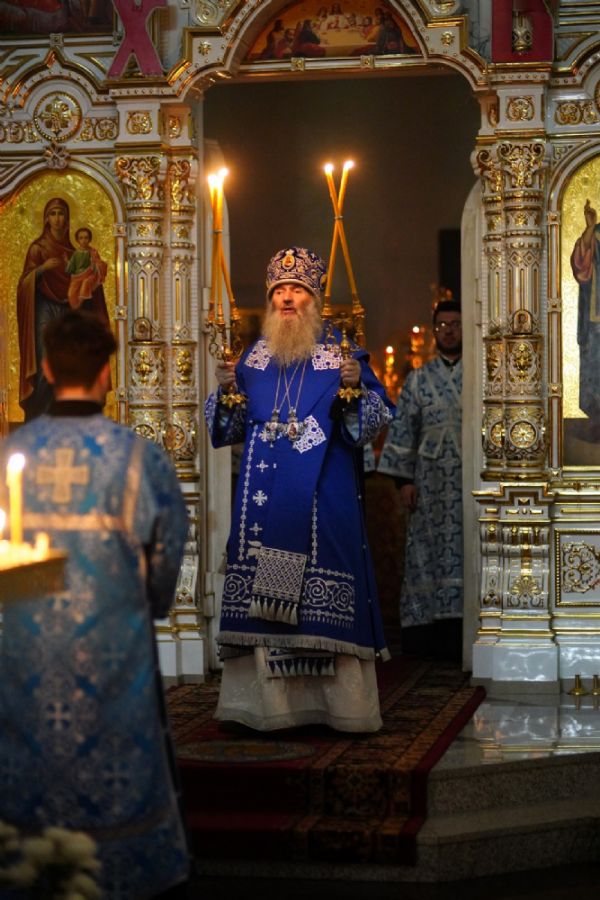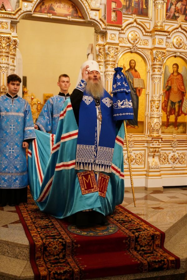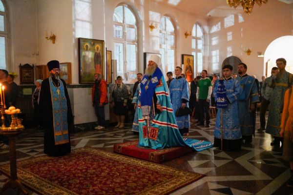 13 октября вечером, накануне праздника Покрова Пресвятой Богородицы, митрополит Йошкар-Олинский и Марийский Иоанн возглавил всенощное бдение в Воскресенском соборе г. Йошкар-Олы, нижний придел которого освящен в честь Покрова Пресвятой Богородицы.