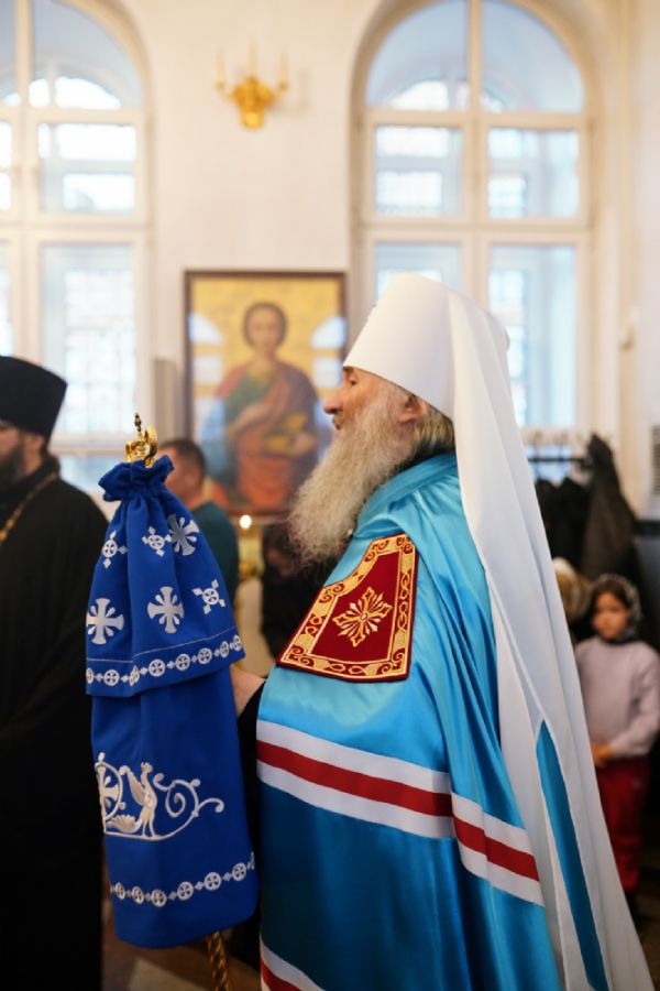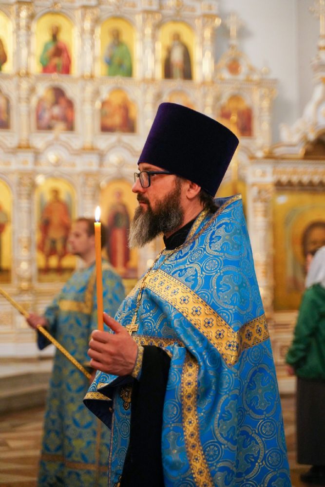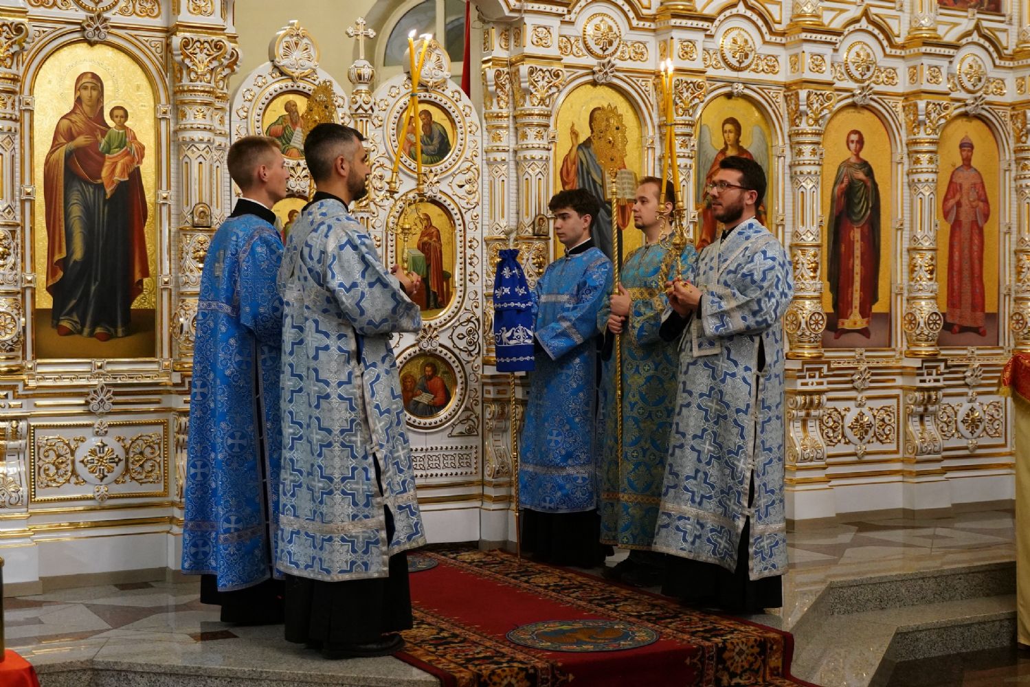 Владыке сослужили секретарь Йошкар-Олинского епархиального управления иерей Димитрий Дьяков, настоятель собора иерей Андрей Кочаков, клирик собора диакон Алексий Кузнецов, а также протодиакон Михаил Козловский. Песнопения исполнял хор собора под управлением Алисы Вылегжаниной.