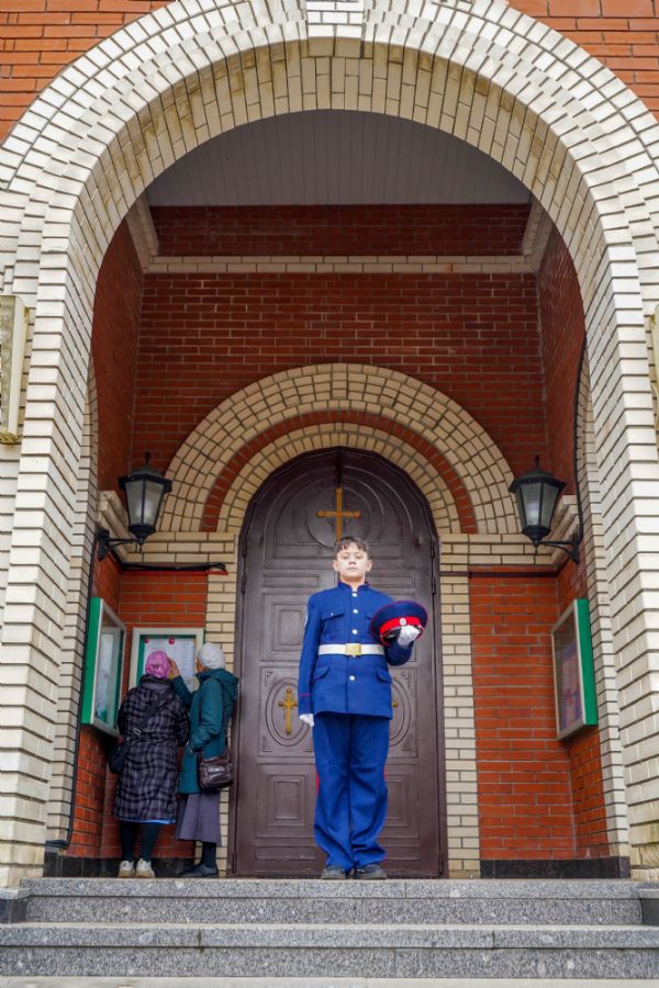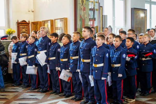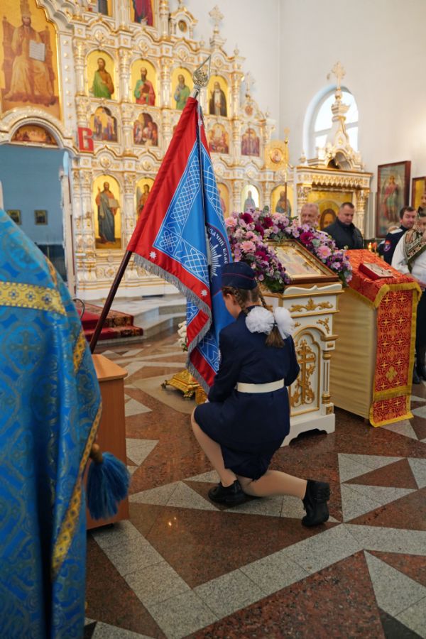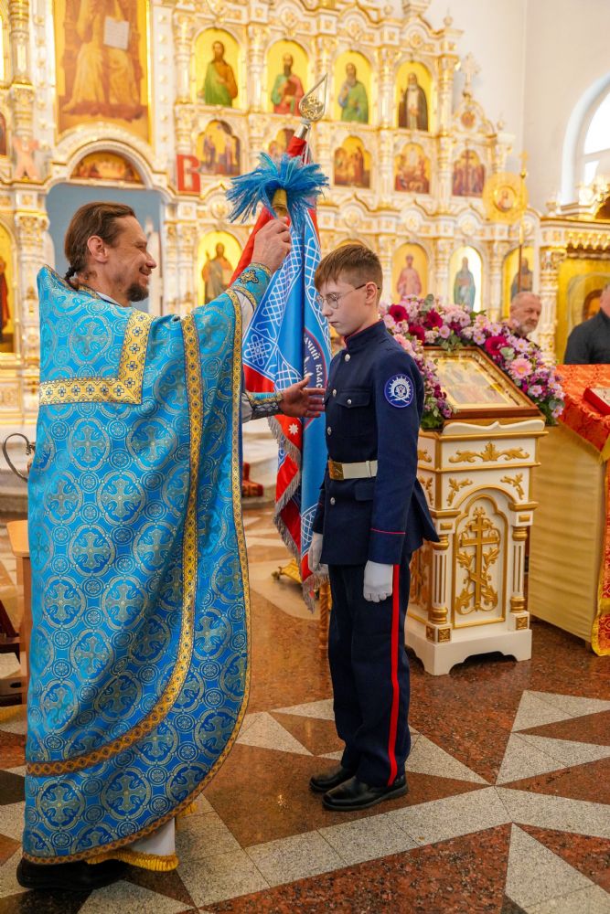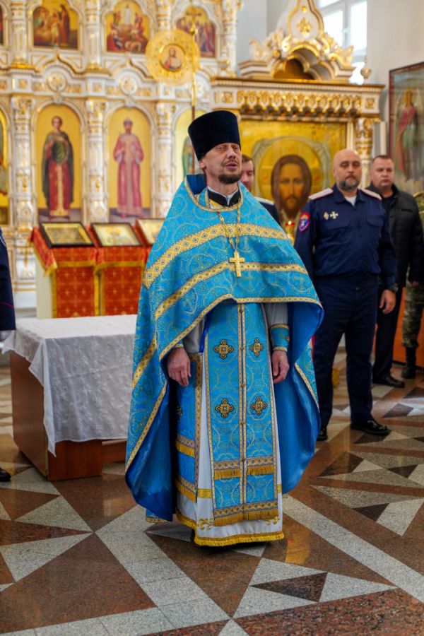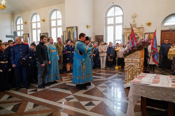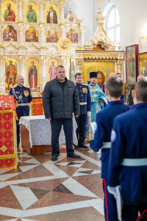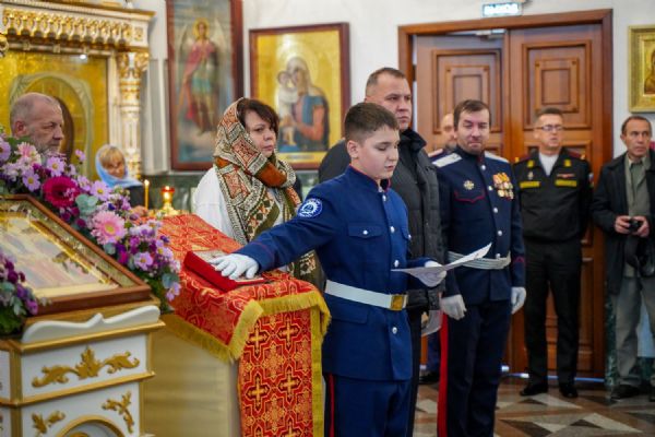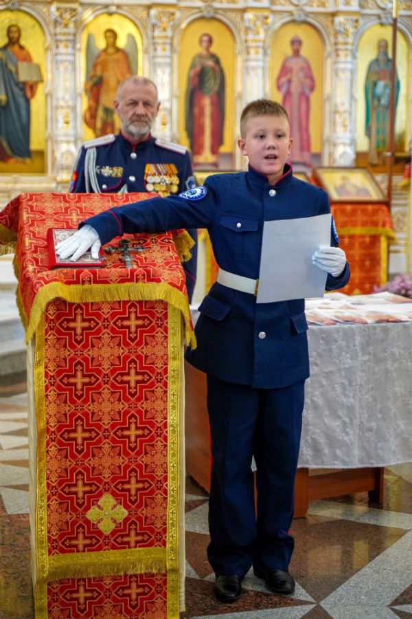 По возвращении в собор состоялась торжественная церемония приведения к присяге юных казаков-кадетов. К этому знаменательному дню ребята готовились заранее — не просто выучили слова присяги, но и изучили историю России и казачества, начали осваивать основы строевой и огневой подготовки. Возложив руку на лежащее на аналое святое Евангелие, кадеты клялись верно служить Отечеству, хранить православную веру и традиции славных предков. Настоятель собора, духовник хутора «Царевококашйский» иерей Андрей Кочаков окропил ребят святой водой и пожелал быть достойными сынами и дочерьми Святой Руси.