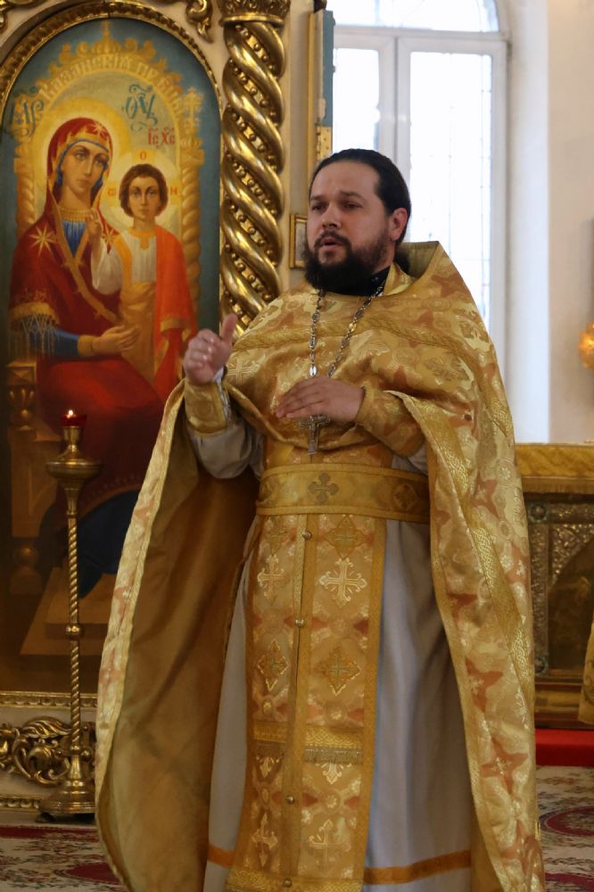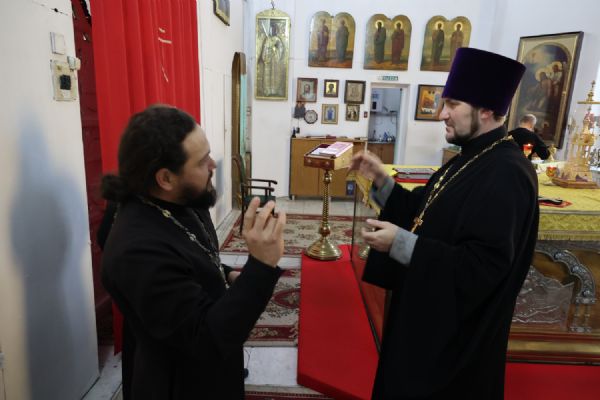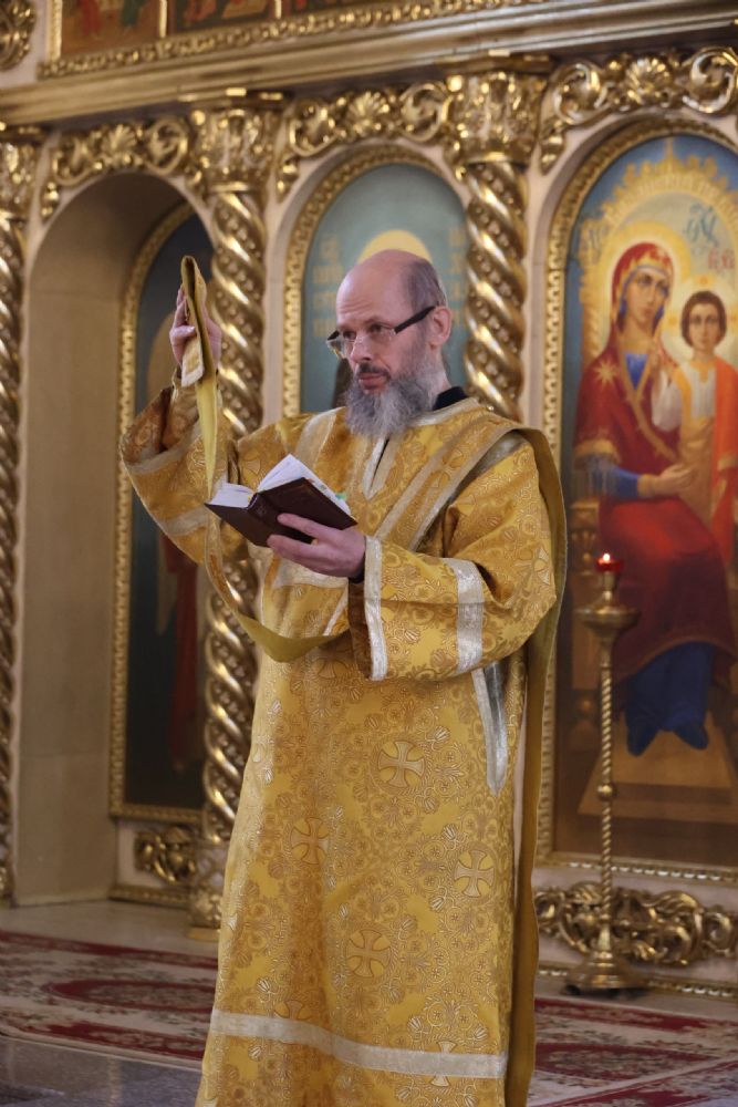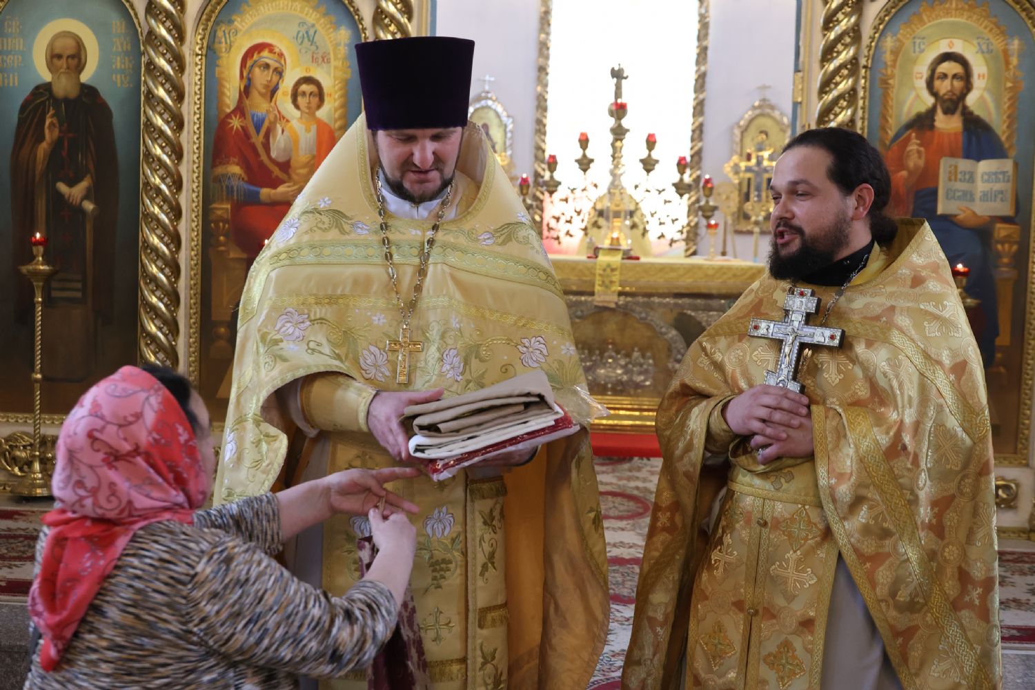Соборное богослужение совершили руководитель социального отдела Волжской епархии, настоятель храма иконы Божией Матери «Умягчение злых сердец» д. Полевая иерей Виталий Ульянов, клирики Никольского кафедрального собора иерей Александр Усков и диакон Иоанн Захаров, иеродиакон Питирим (Мосякин), а также духовник общины глухих и слабослышащих при Благовещенском кафедральном соборе г. Йошкар-Олы иерей Никифор Захаров. Песнопения исполнял архиерейский хор Никольского собора под управлением Любови Михеевой.