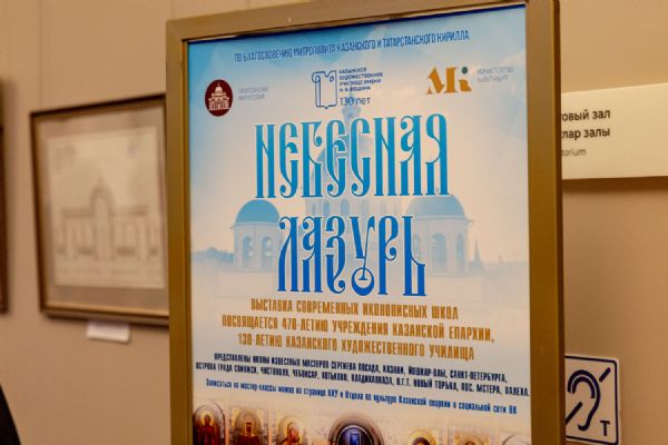 Уникальная выставка «Небесная лазурь» современных иконописных школ посвящена 470-летию учреждения Казанской епархии, 130-летию Казанского художественного училища. Она проводится по благословению митрополита Казанского и Татарского Кирилла при поддержке Министерства культуры Татарстана.