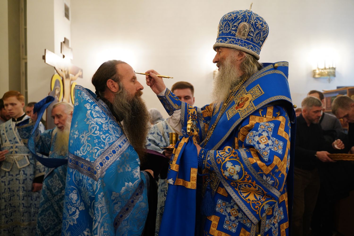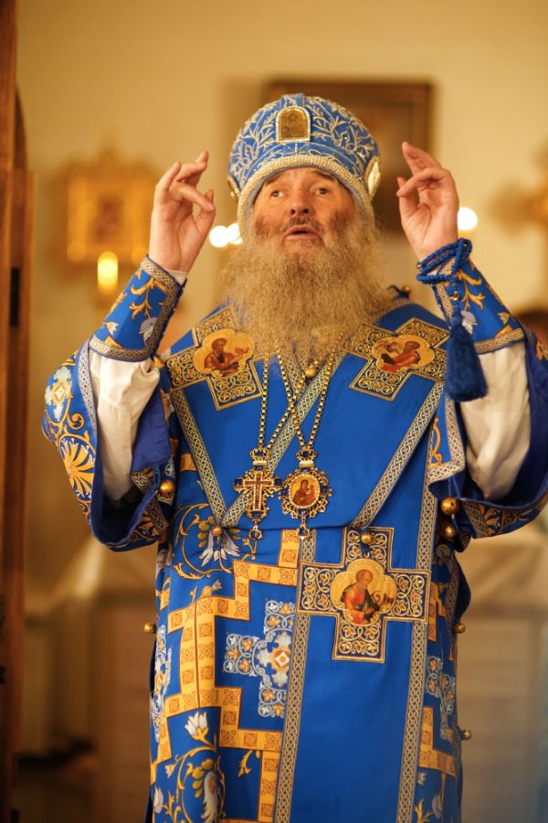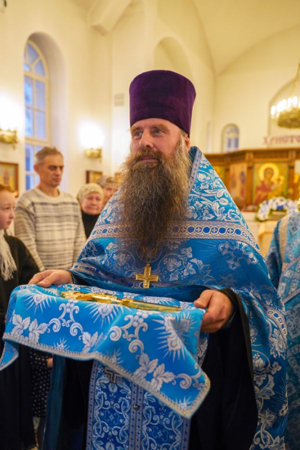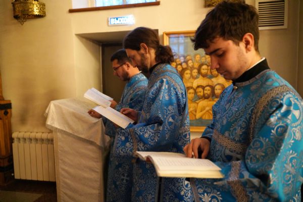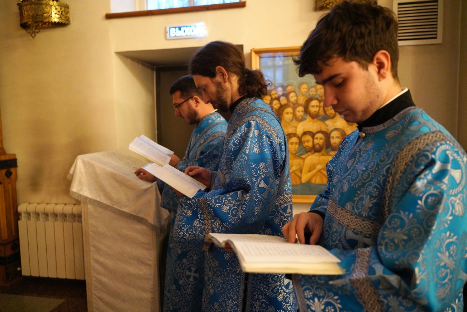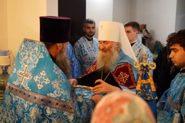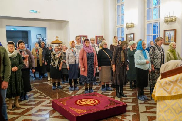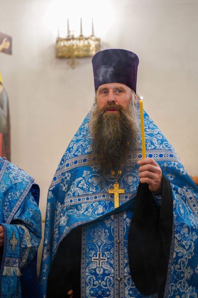 Его Высокопреосвященству сослужили настоятель храма иерей Михаил Горицкий, клирик храма иерей Евгений Хованский и протодиакон Михаил Козловский. Песнопения исполнял малы состав хора "Благовест" под управлением регента Ирины Айгловой.