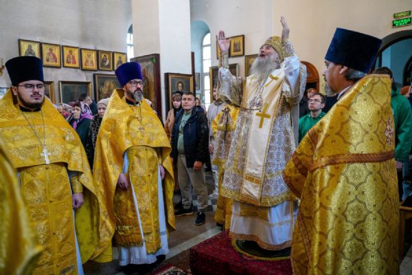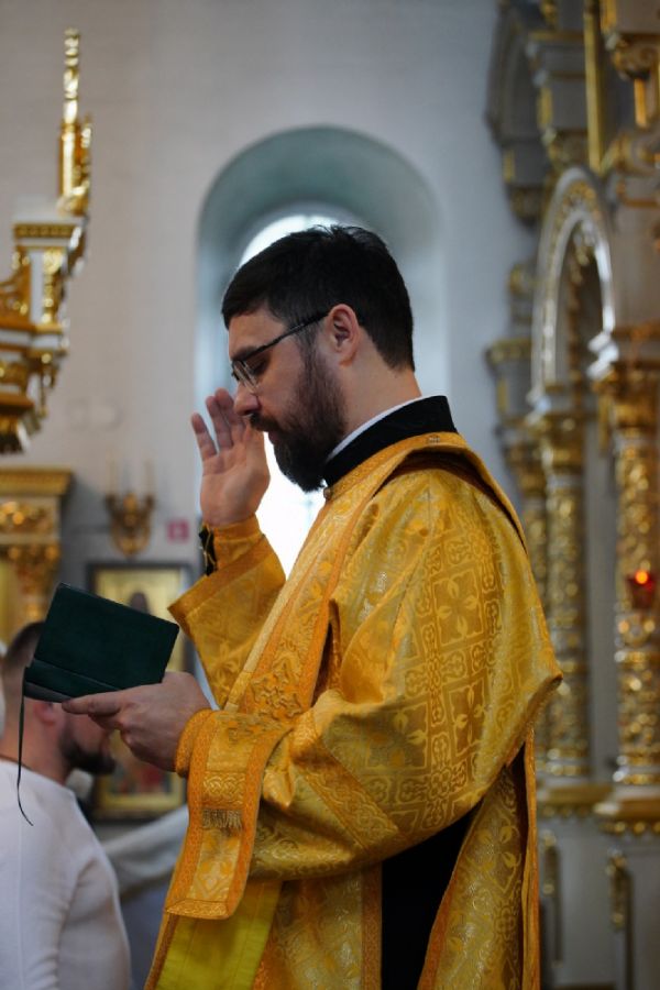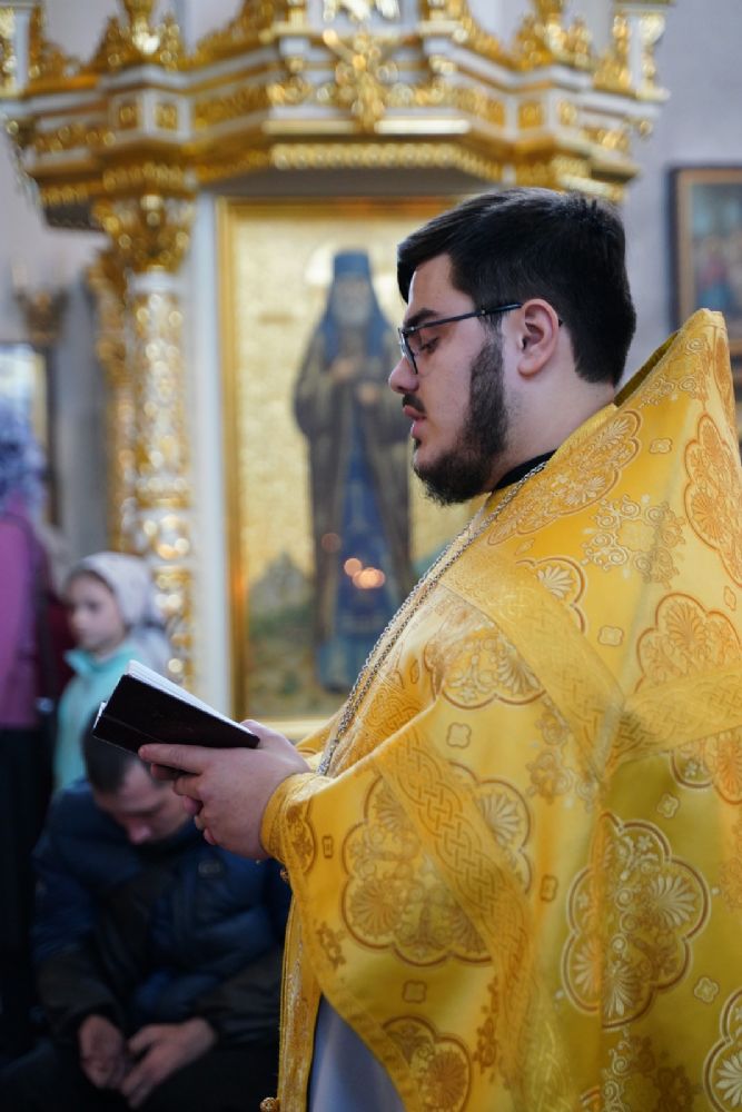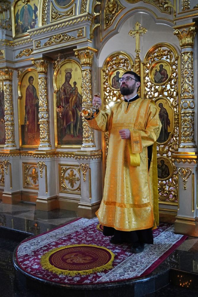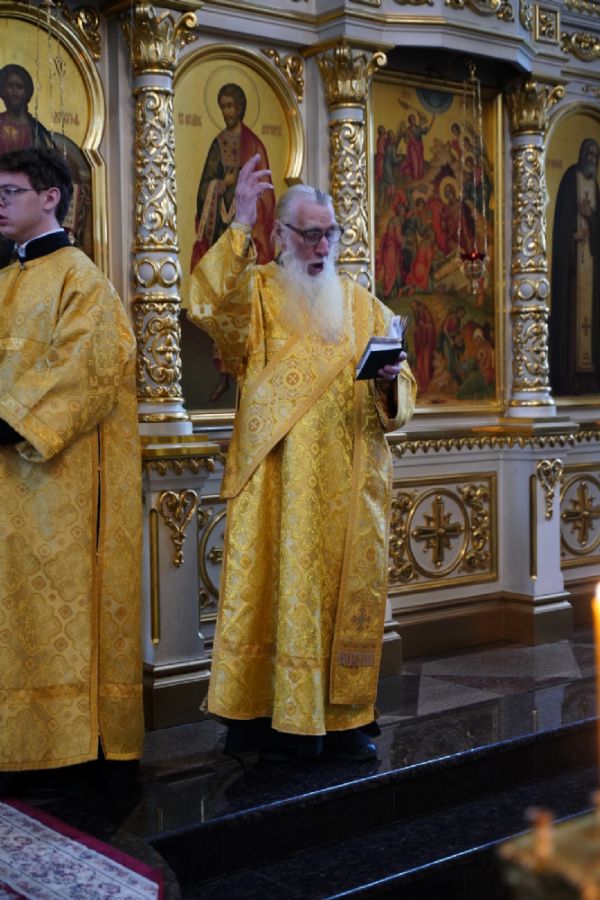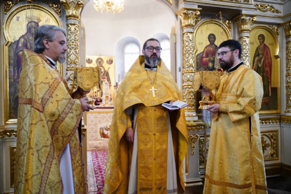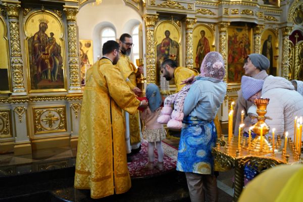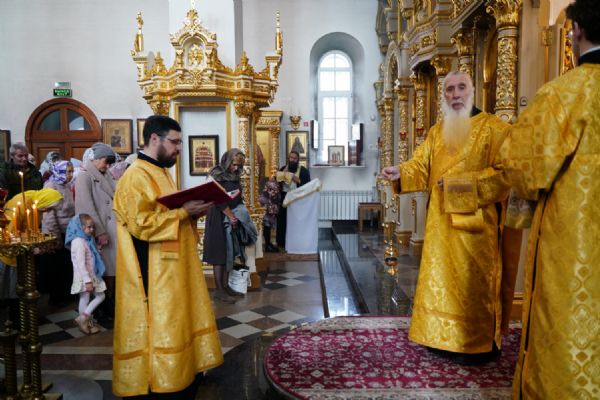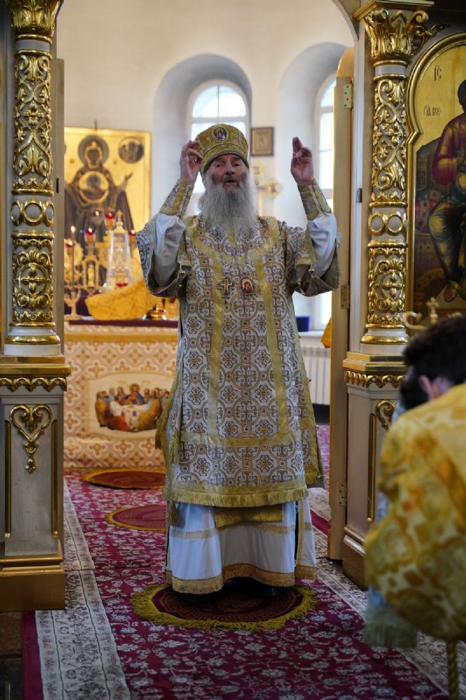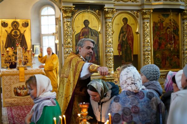 Владыке сослужили секретарь Йошкар-Олинского епархиального управления иерей Димитрий Дьяков, настоятель храма иерей Александр Лоскутов, клирик Минусинской епархии иерей Матфей Фокша, протодиакон Михаил Козловский и клирик храма Рождества Христова диакон Даниил Зорин. Песнопения исполнял хор храма под управлением регента Наталии Поповой.