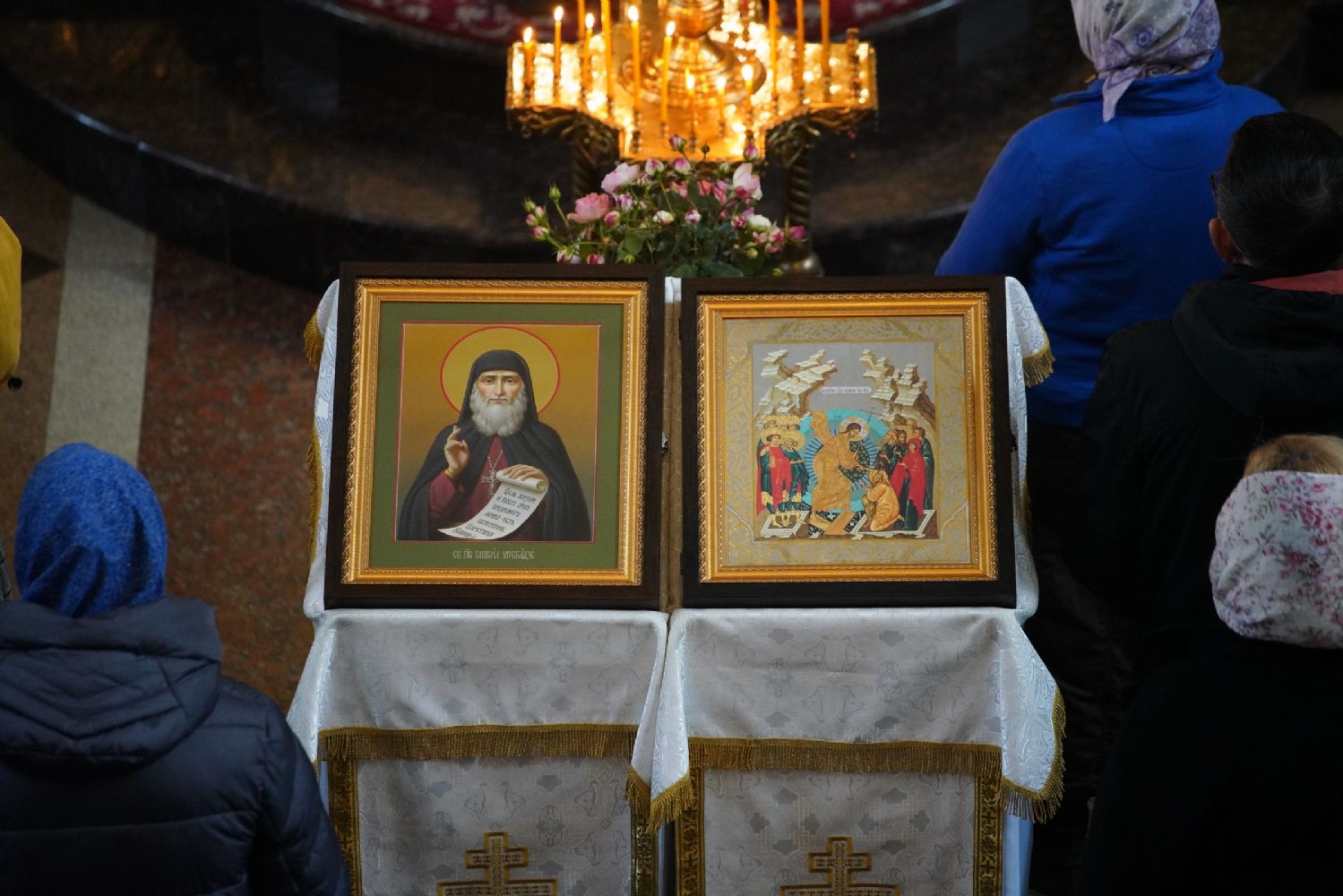 По окончании Литургии священство совершило славение преподобному Гавриилу Самтаврийскому, память которого Церковь празднует в этот день.
