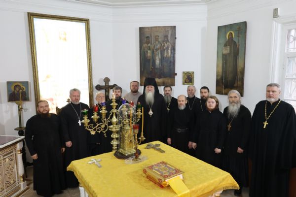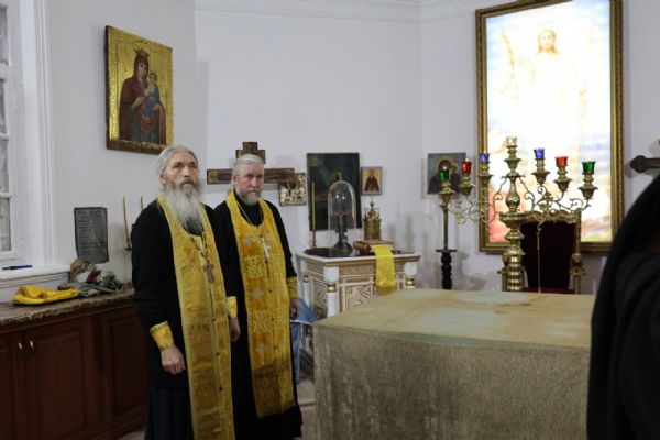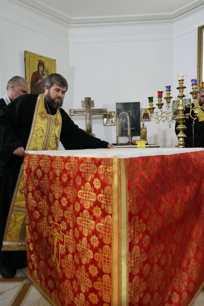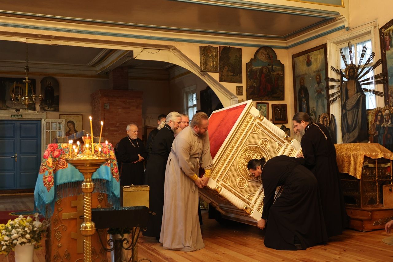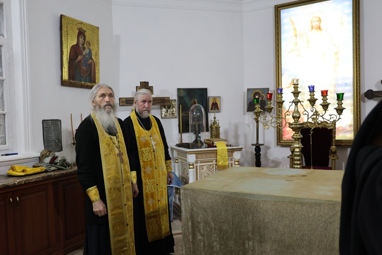5 ноября епископ Волжский и Сернурский Феофан совершил освящение новых окладов на престол и жертвенник в храме святителя Гурия, архиепископа Казанского на Архиерейском подворье в Петъялах.