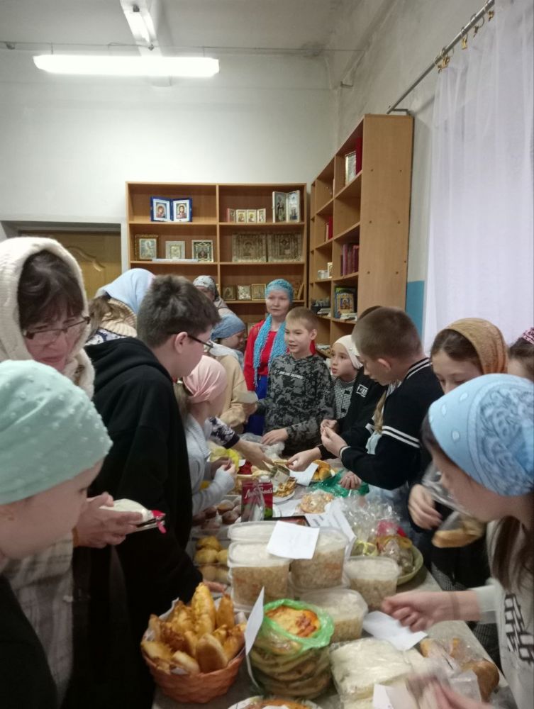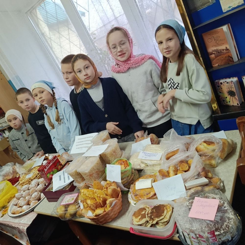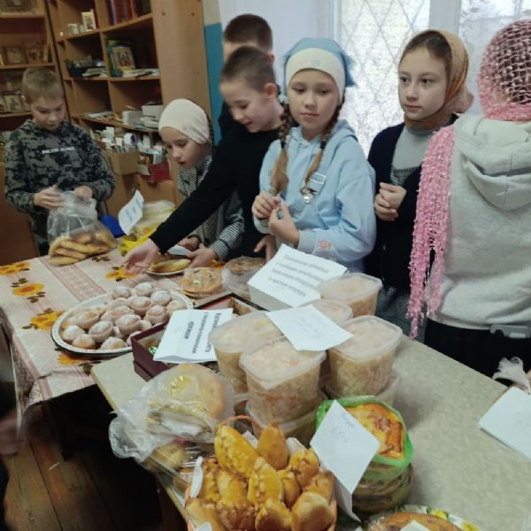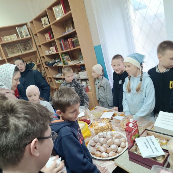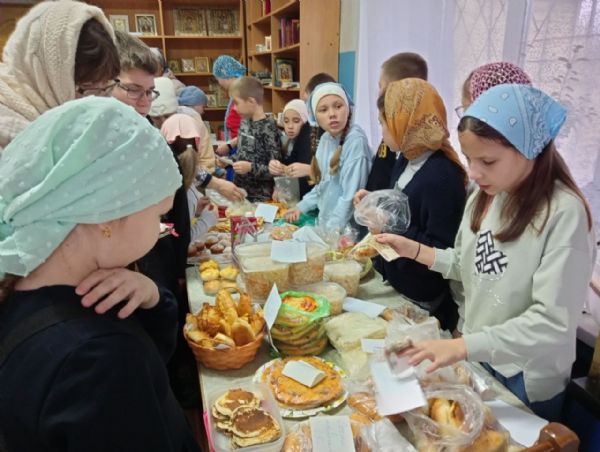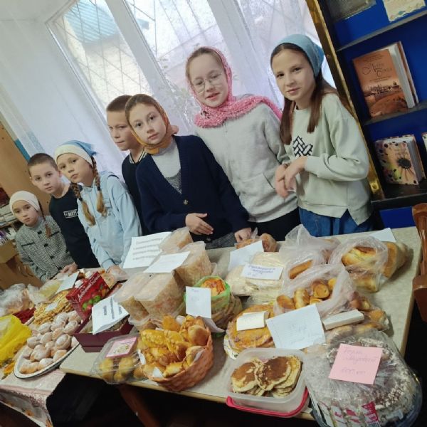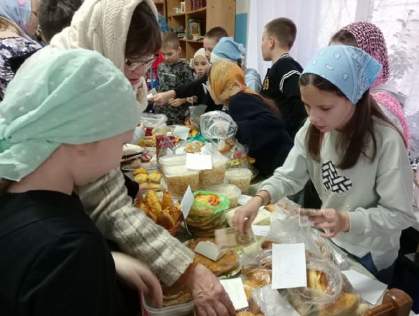 По окончании праздничной Литургии, совершил которую настоятель храма протоиерей Николай Ярошевич, воспитанники воскресной школы установили столы, куда были выложены все принесенные вкусности. Дети сами встали за прилавок, и началась бойкая торговля – прихожане с удовольствием раскупали пирожные, печенье, блины, хрустящую квашеную капустку и прочие деликатесы. Выручка составила 14 тысяч рублей и была поделена пополам – в церковную кружку на строительство в поселке нового храма и на нужды воскресной школы.
