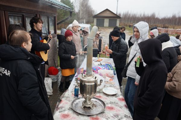 После Литургии, по доброй традиции, жарили сосиски на мангале и разжигали самовар шишками. И тепло общались друг с другом, ожидая встречи на будущий год.