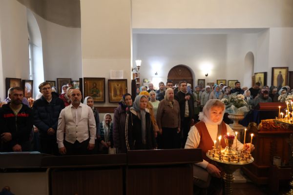 Его Преосвященству сослужили настоятель храма иконы Божией Матери «Всех скорбящих Радость» протоиерей Александр Михайлов и духовенство Волжской епархии.
