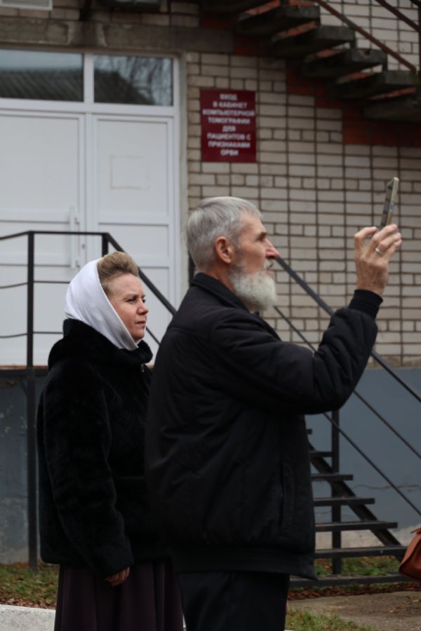 «Сегодня мы собрались в этом храме освященном в честь иконы Божией Матери «Всех скорбящих Радость». Из названия этой иконы мы видим, что для многих людей, которые с верой призывают Царицу Небесную, Она стала радостью, утешением и отрадой во многих скорбях. Празднуемый сегодня Её честной образ прославился дивным чудом в 1647 году. В Москве на Ордынке жила раба Божия Евфимия, которая приходилась родной сестрой Патриарху Иоакиму. На её теле была глубокая рана, через которую были видны внутренности. Женщина тяжко страдала, но не отчаивалась, надеясь на помощь Божию. Она стала взывать к Пречистой Богородице и услышала в ответ, что для исцеления она должна позвать из Преображенского храма священника с иконой Божией Матери, именуемой «Всех скорбящих Радость», чтобы он совершил водосвятный молебен и окропил больную. После молебна Евфимия почувствовала прибавление сил, рана вскоре затянулась, и женщина стала абсолютно здоровой.