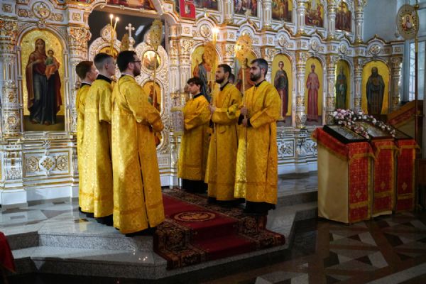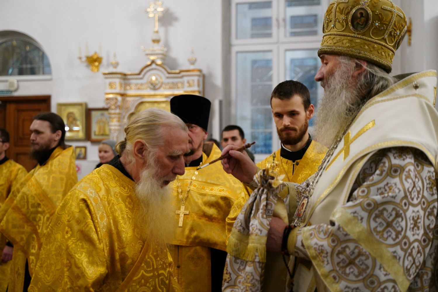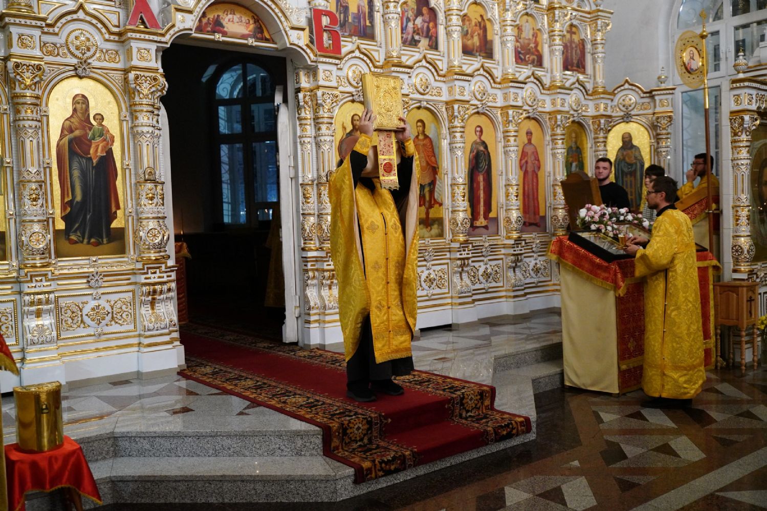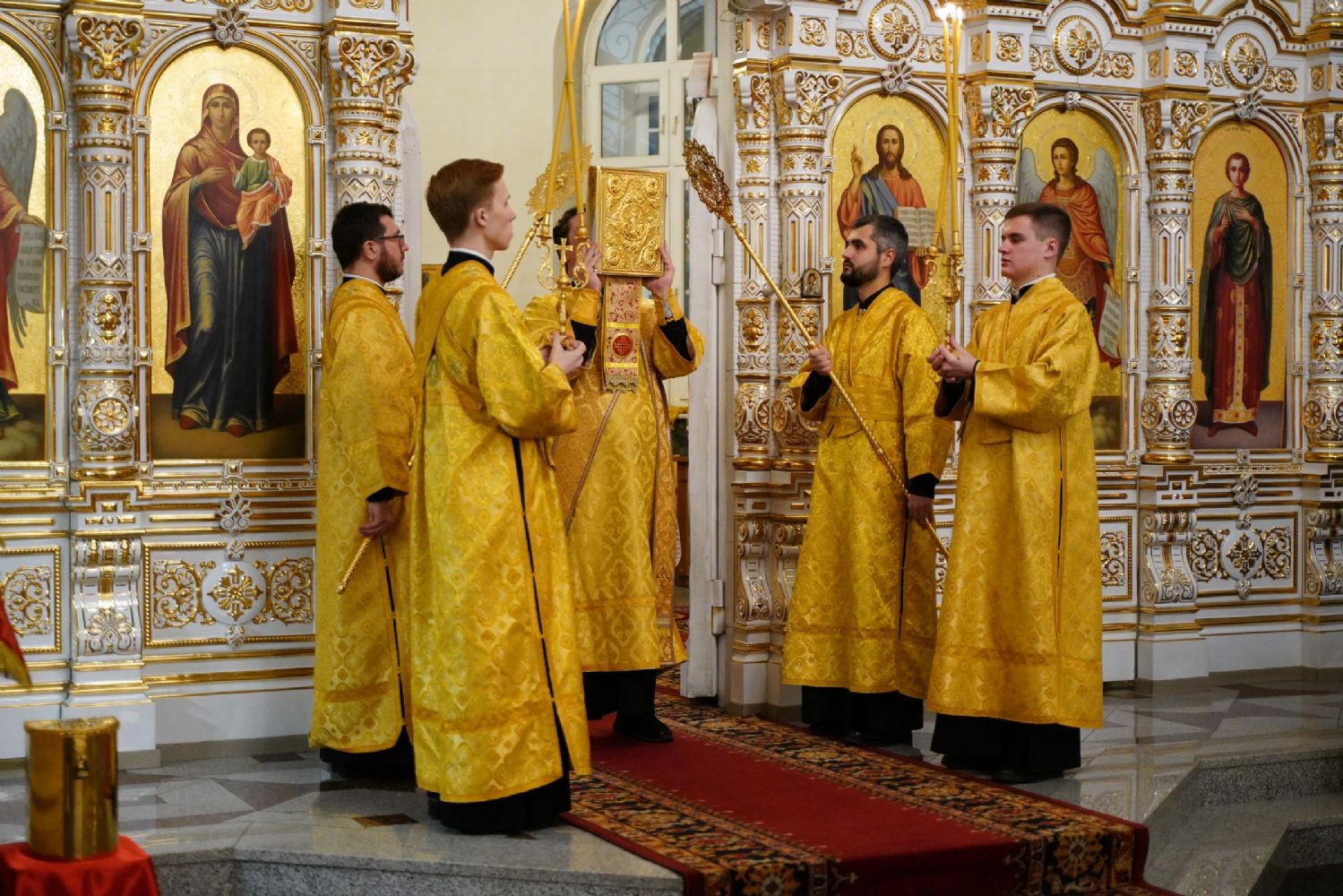 Архипастырю сослужили настоятель собора иерей Андрей Кочаков, клирики собора иерей Леонид Вылекжанин, иерей Димитрий Лукьянов и диакон Алексий Кузнецов, а также протодиакон Михаил Козловский. Песнопения исполнял хор собора под управлением Елены Поглазовой.