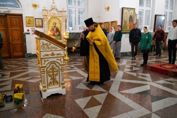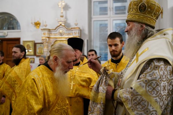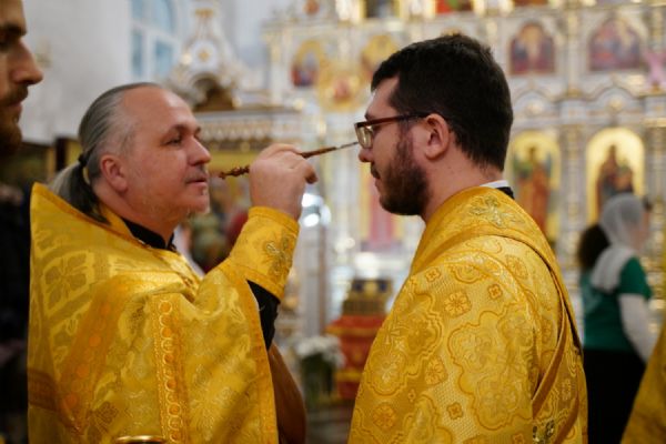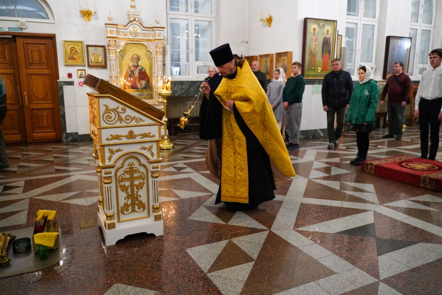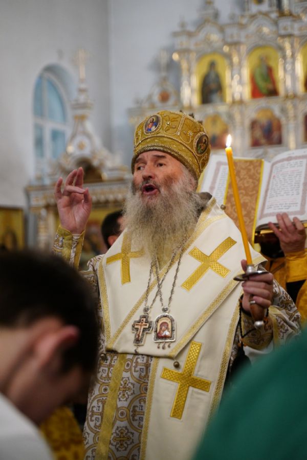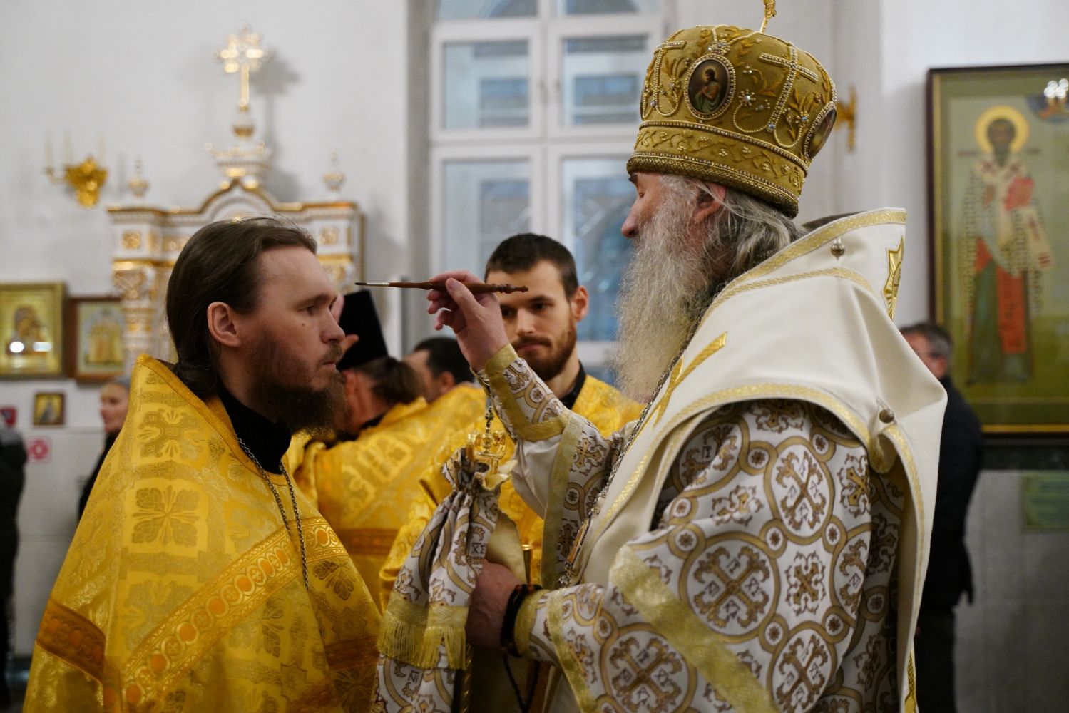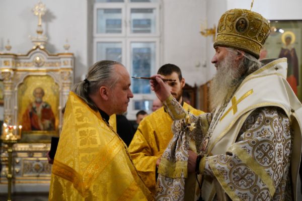 Архипастырю сослужили настоятель собора иерей Андрей Кочаков, клирики собора иерей Леонид Вылекжанин, иерей Димитрий Лукьянов и диакон Алексий Кузнецов, а также протодиакон Михаил Козловский. Песнопения исполнял хор собора под управлением Елены Поглазовой.