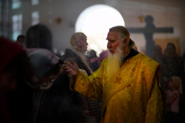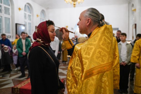 На утрене после чтения Евангелия верующие помазывалсь освященным елеем.
