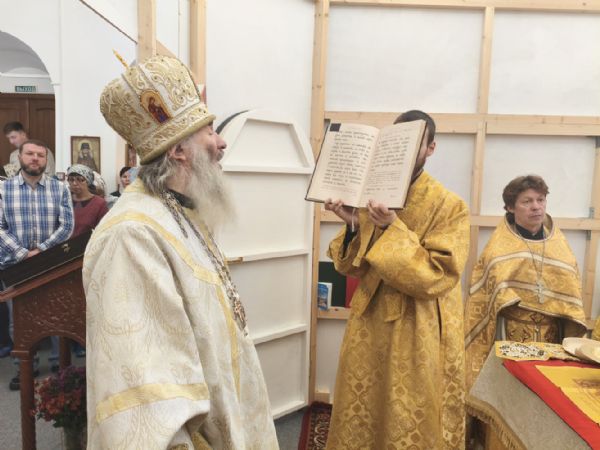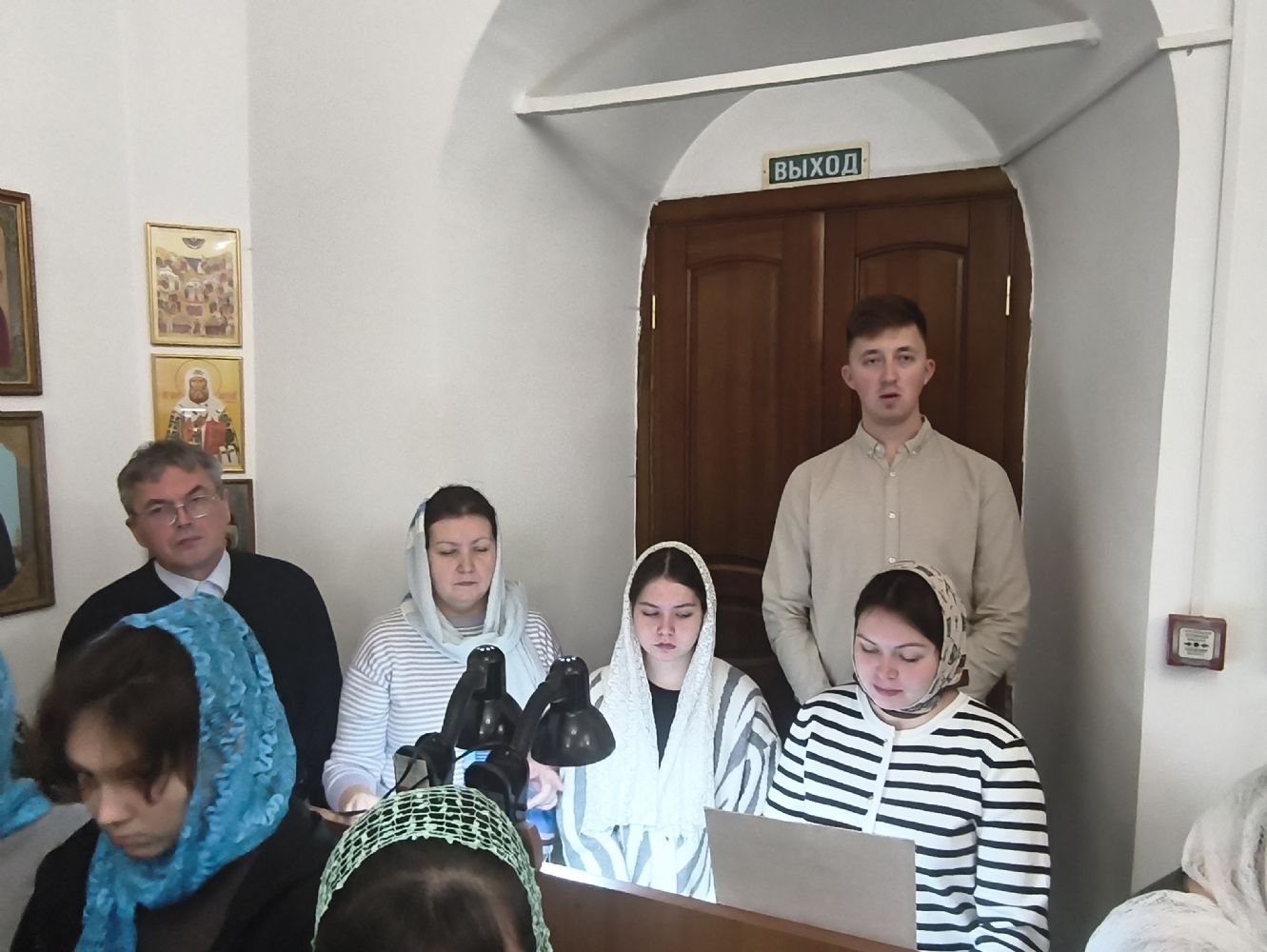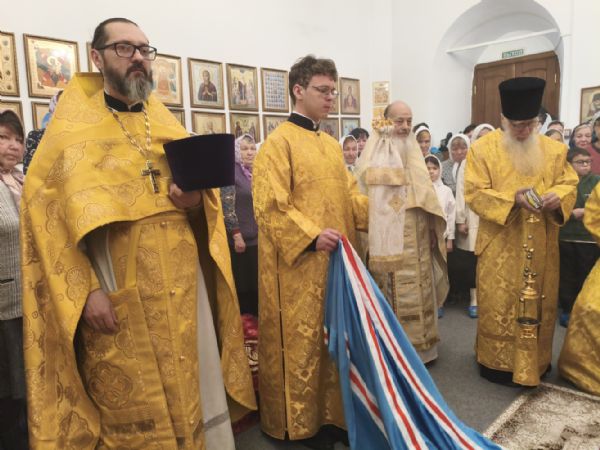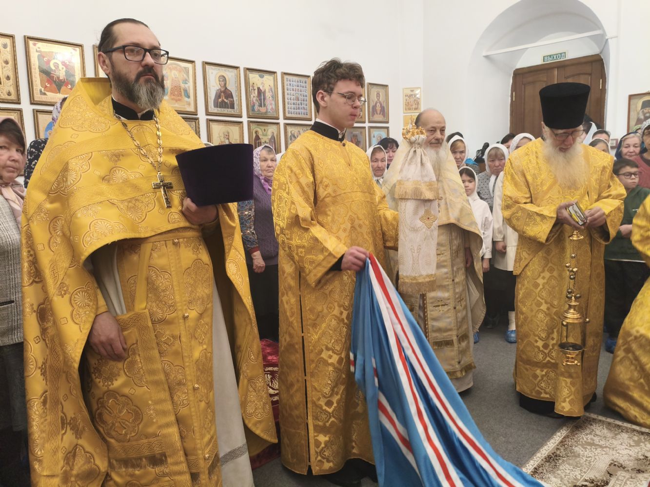 Его Высокопреосвященству сослужили секретарь Йошкар-Олинского епархиального управления иерей Димитрий Дьяков, настоятель храма иерей Олег Михайлов, настоятель Покровского храма с. Упша протоиерей Михаил Нехорошков и протодиакон Михаил Козловский. Песнопения исполнял хор Воскресенского собора г. Йошкар-Олы под управлением Елены Поглазовой.