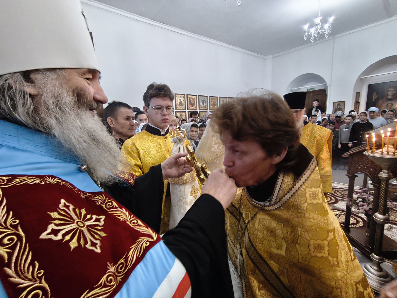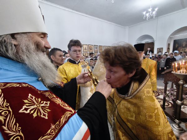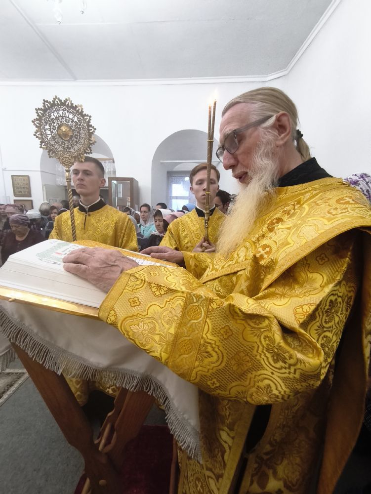 После Литургии прошел крестный ход вокруг храма, затем владыка Иоанн обратился к собравшимся с архипастырским словом, разъяснив духовный смысл прочитанного евангельского зачала об исцелении Христом гадаринского бесноватого. Выйдя из человека, бесы, по попущению Господню, вошли в пасущееся рядом свиное стадо, после чего свиньи бросились с крутого берега в озеро и утонули.