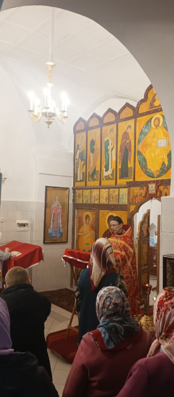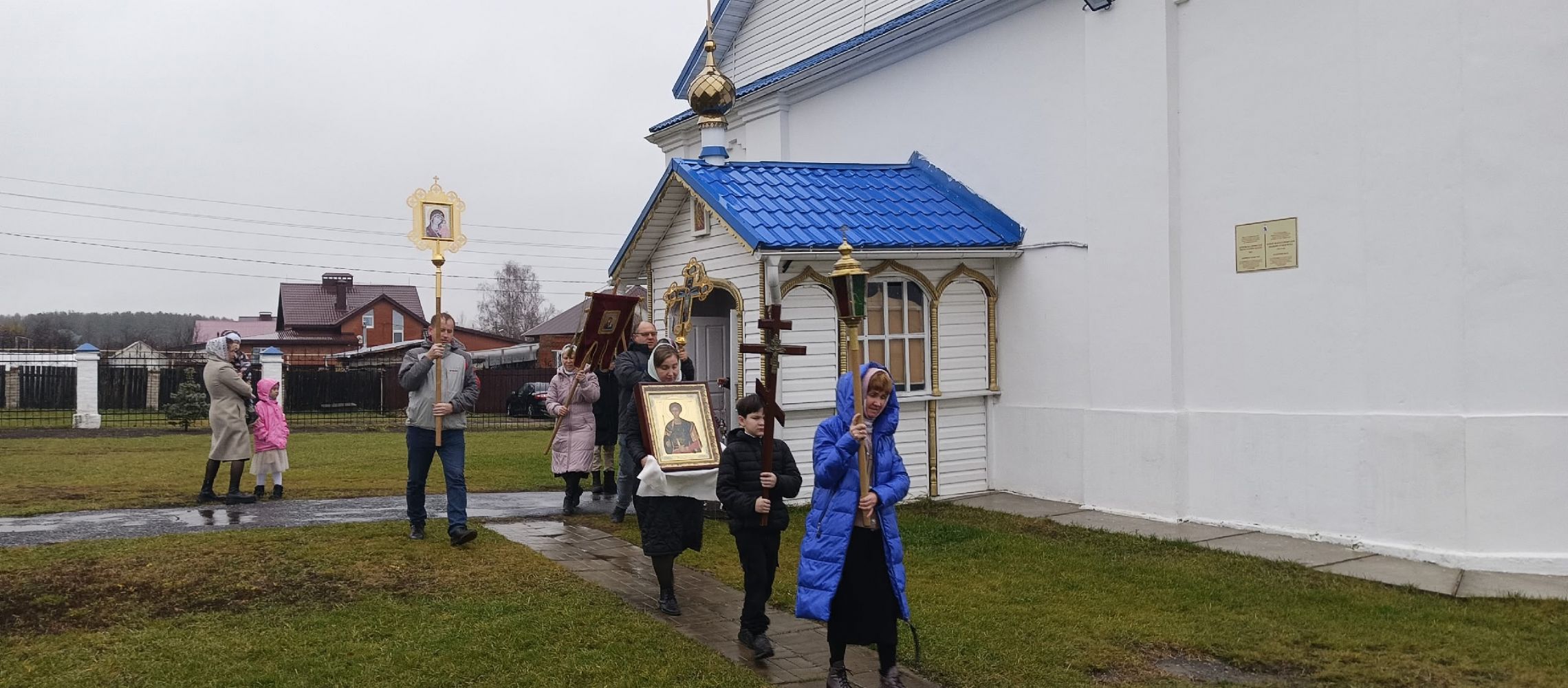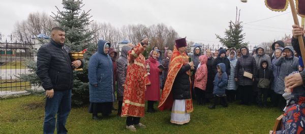 После Литургии состоялся водосвятный молебен и прошел крестный ход вокруг храма со чтением Евангелия и кроплением святой водой. По возвращении в храм было совершено славление перед иконой великомученика Димитрия Солунского, и отец Василий обратился к верующим с напутственным словом.