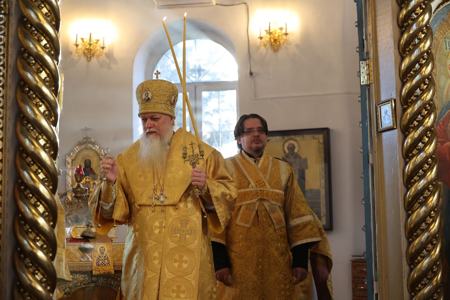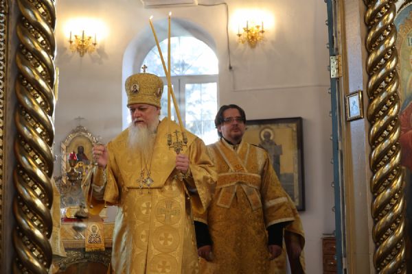Архипастырю сослужили клирики собора иерей Николай Аникин, иеромонах Александр (Чеборов), диакон Иоанн Захаров, диакон Александр Викторов и иеродиакон Питирим (Мосякин). Песнопения исполнял народный хор под управлением Евгения Чигарова.