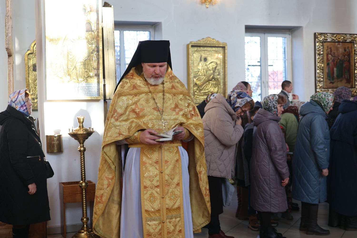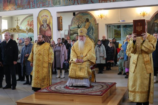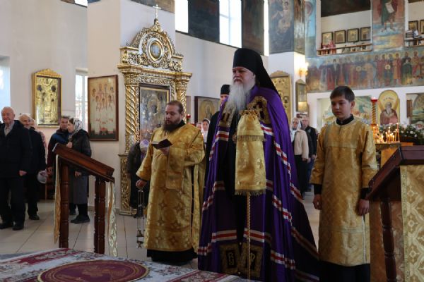 В завершение епископ Феофан обратился к верующим с архипастырским словом, напомнив, что 16 ноября Церковь воспоминает Обновление храма в честь святого великомученика и победоносца Георгия в городе Лидде на Святой Земле. Владыка рассказал о житии великомученика Георгия, его твердой вере в Господа.