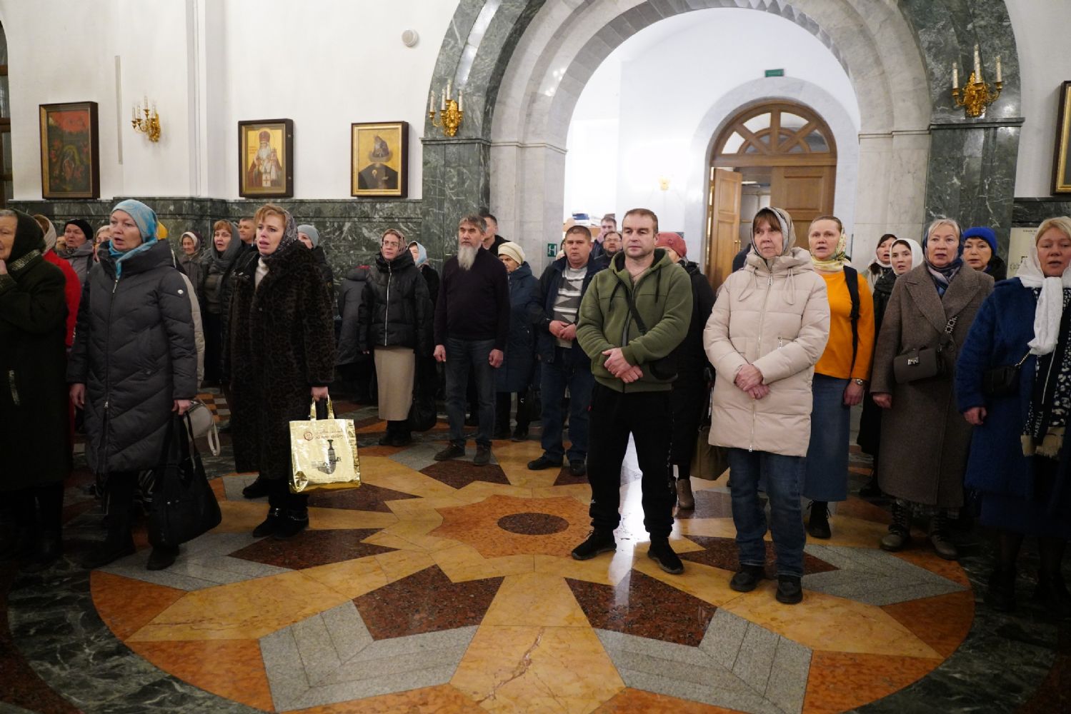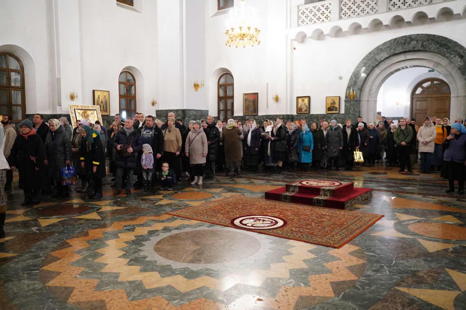 Во время литии, на которой освящались хлебы, пшеница, вино и елей, священство и прихожане во главе с митрополитом Иоанном вышли из собора встречать ковчег со святынями, прибывший спецрейсом в Йошкар-Олу. Ковчег был установлен в центре храма для поклонения верующим, после чего всенощное бдение продолжилось своим чередом.