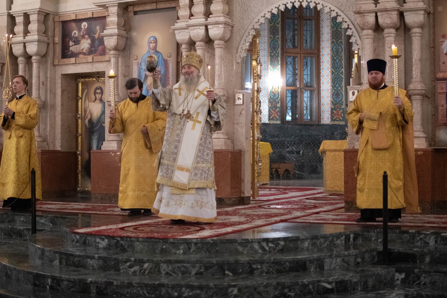 Владыке сослужили ключарь собора протоиерей Сергий Поглазов, клирики собора клирики собора иереи Никифор Захаров, Евгений Самойлов, Александр Староверов, Иоанн Милютин, диаконы Андрей Дружинин и Артемий Бобоч. Песнопения исполняли старший и младший составы архиерейского детско-юношеского хора «Благовест» под управлением регентов Татьяны Черновой и Надежды Поздеевой.