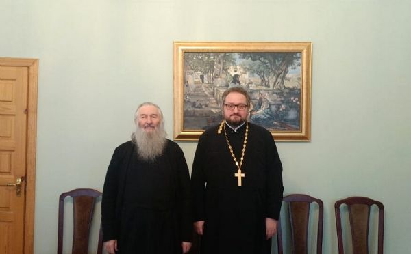 С утра отец Владислав в Йошкар-Олинском епархиальном управлении встретился с правящим архиереем. Гостя сопровождал секретарь епархиального управления иерей Димитрий Дьяков. Отец Владислав осмотрел домовый храм в честь иконы Божией Матери «Троеручица». Далее в приемной митрополита Иоанна состоялось общение в неформальной обстановке. На память отцу Владиславу владыка подарил книги духовного содержания, изданные в Йошкар-Олинской епархии.